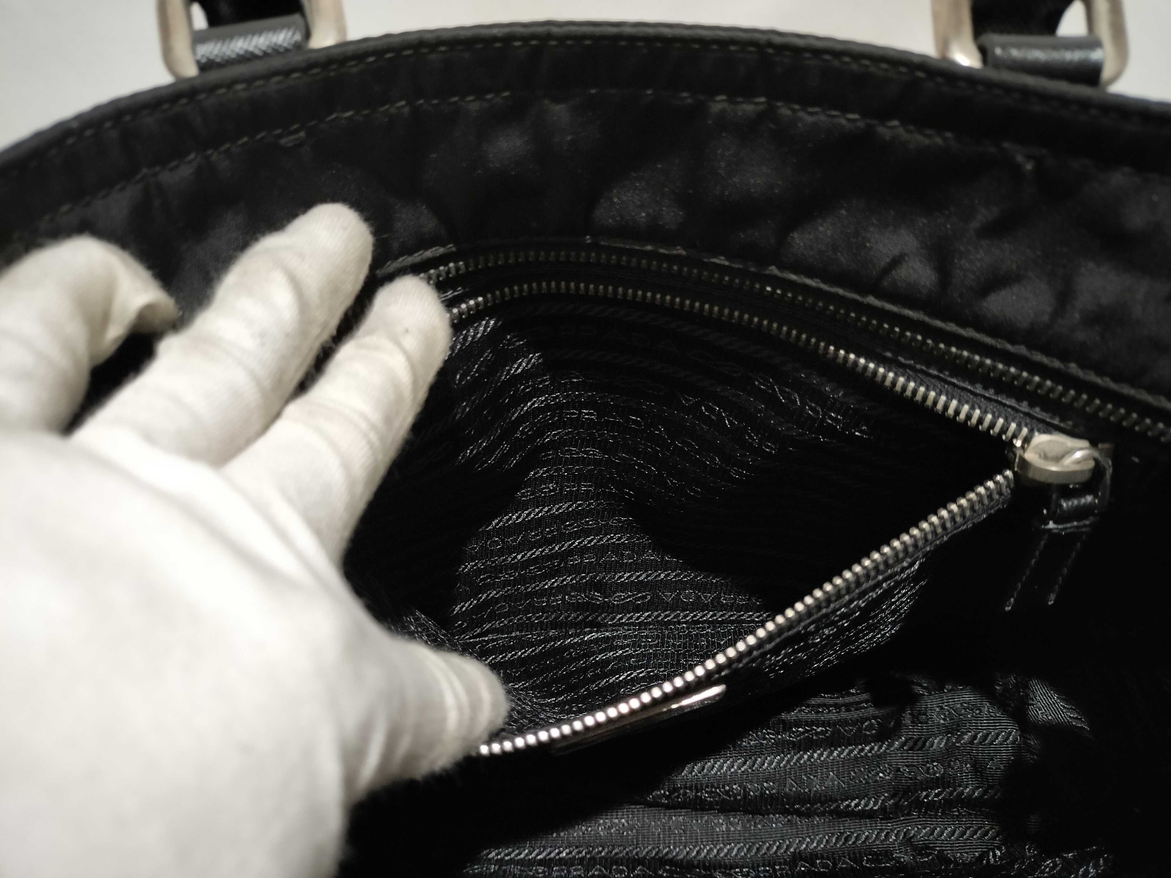 (11945_0367)PRADA ナイロン 三角ロゴ レザー ハンドバッグ ハンドバッグ