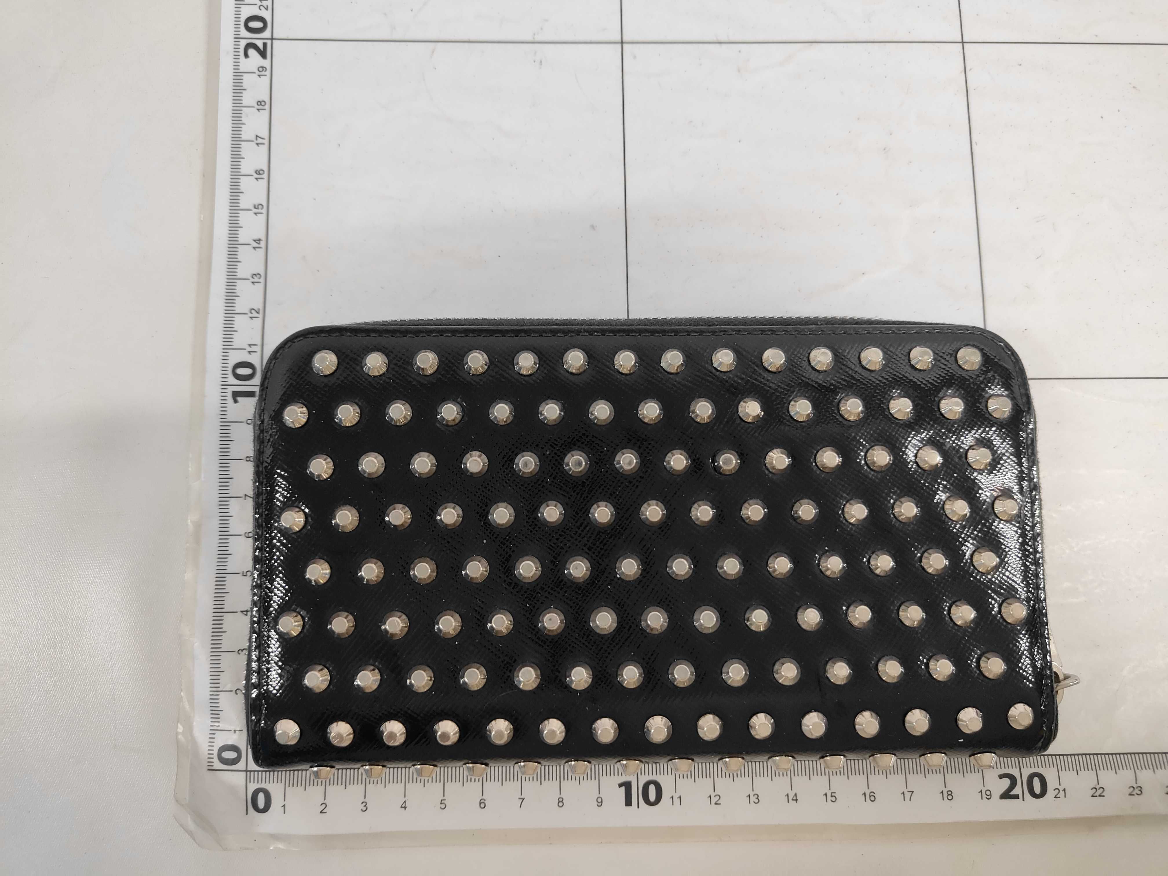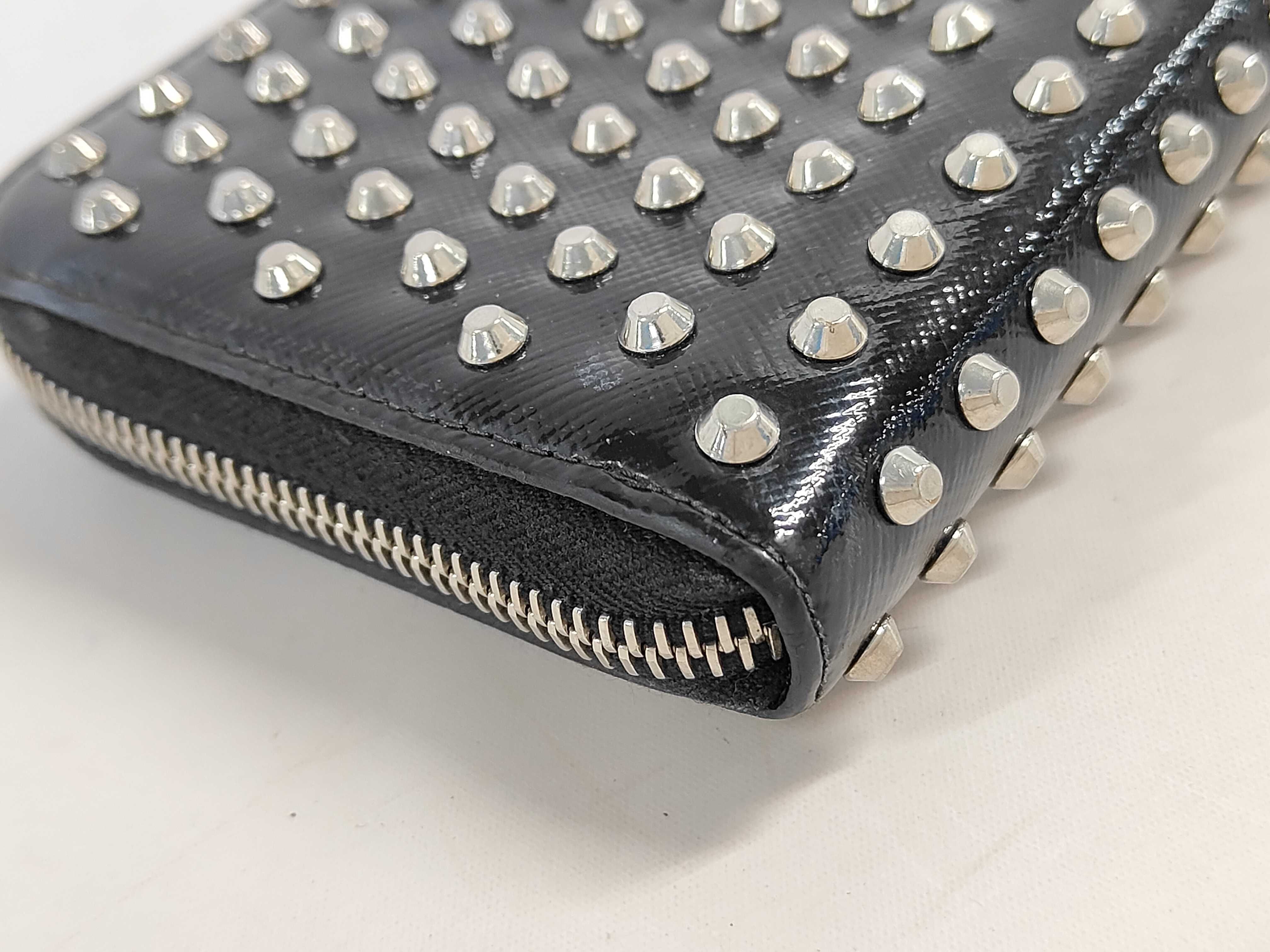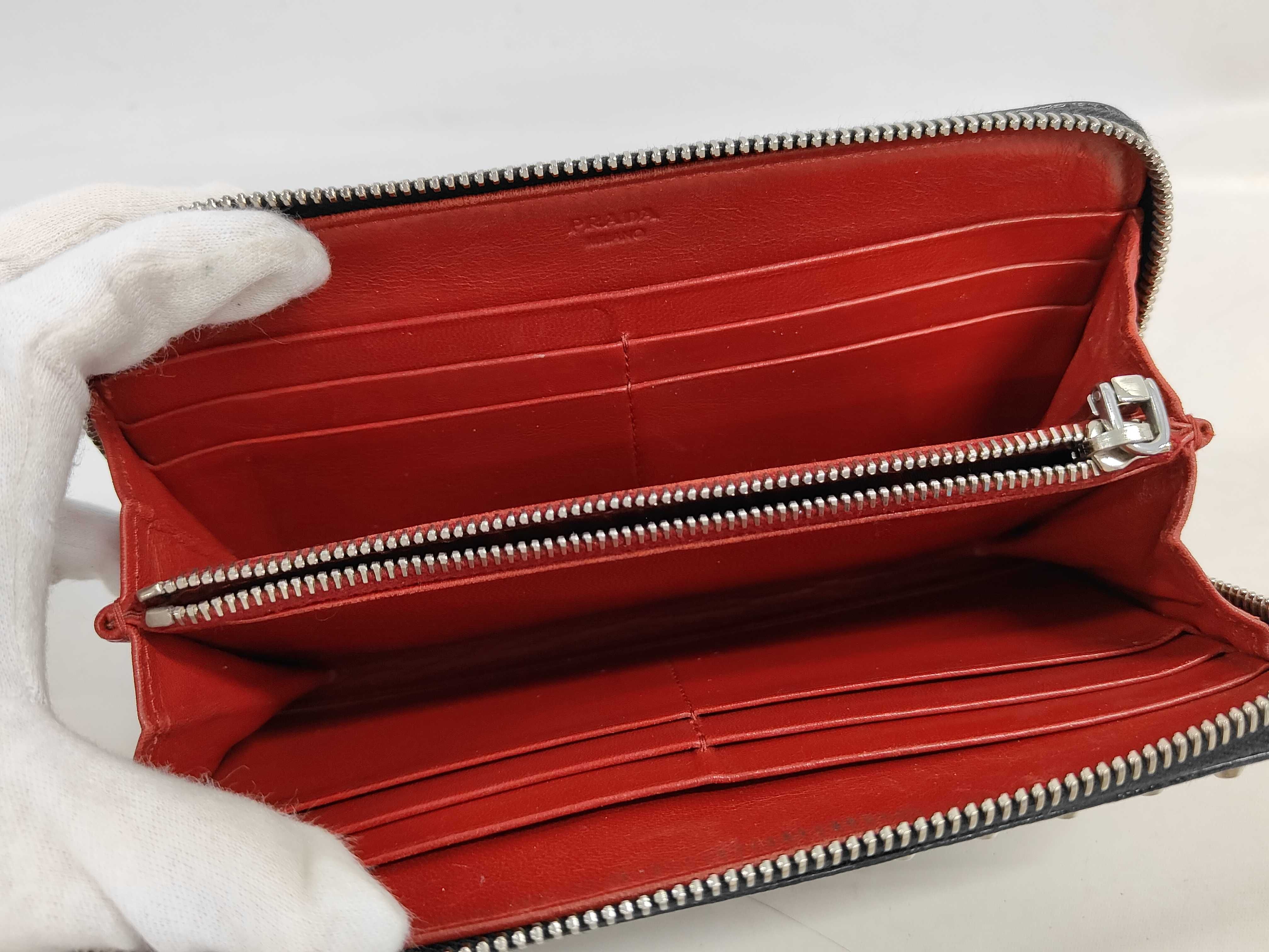 (11945_0461)PRADA サフィアーノ スタッズ ラウンドファスナー 財布
