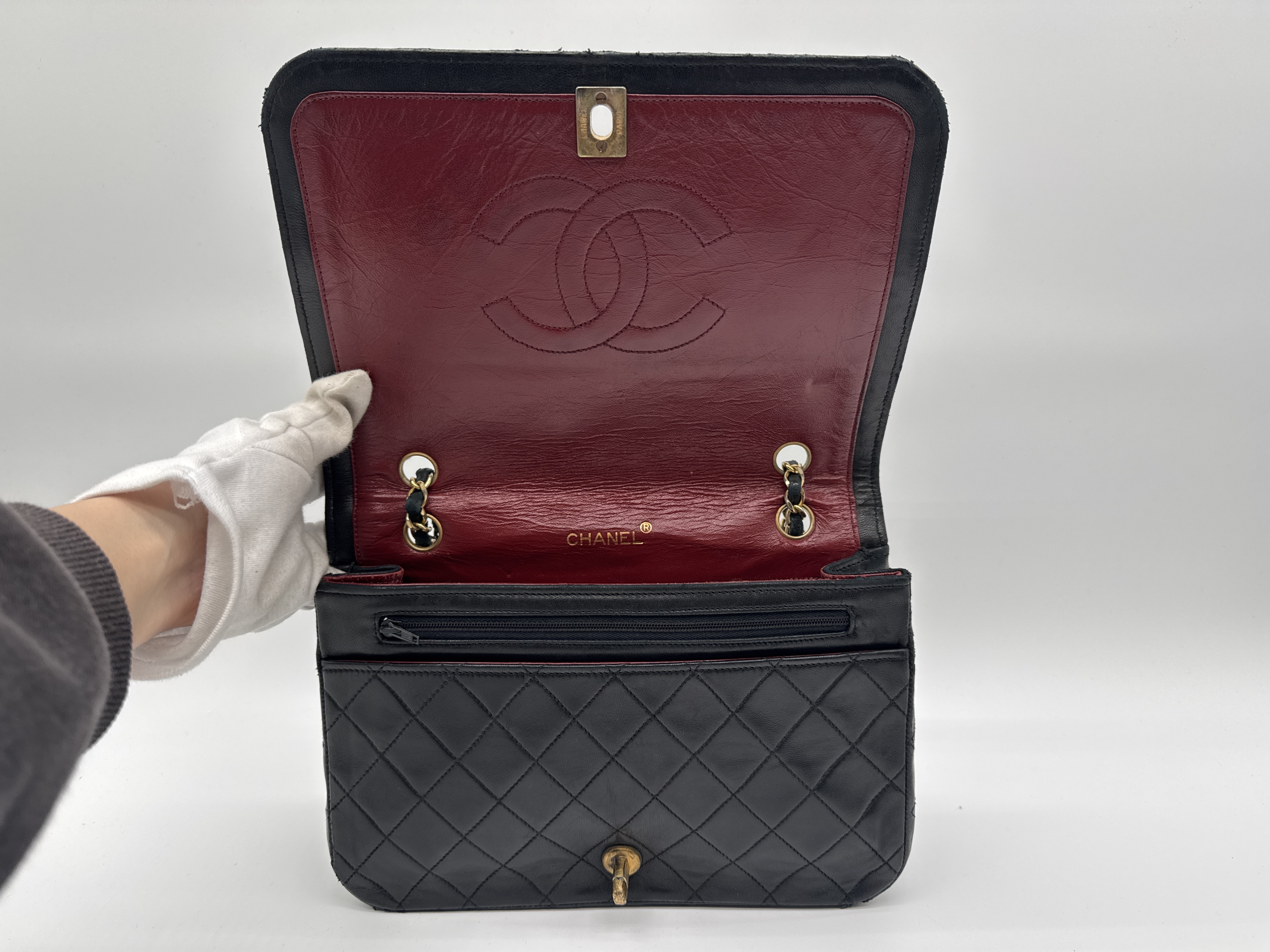 (11932_0057)CHANEL マトラッセ ショルダーバッグ マトラッセ ココマーク ゴールド金具 ターンロック ラムスキン ブラック ショルダーバッグ