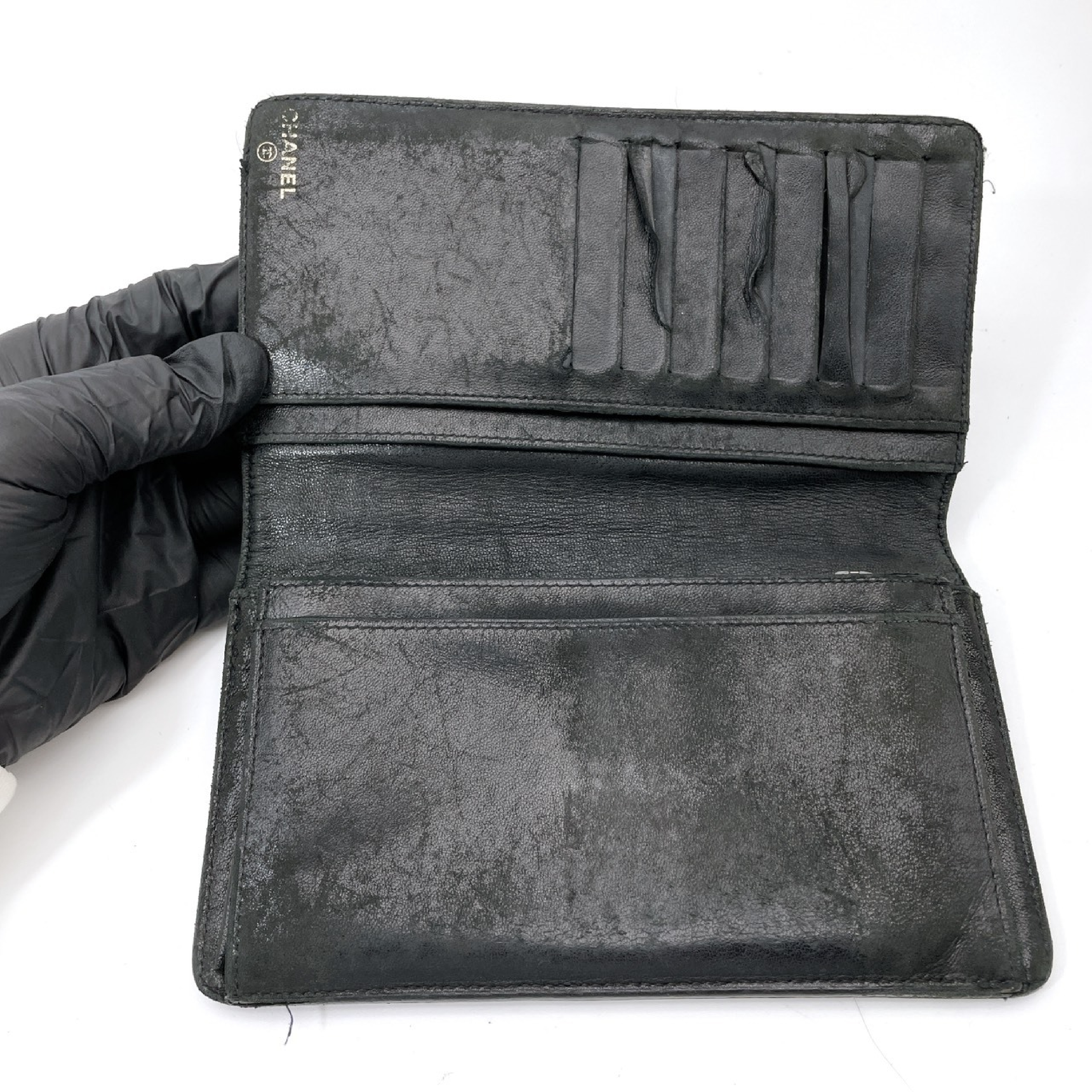 (11932_0153)CHANEL シャネル チョコバー ブラック 長 財布