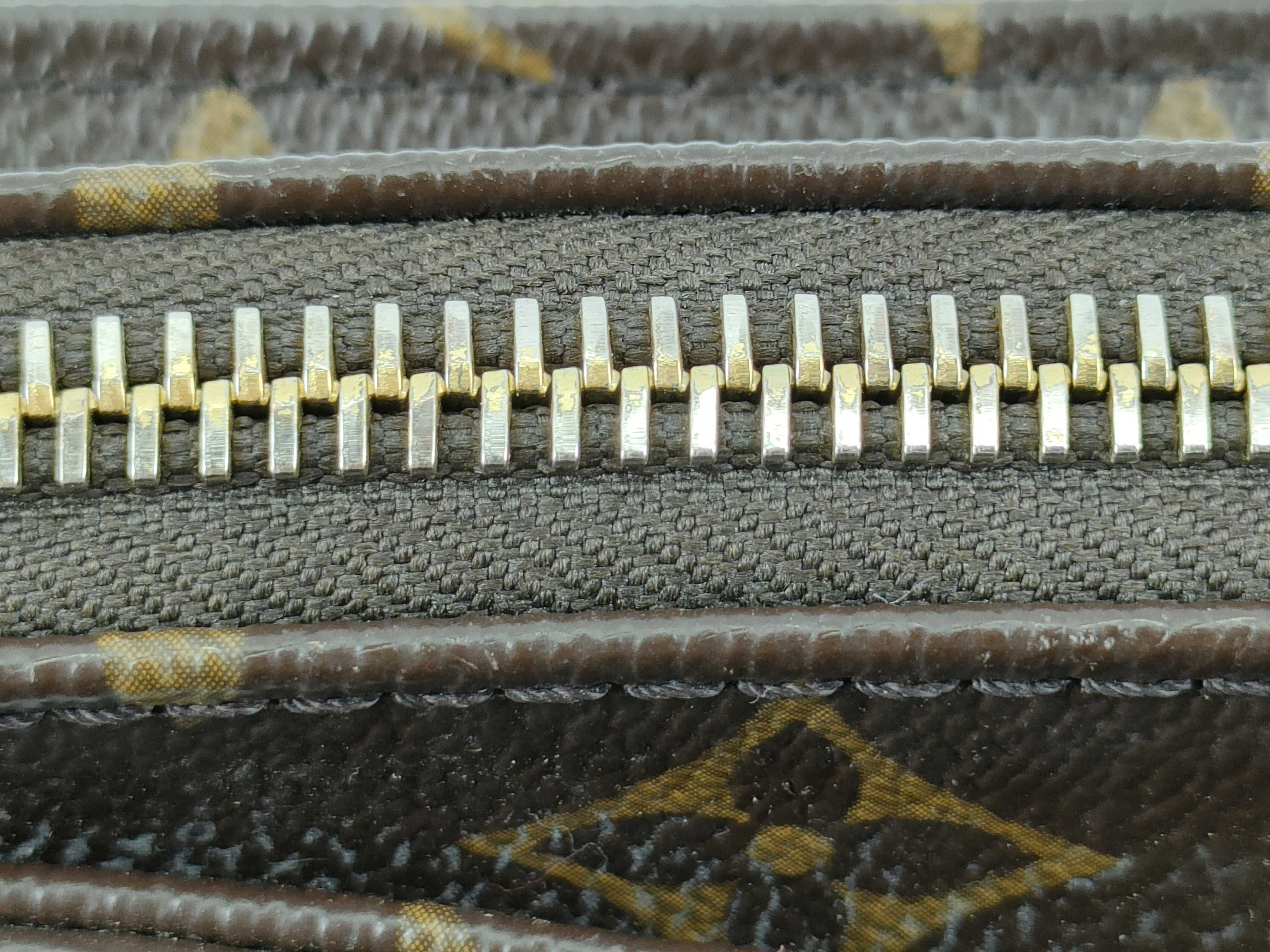 全体擦れ(小) 焼け汚れ(小) ヌメ革擦れ焼け(小) コバ擦れ毛羽立ち(小) 角縁擦れ剥げ(小) 金具くすみ変色剥がれ(中) 内側汚れ(小) ポケット汚れ(小)【付属品