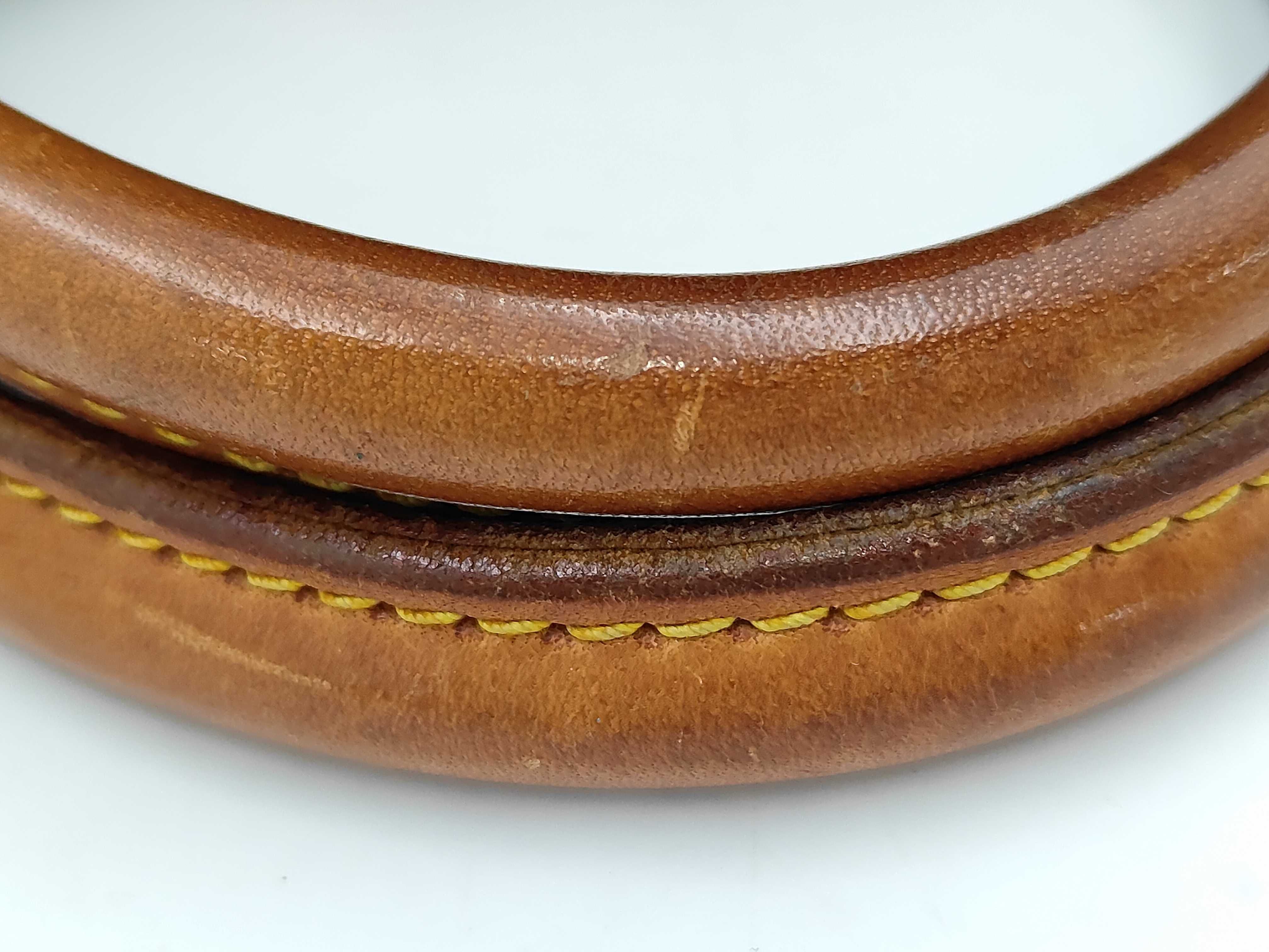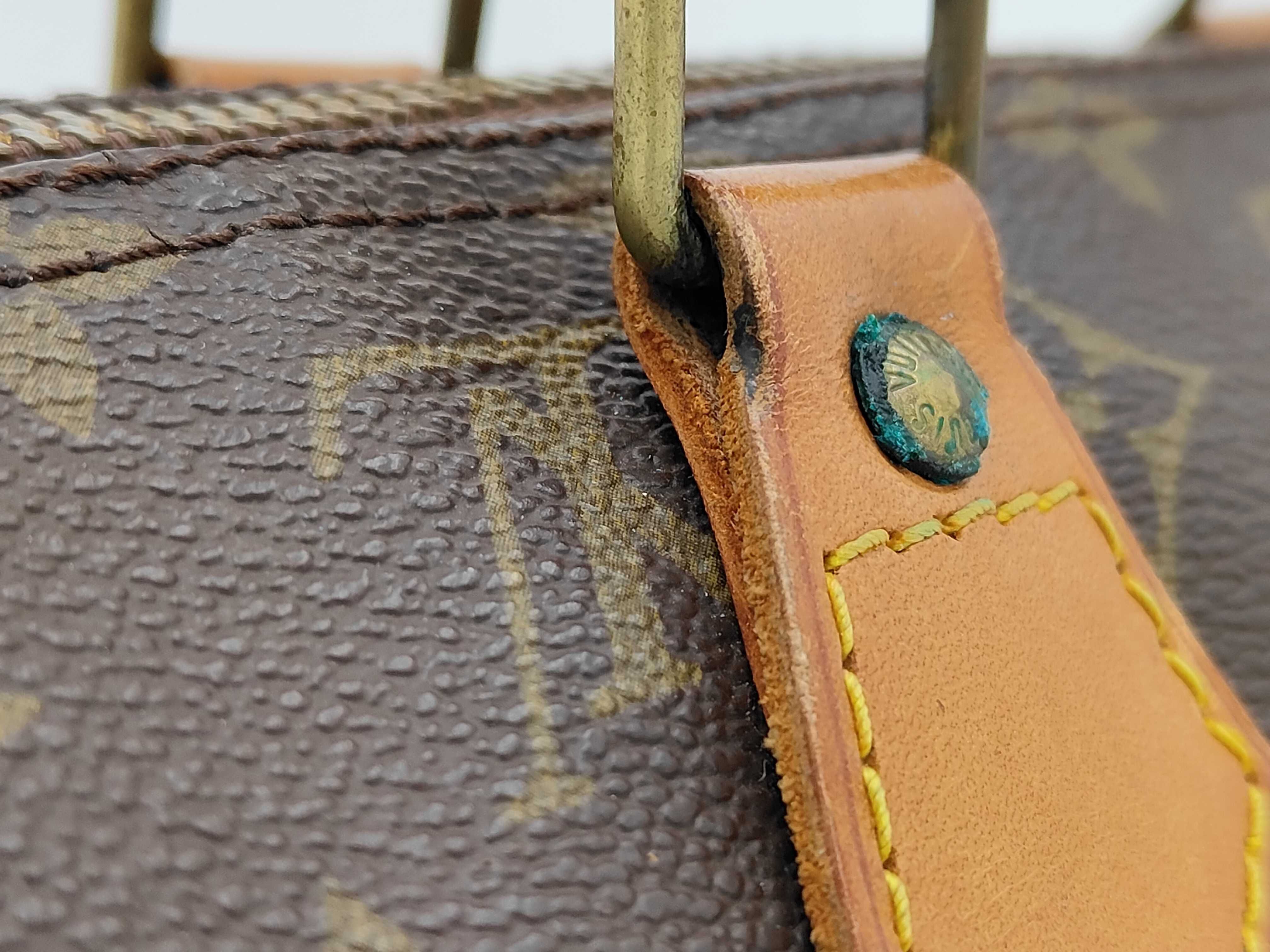 全体ヤケ擦れ変色(中) ヌメ革ヤケシミ(中) 型崩れ(中) 角縁擦れ剥げ(中) 金具擦れ傷剥げ青サビ(中) ぷるかわ擦れ剥げ(中) 持ち手擦れ傷汚れ(中) 内側擦れカビシミ汚れペン跡(中) におい有 【シリアル