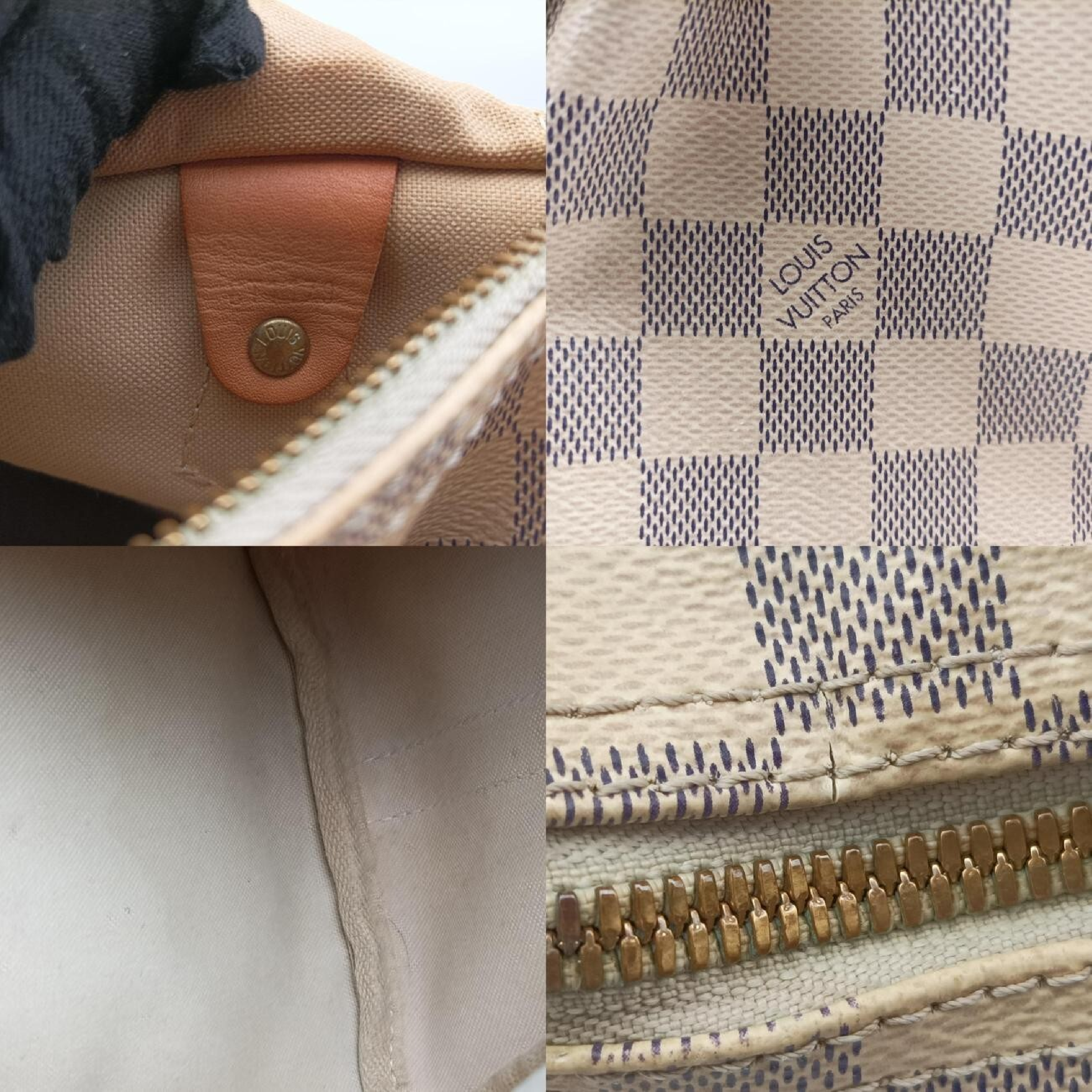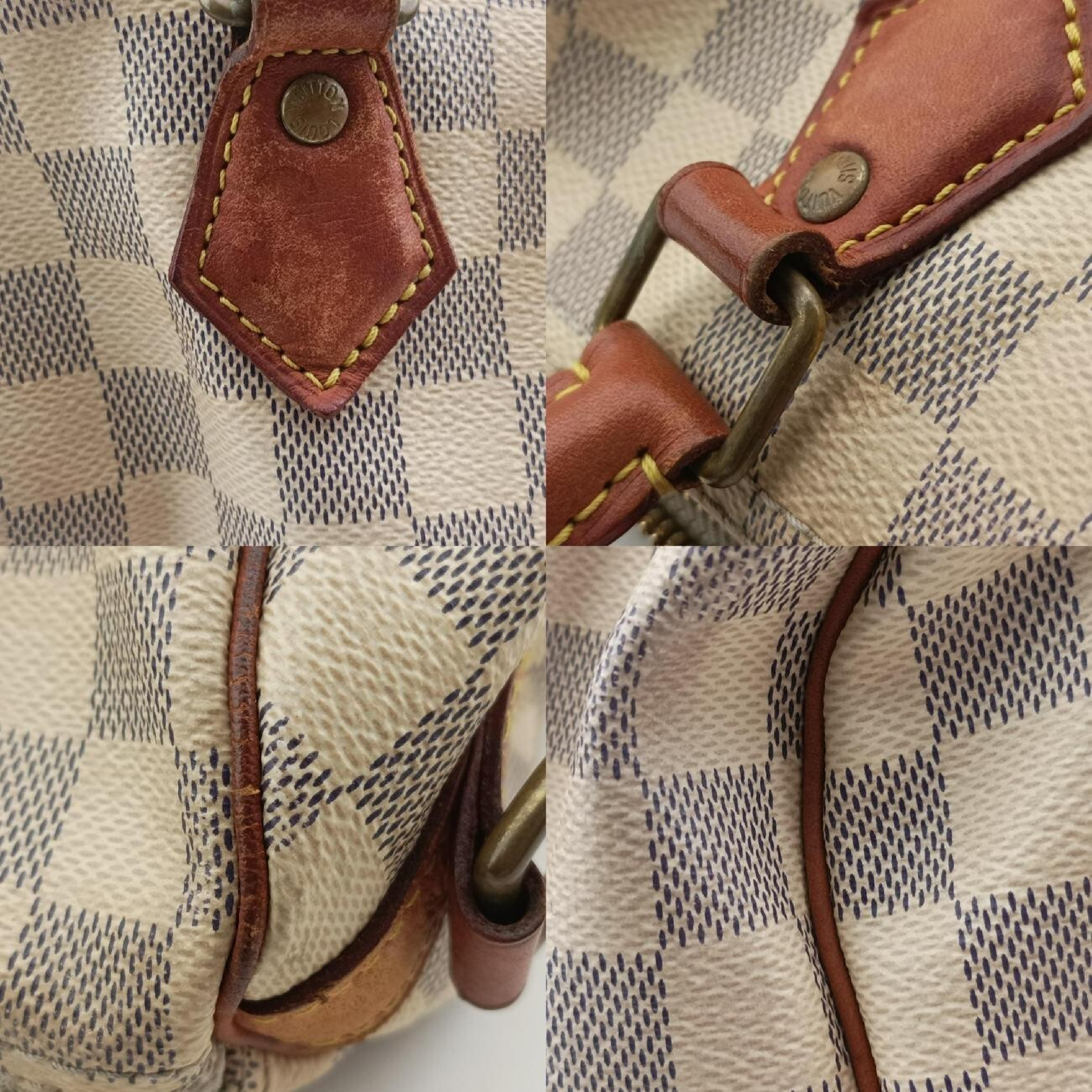 全体黒ずみ(中) 角擦れ剥げ(中) ヌメ革シミヤケ(中) 金具くすみ擦れ(中) 持ち手黒ずみ(中) ショルダーヒビ(小) 間口ヒビ(小) 内側シミ黒ずみ(中)","タイプライン": "ダミエ アズール", "カテゴリ": "バッグ", "形状コード": "ショルダーバッグ", "付属品コード": "", "シリアル・シール・型番": ""