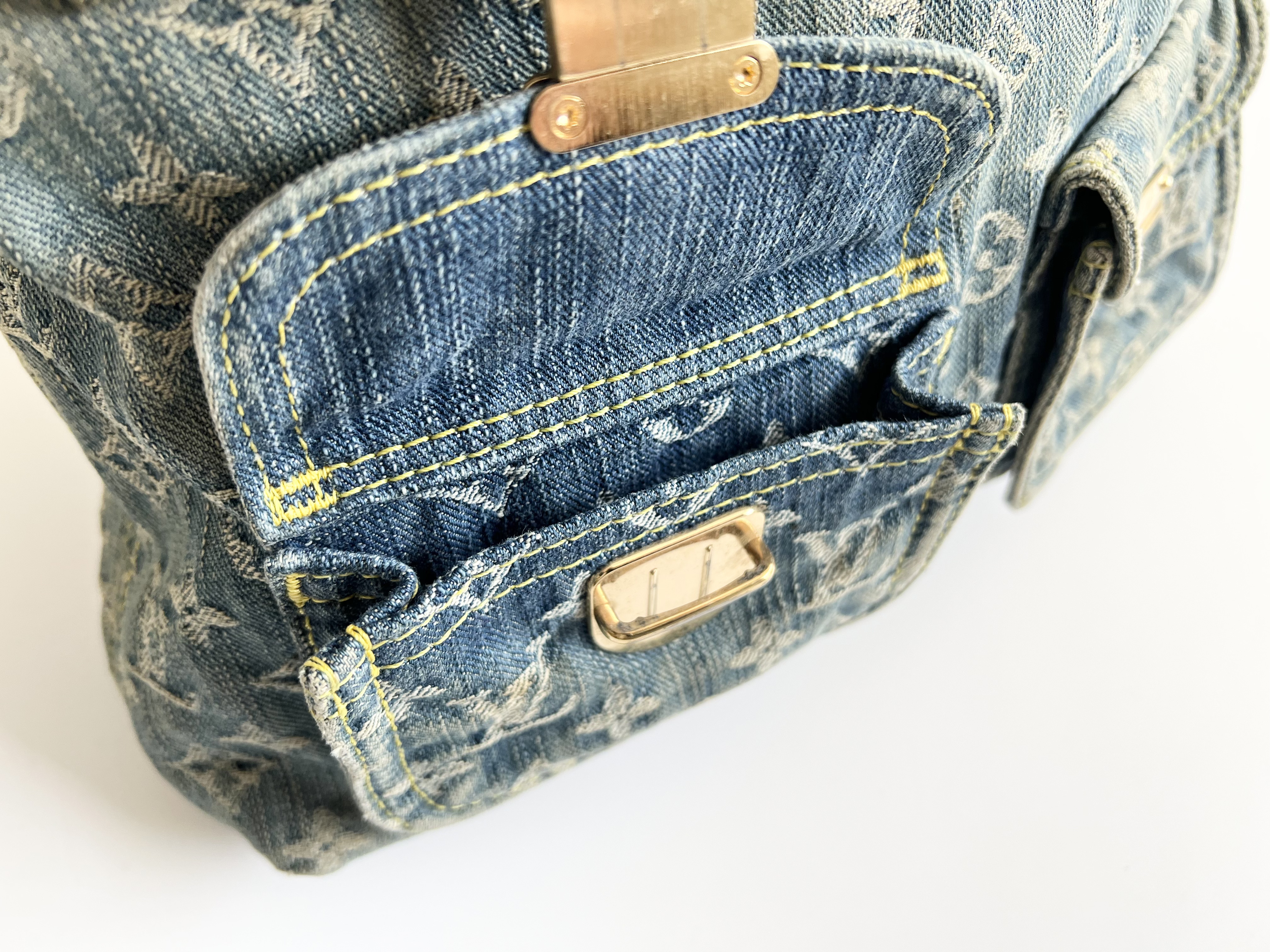 色褪せハゲ(中) 角スレ(中) 金具傷ハゲ(中) ショルダーシミ(中) 付け根生地破れ(中) 内側毛羽たち汚れ(中)","タイプライン": "モノグラム デニム", "カテゴリ": "バッグ", "形状コード": "ショルダーバッグ", "付属品コード": "", "シリアル・シール・型番": ""