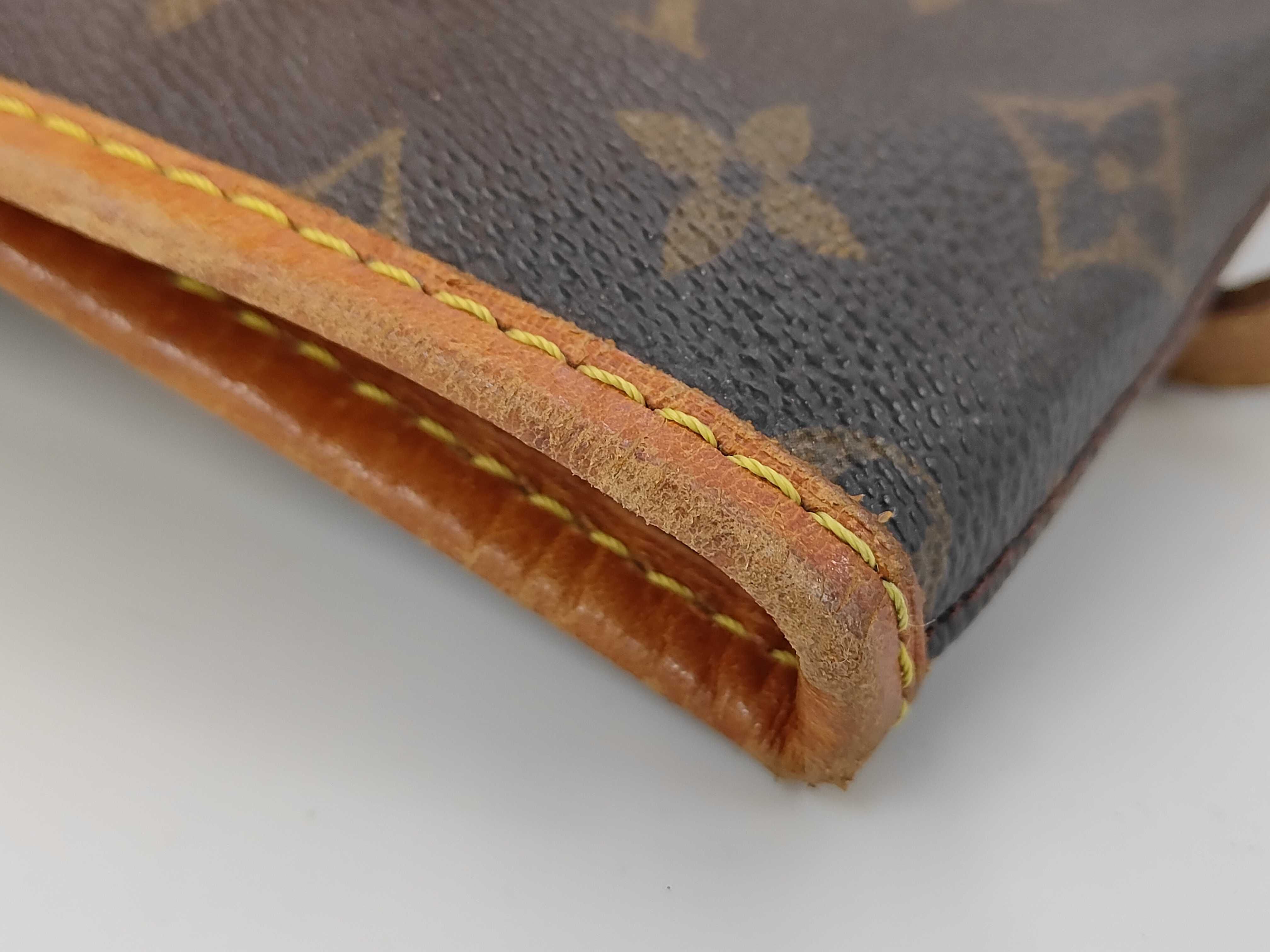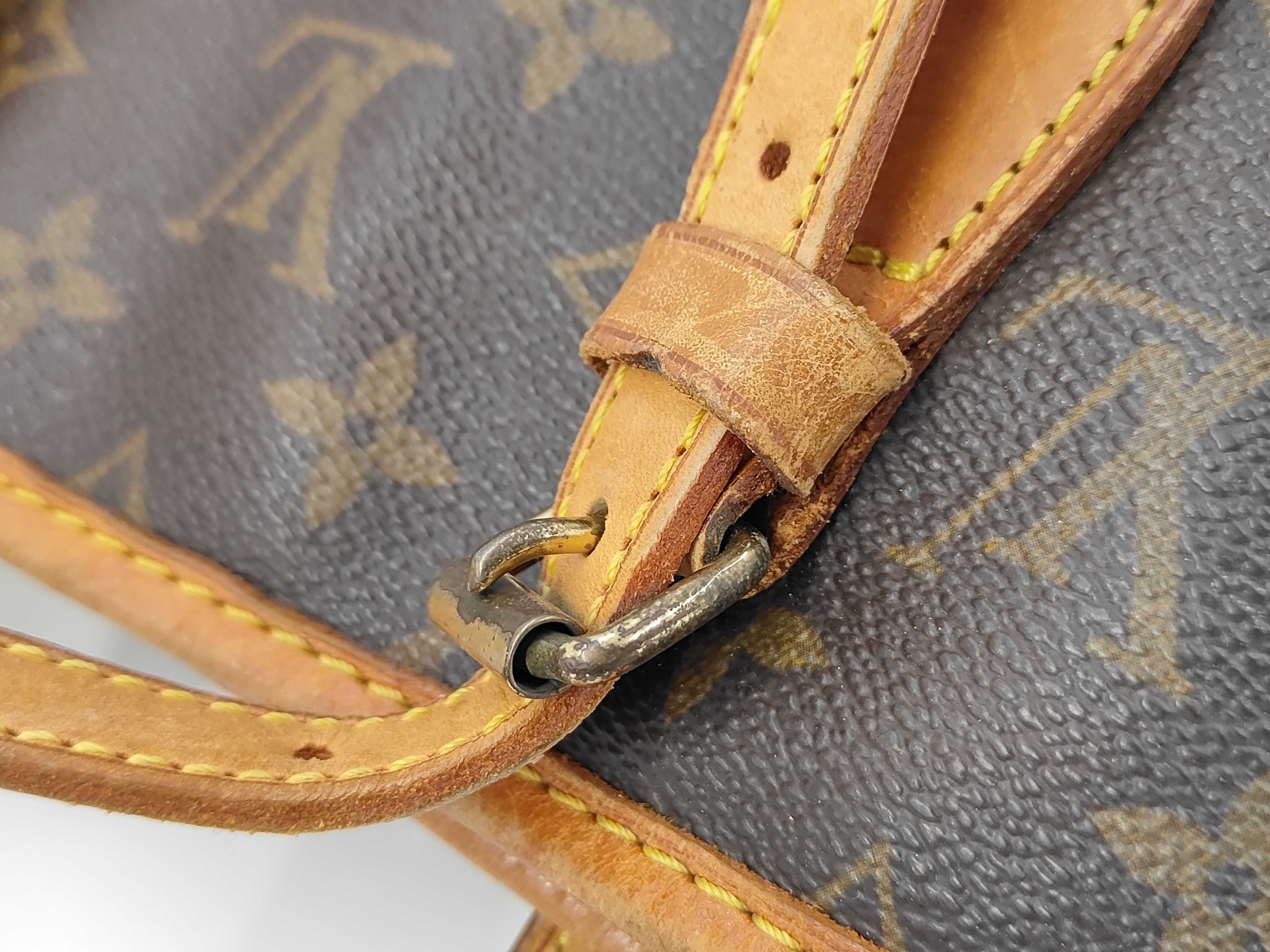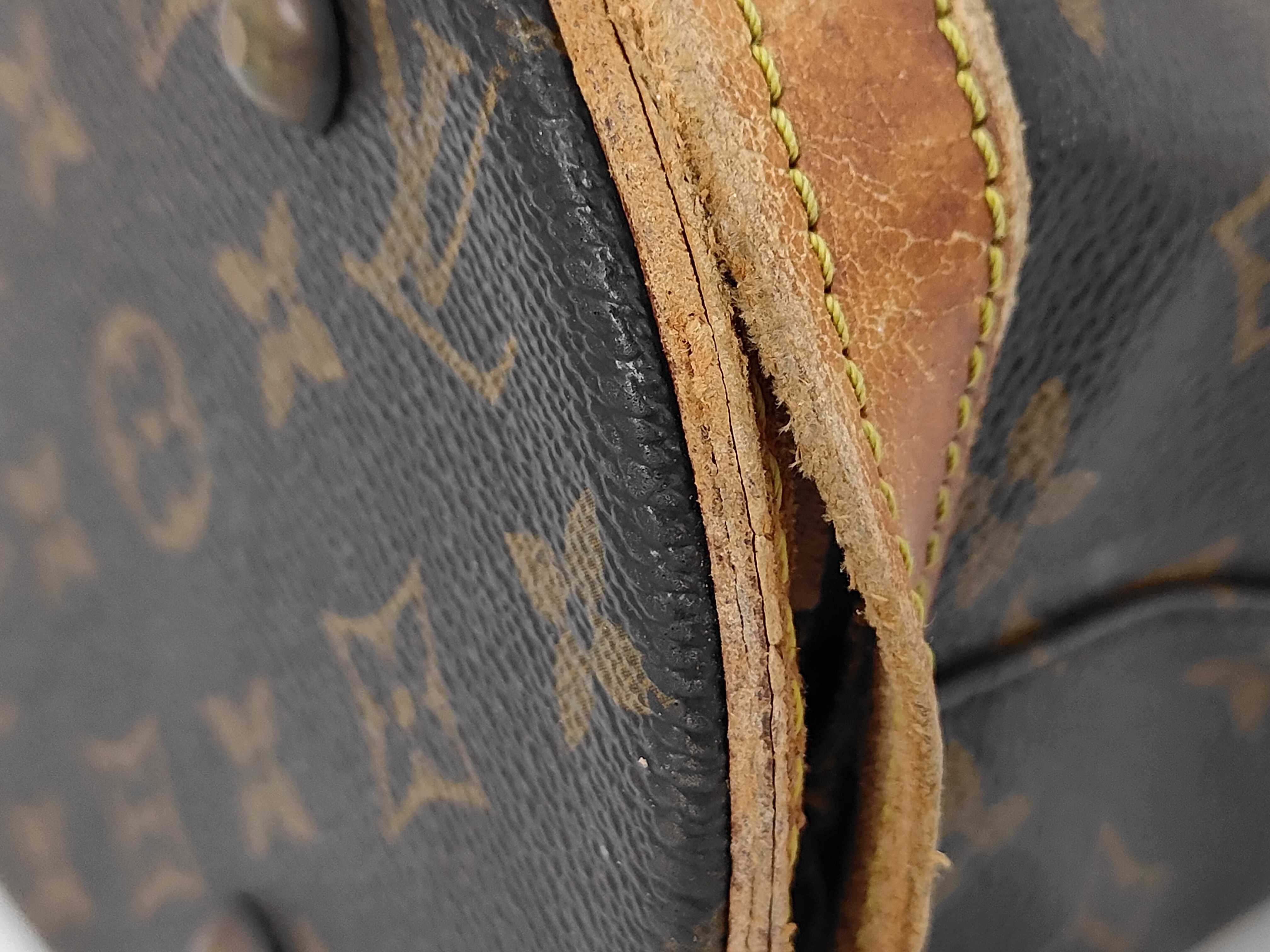 全体ヤケ擦れ汚れ(中) ヌメ革ヤケシミヒビ(中) 持ち手黒ずみヒビ(中) 内側劣化べた剥がれ(大) ポーチ欠品【シリアル