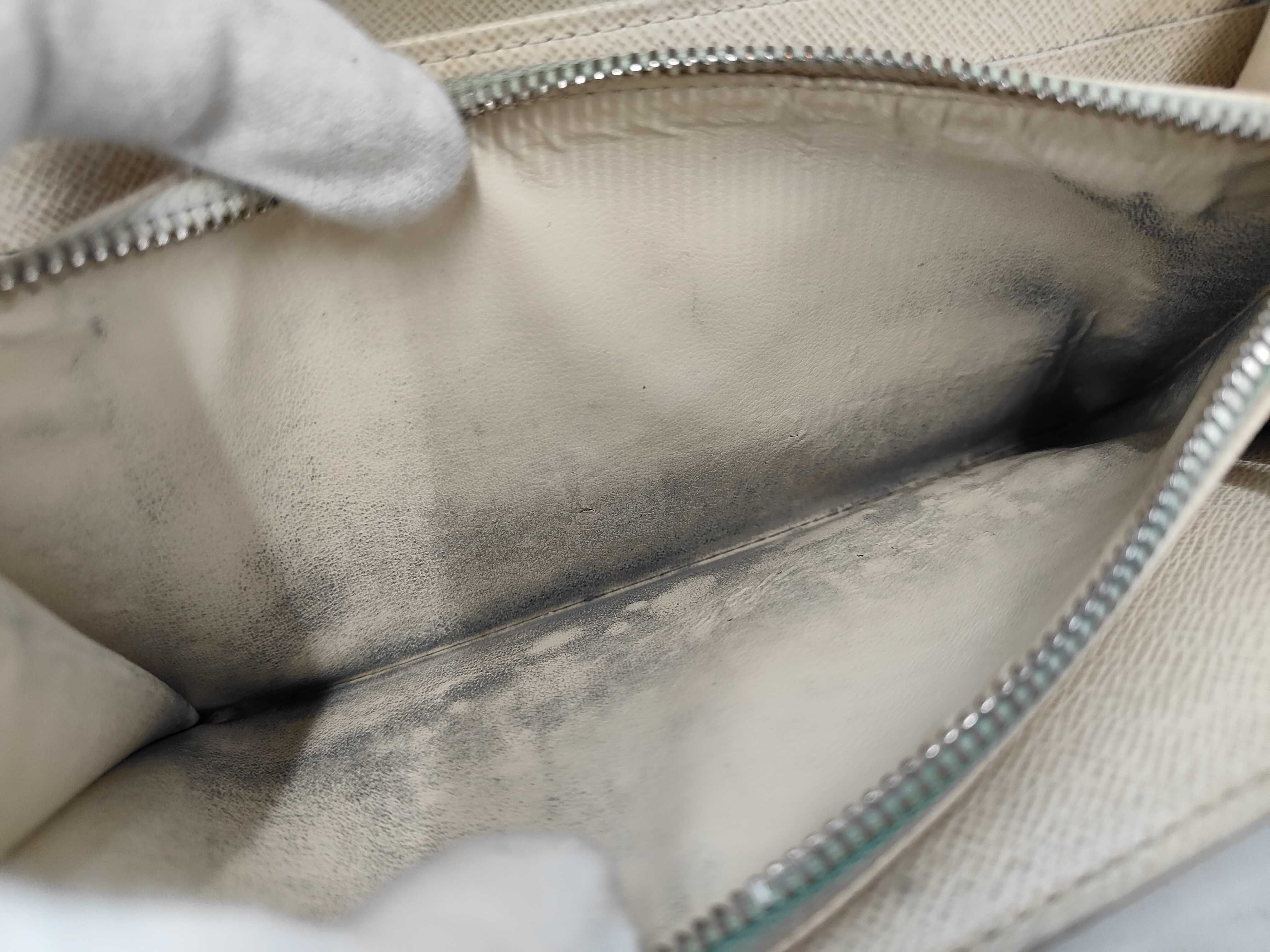 全体ヤケ汚れ(中) 角フチ擦れ割れ(中) 金具剥げ(中) 内側浮きシワ(中) サイドほつれ有 シミ汚れ(中) 小銭入れ黒ずみ(中) イニシャル有 【シリアル