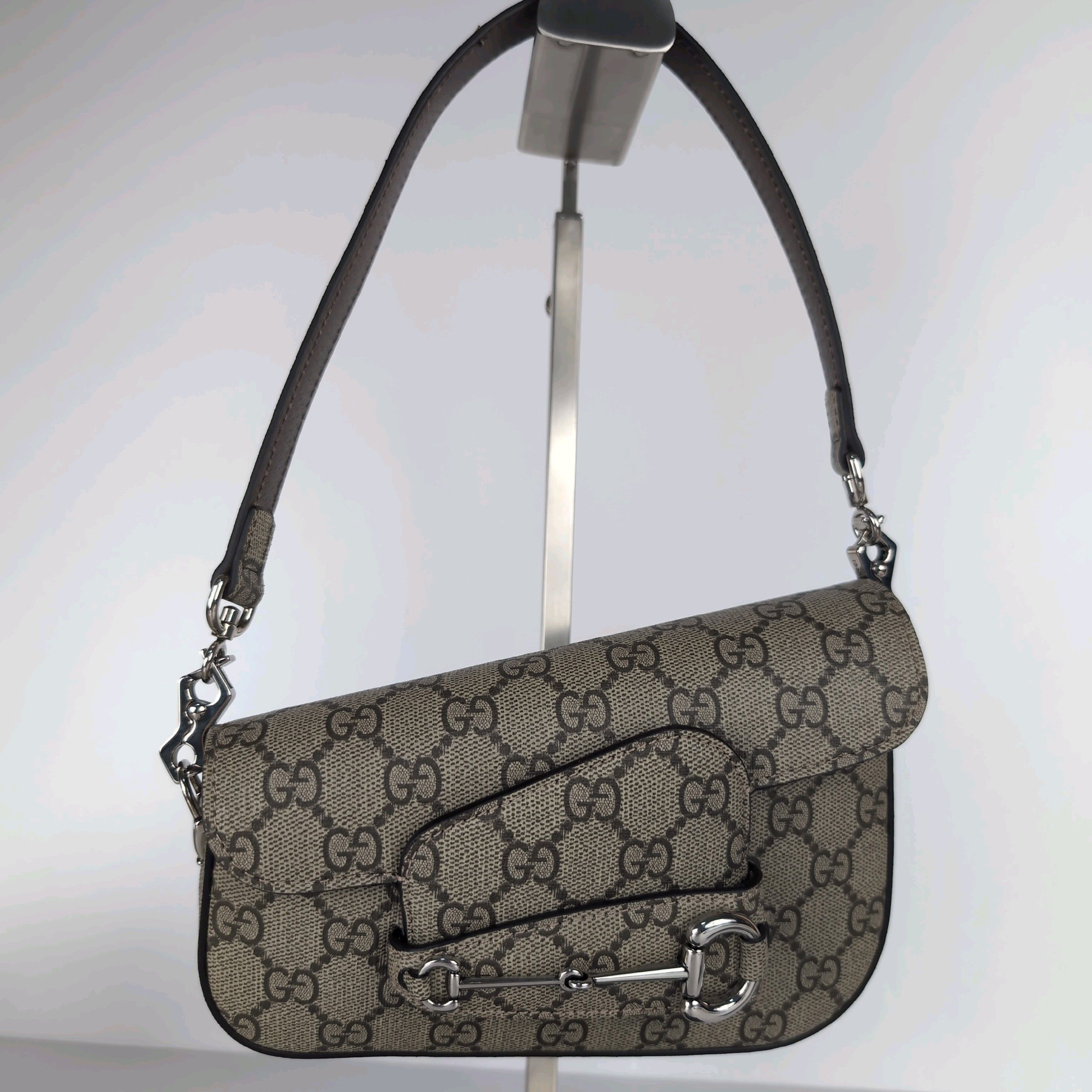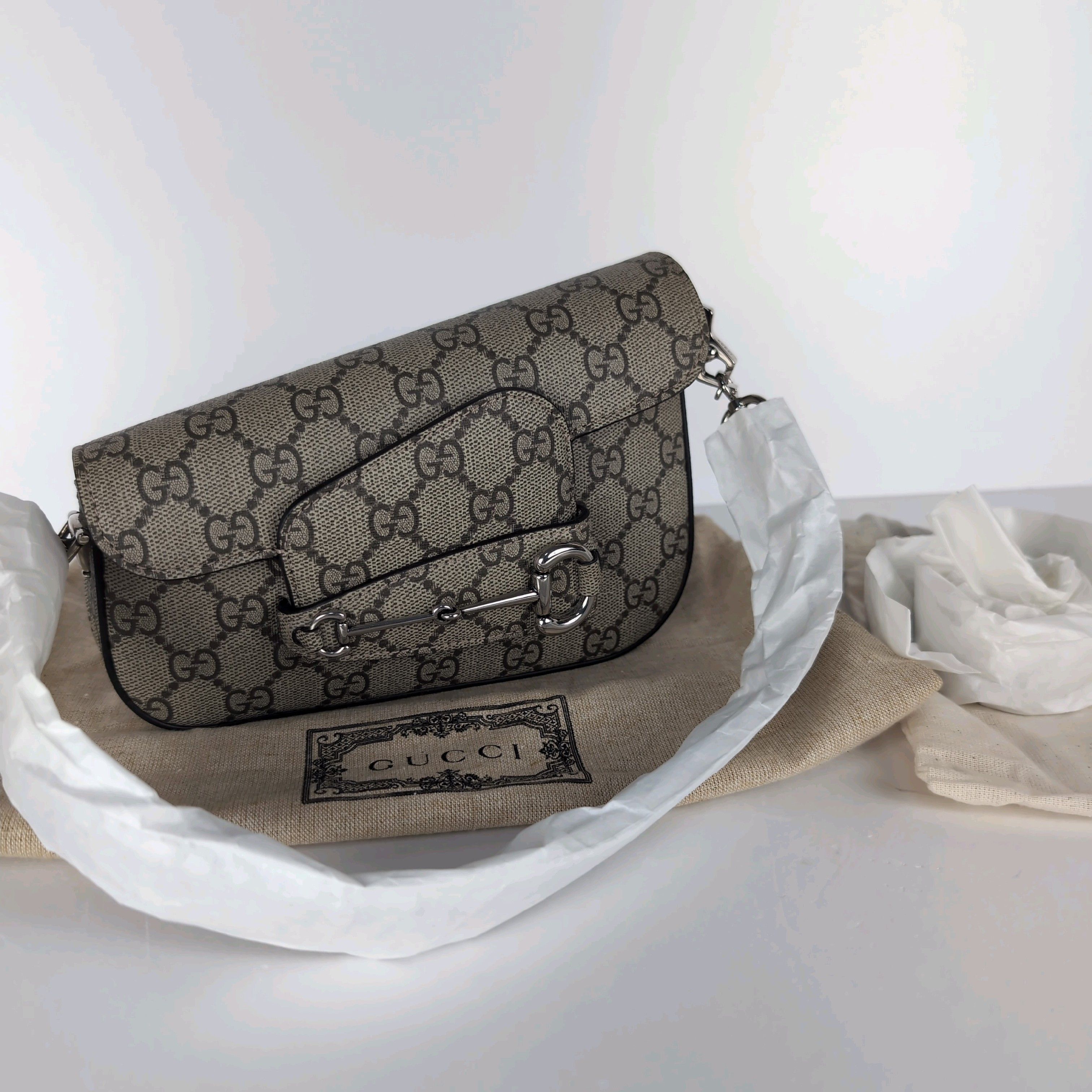 (11934_0003)GUCCI GG グッチ GGスプリーム ホースビット ミニショルダーバッグ タテ9cm14cm ヨコ20cm マチ6cm ショルダーひも40cm ショルダーチェーン67cm ショルダーバッグ