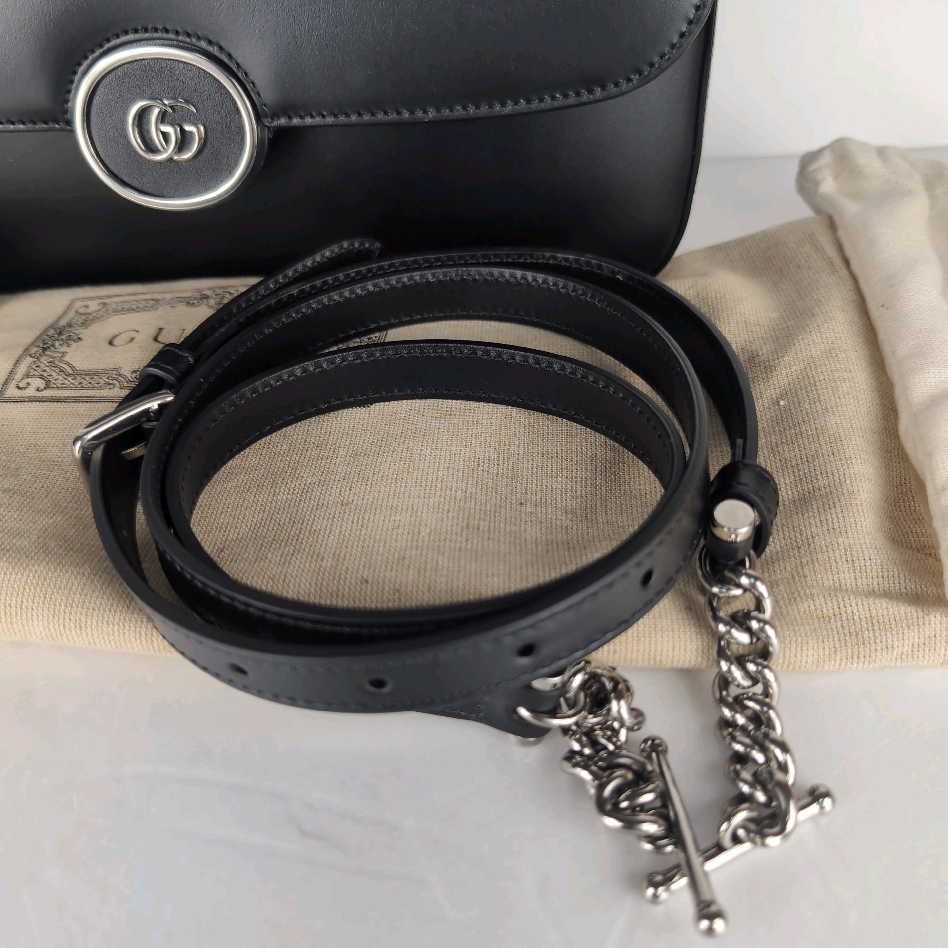 (11934_0005)GUCCI GG グッチ プチGG スモール 739721 黒 ブラック ハンドショルダー2wayバッグ カーフスキン タテ15cmヨコ27cmマチ5cmショルダーひも100~115cm ショルダーバッグ