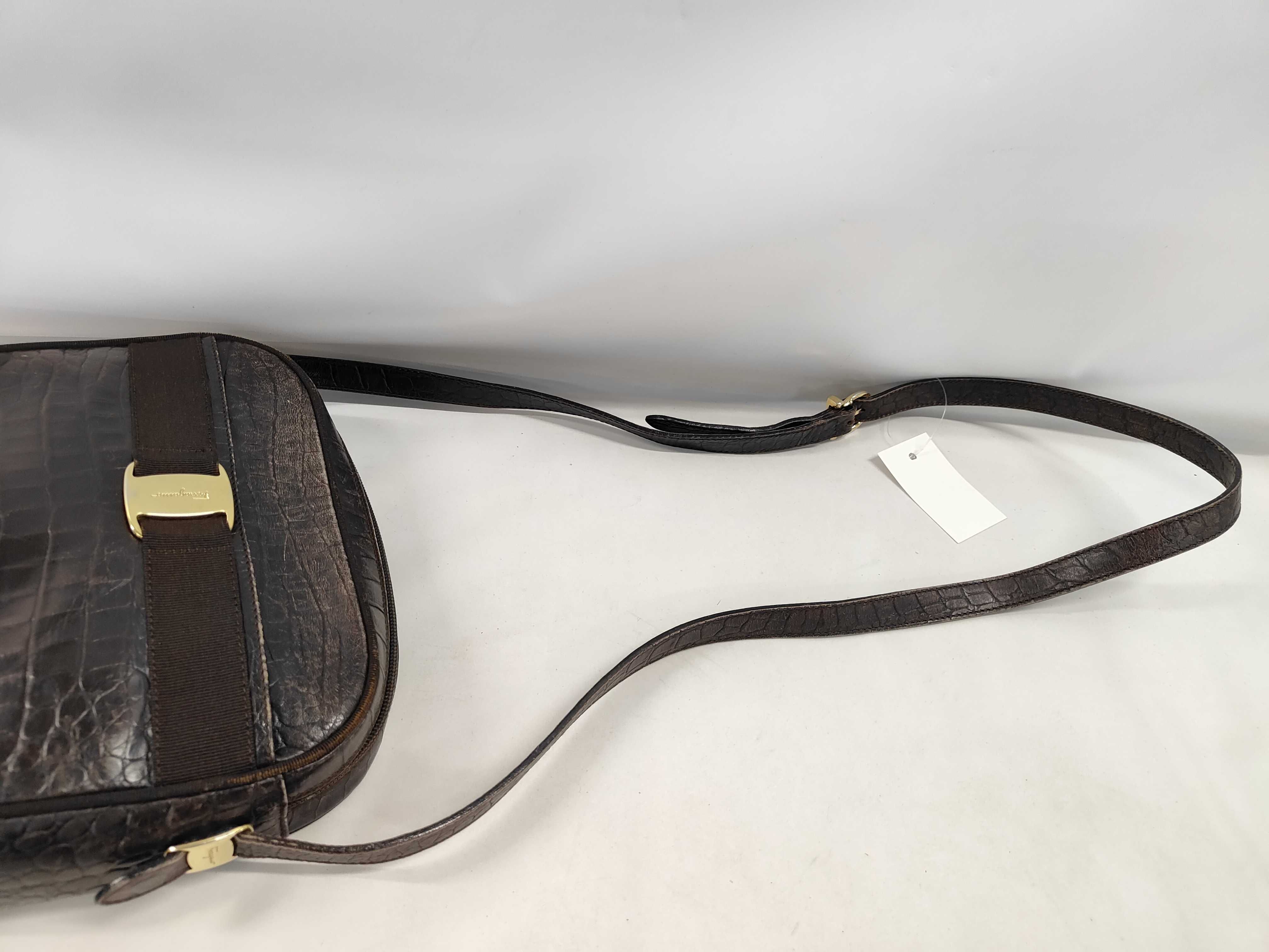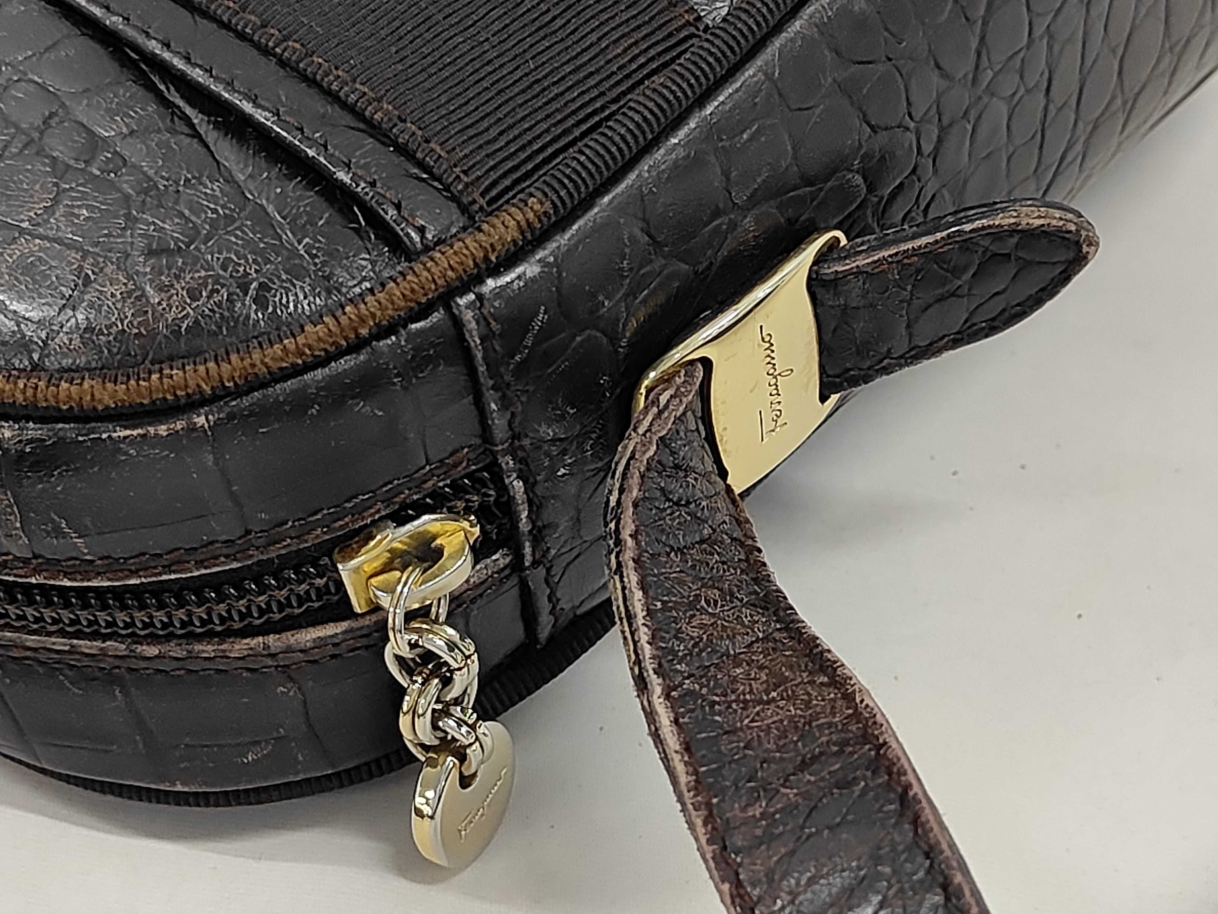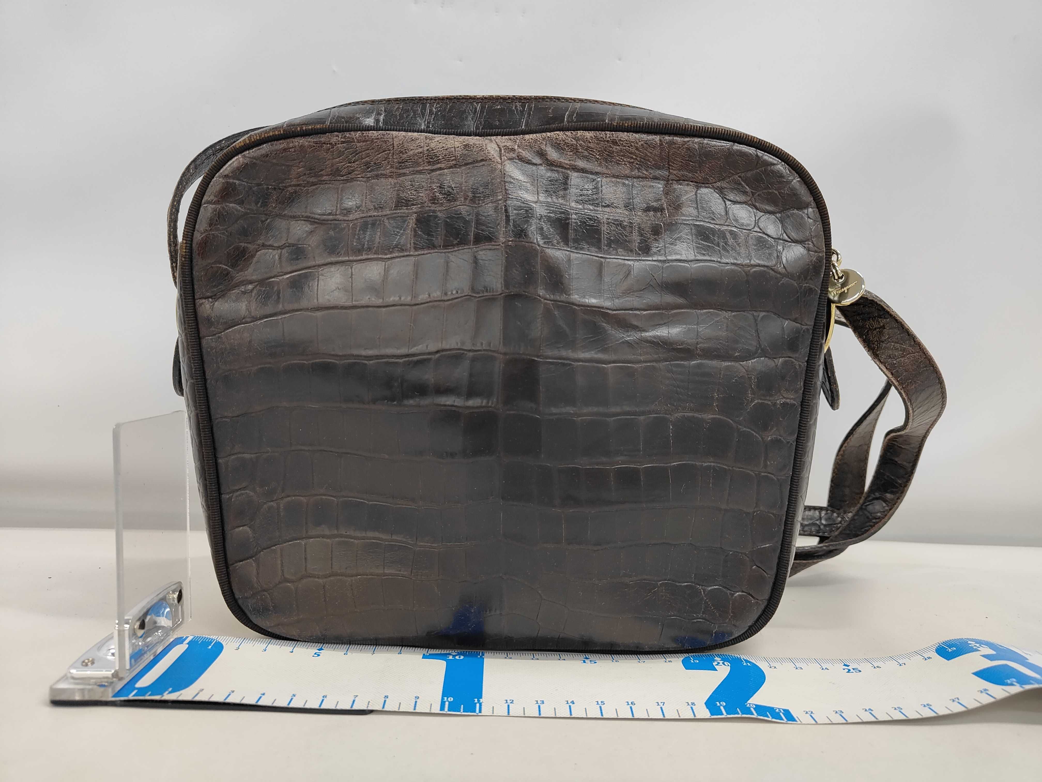 (11934_0178)▼Salvatore Ferragamo ヴァラ 型押しショルダーバッグ 全体スレあり ショルダーバッグ