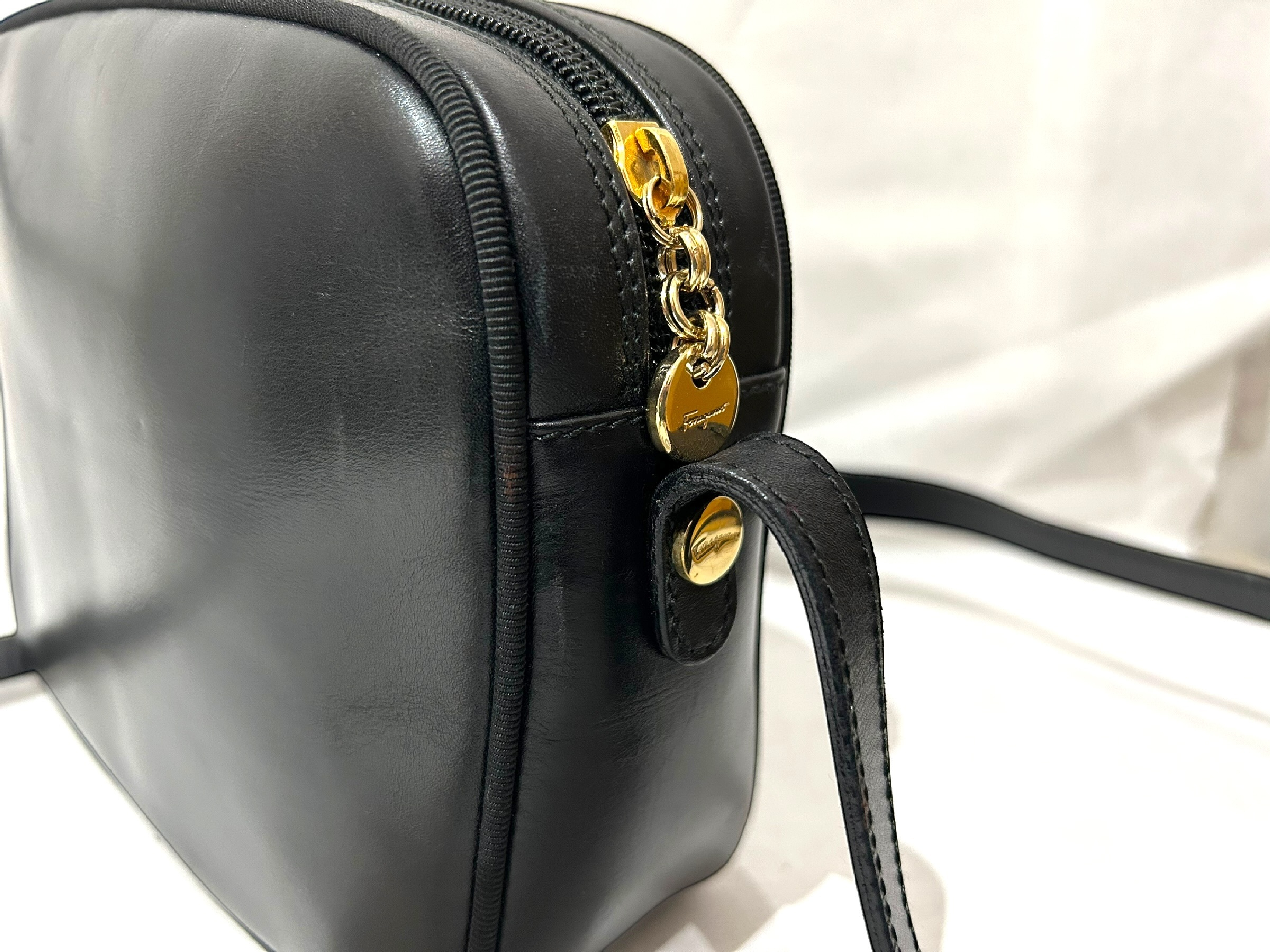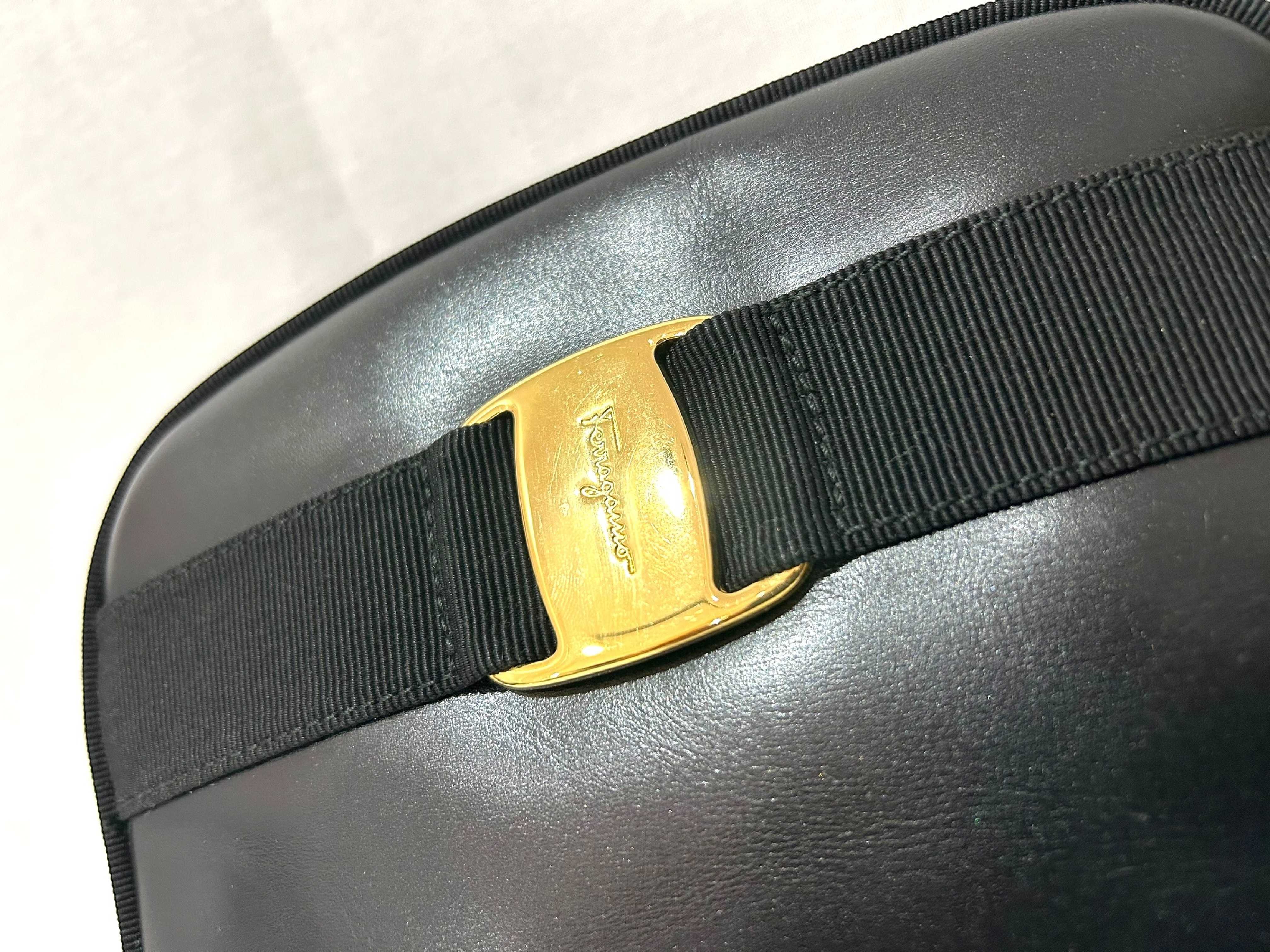 (11934_0181)Salvatore Ferragamo ヴァラ ポシェット ブラック レザー ゴールド金具 ショルダーバッグ