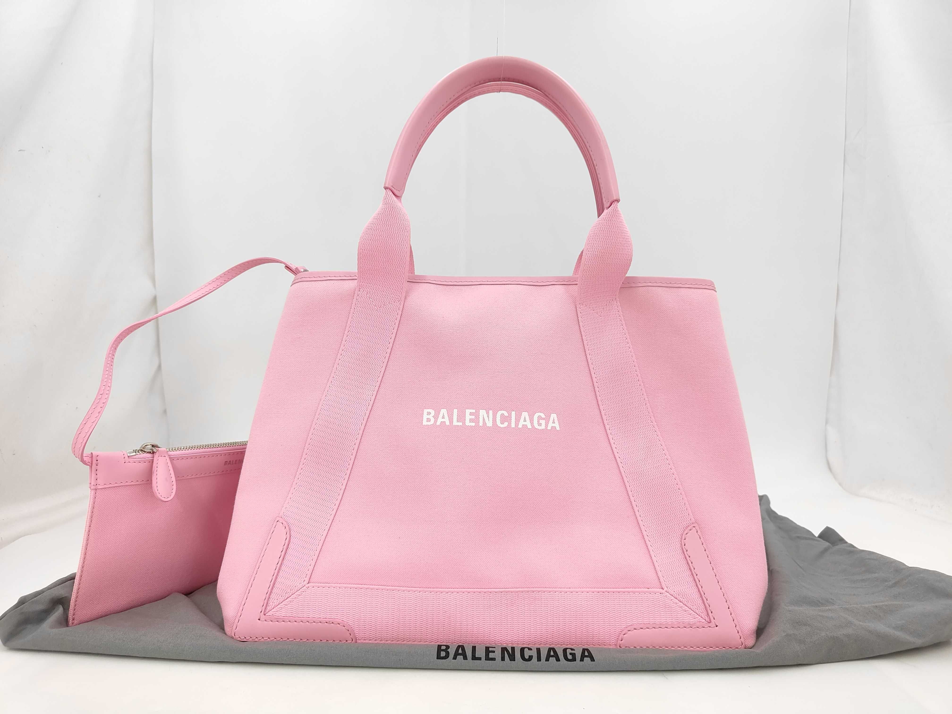 (11935_0036)BALENCIAGA BALENCIAGA バレンシアガ ネイビーカバスM 581292 ピンク トートバッグ ポーチ付き ハンドバッグ