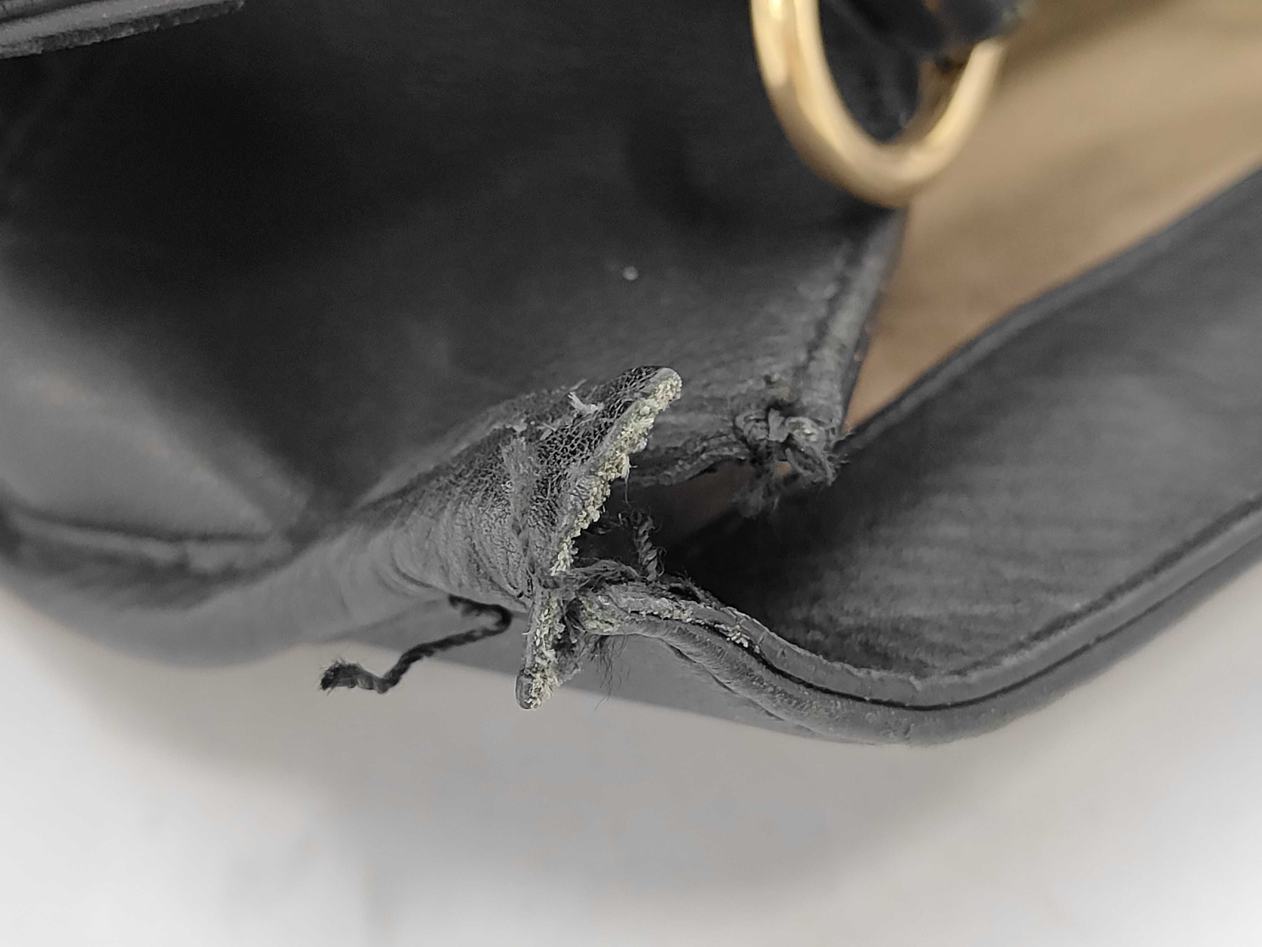 ショルダー留め金具欠損 表面切れ破れ有 角縁擦れ剥げ(中) 金具擦れ傷剥げくすみ(中) 持ち手コバヒビ(中) ショルダー擦れヨレ(中) コバヒビ(中) 間口コバヒビ(中) 内側擦れシミ汚れインクシミ(中) におい有【付属品