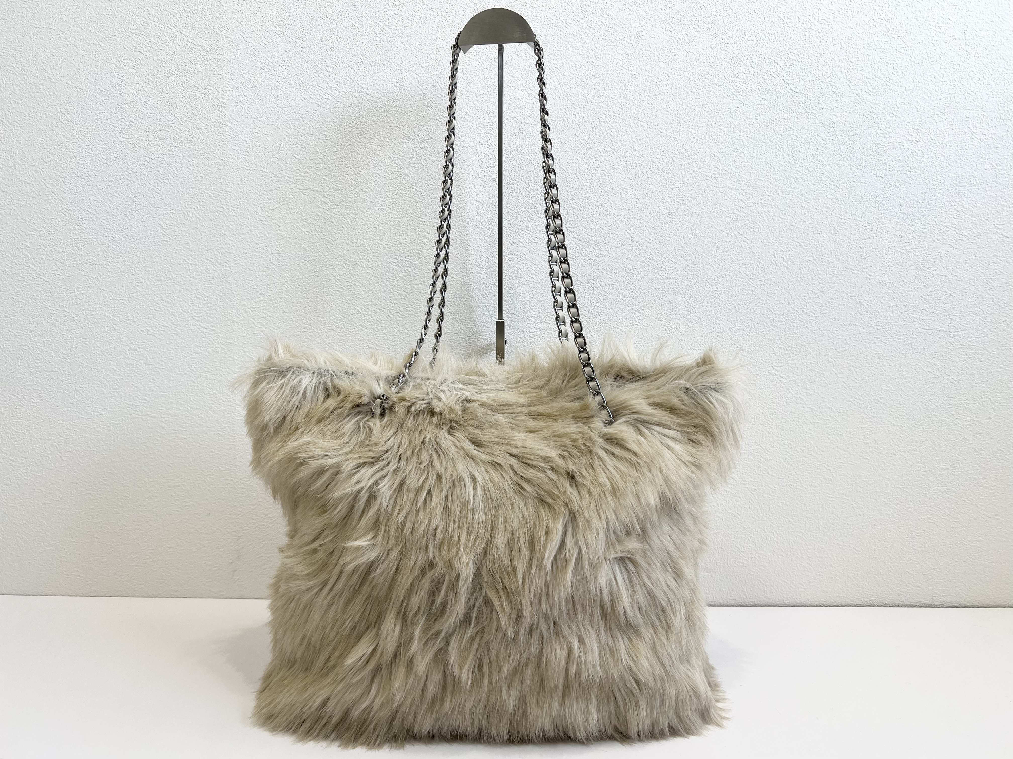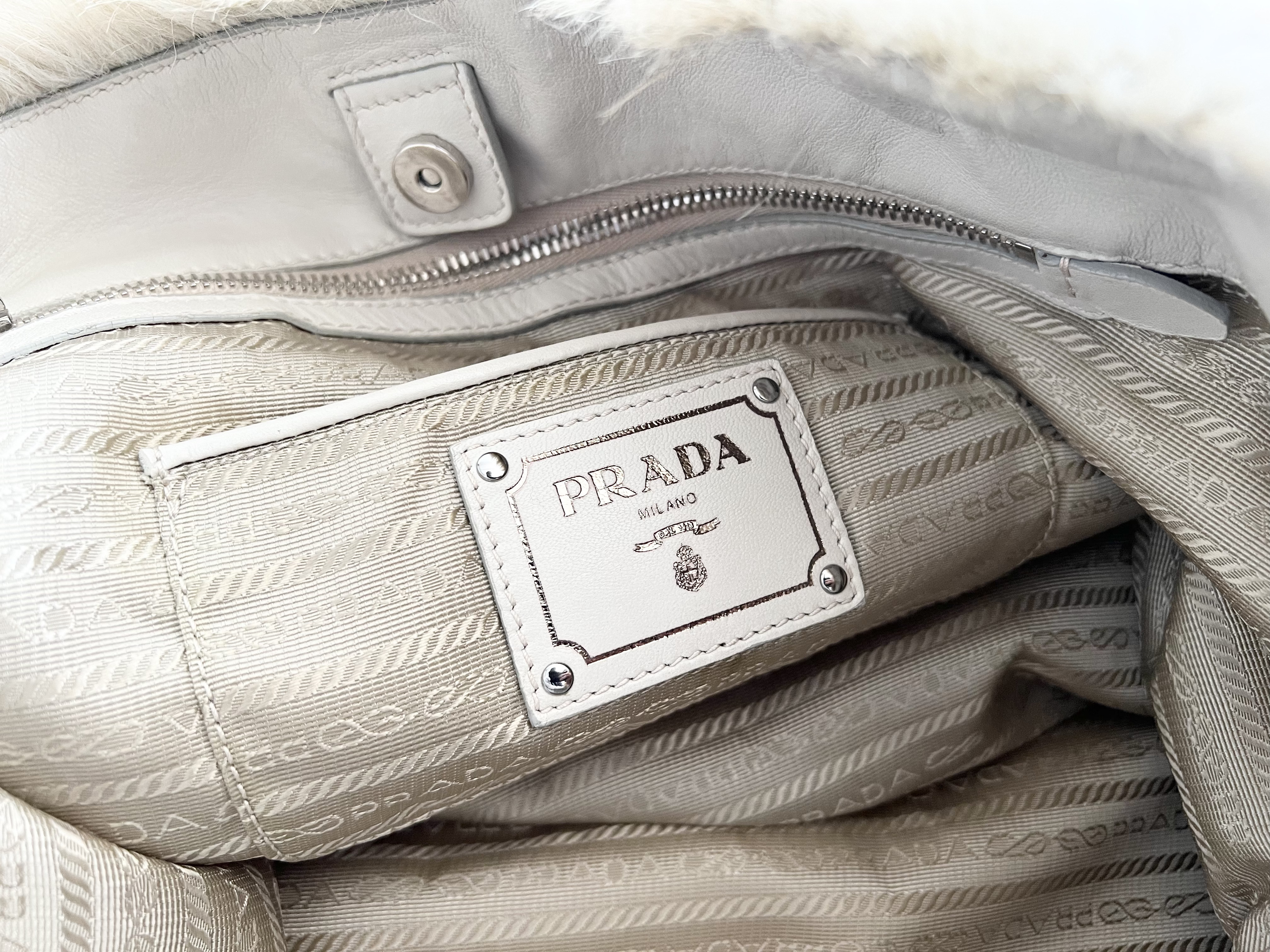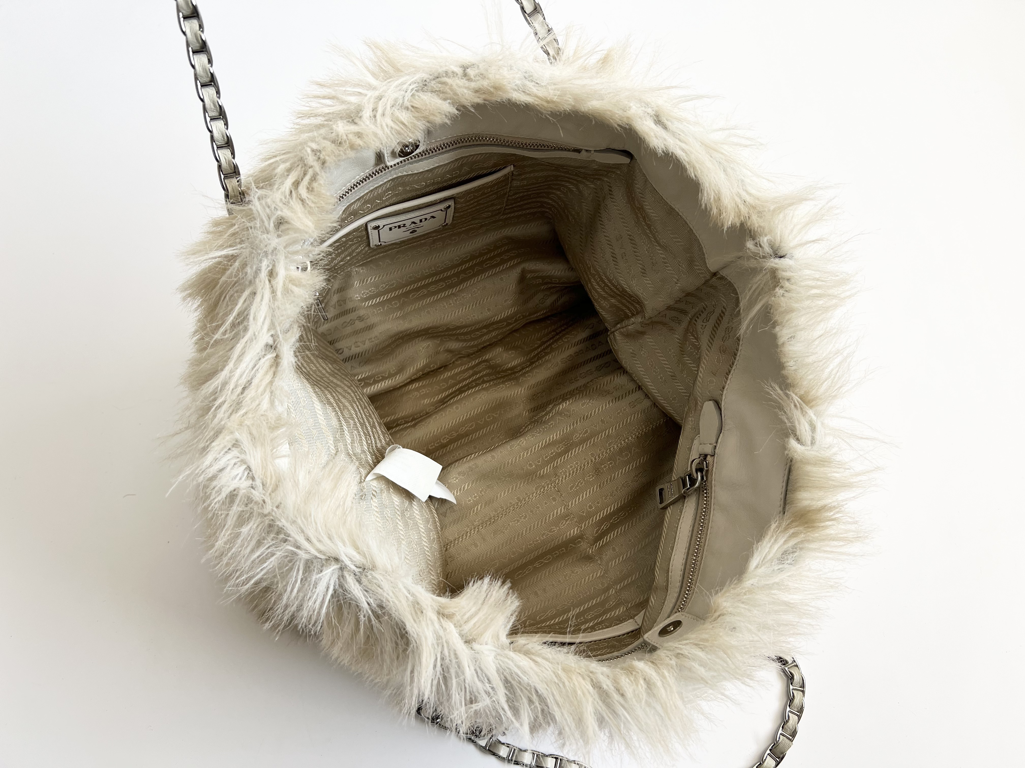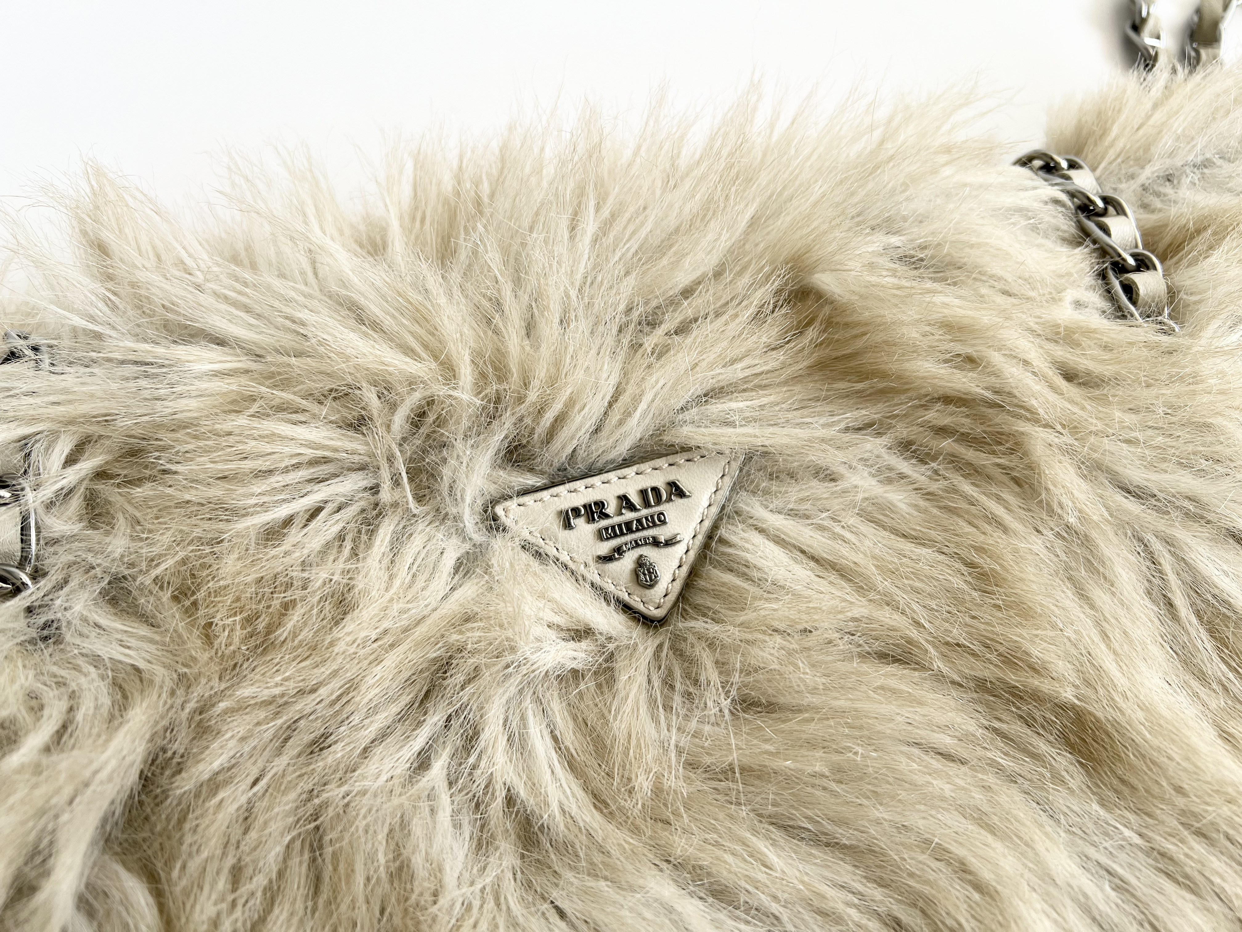 (11935_0084)PRADA PRADA プラダ ファー ボア チェーン ショルダーバッグ トートバッグ 三角ロゴ トライアングル バッグ