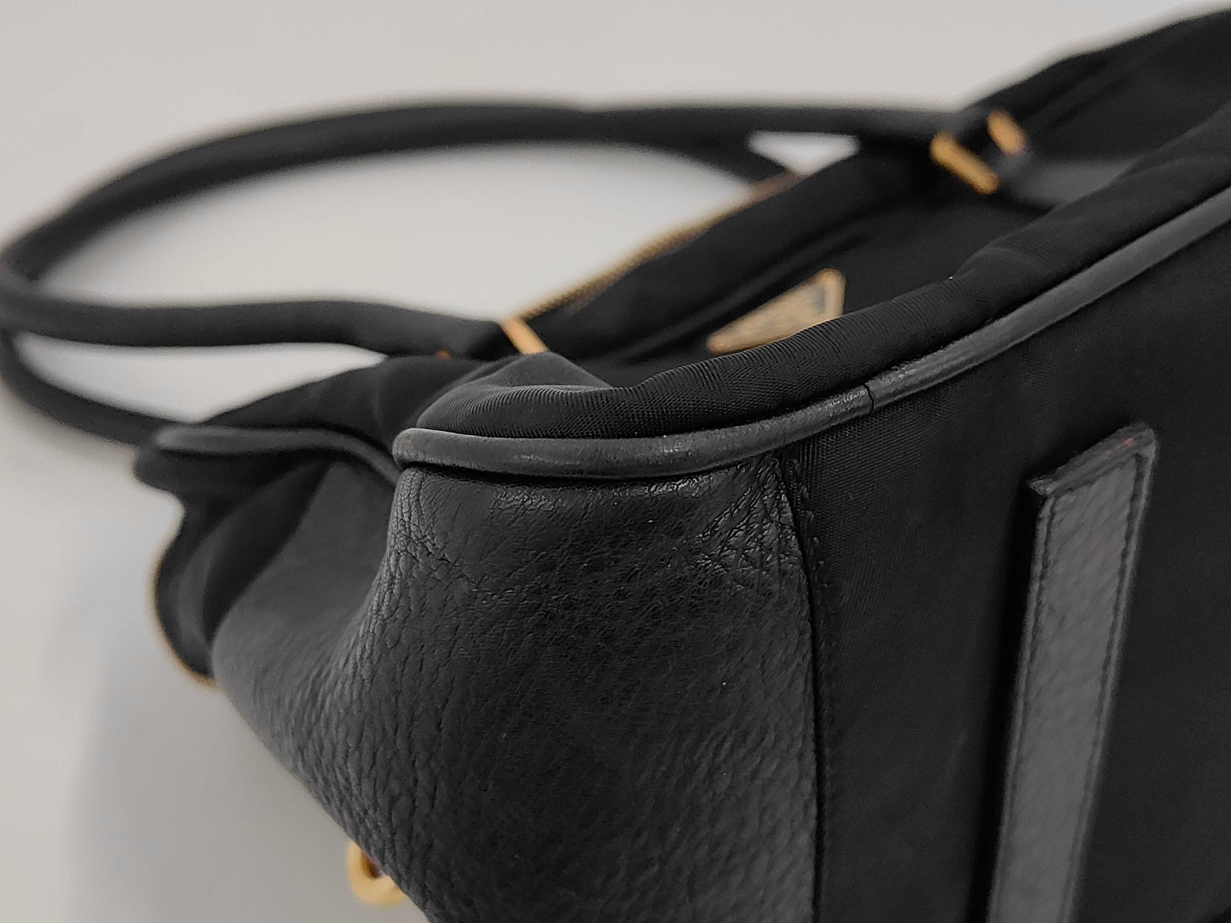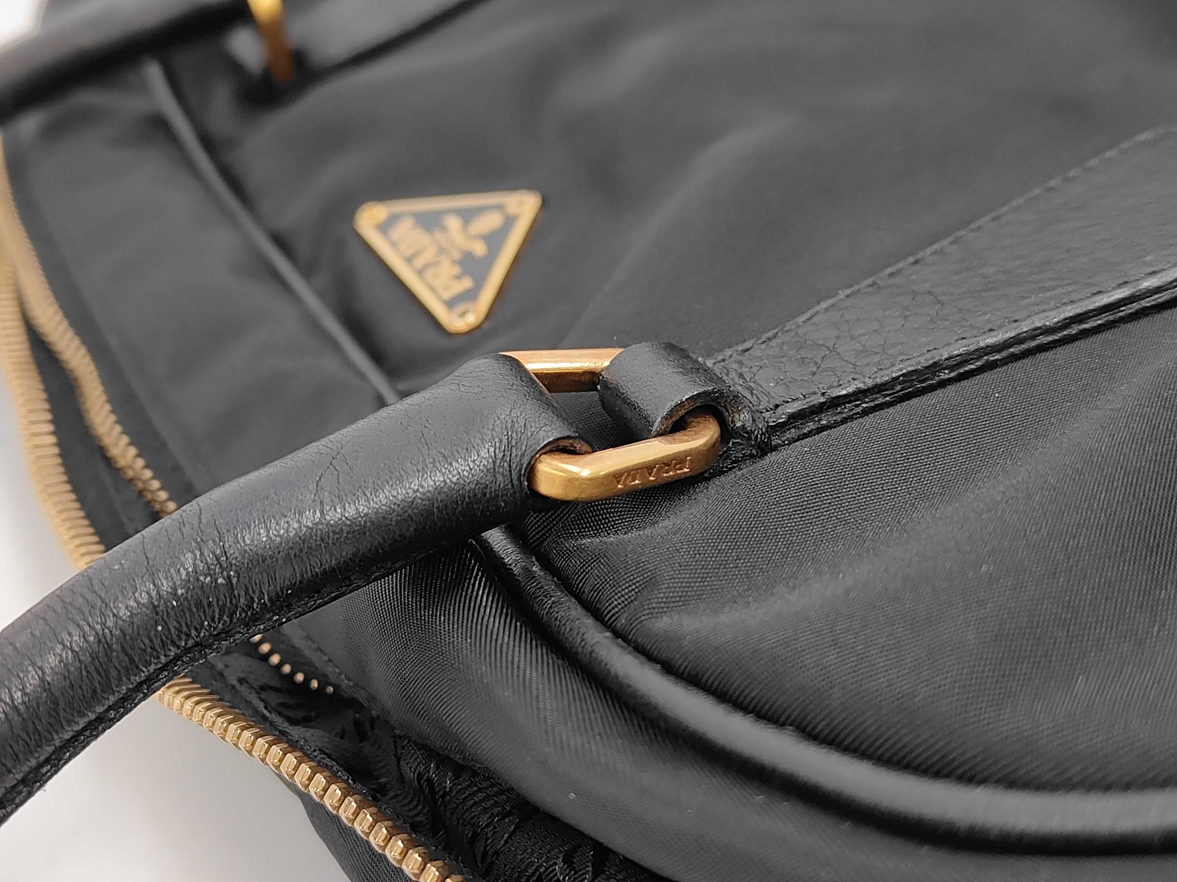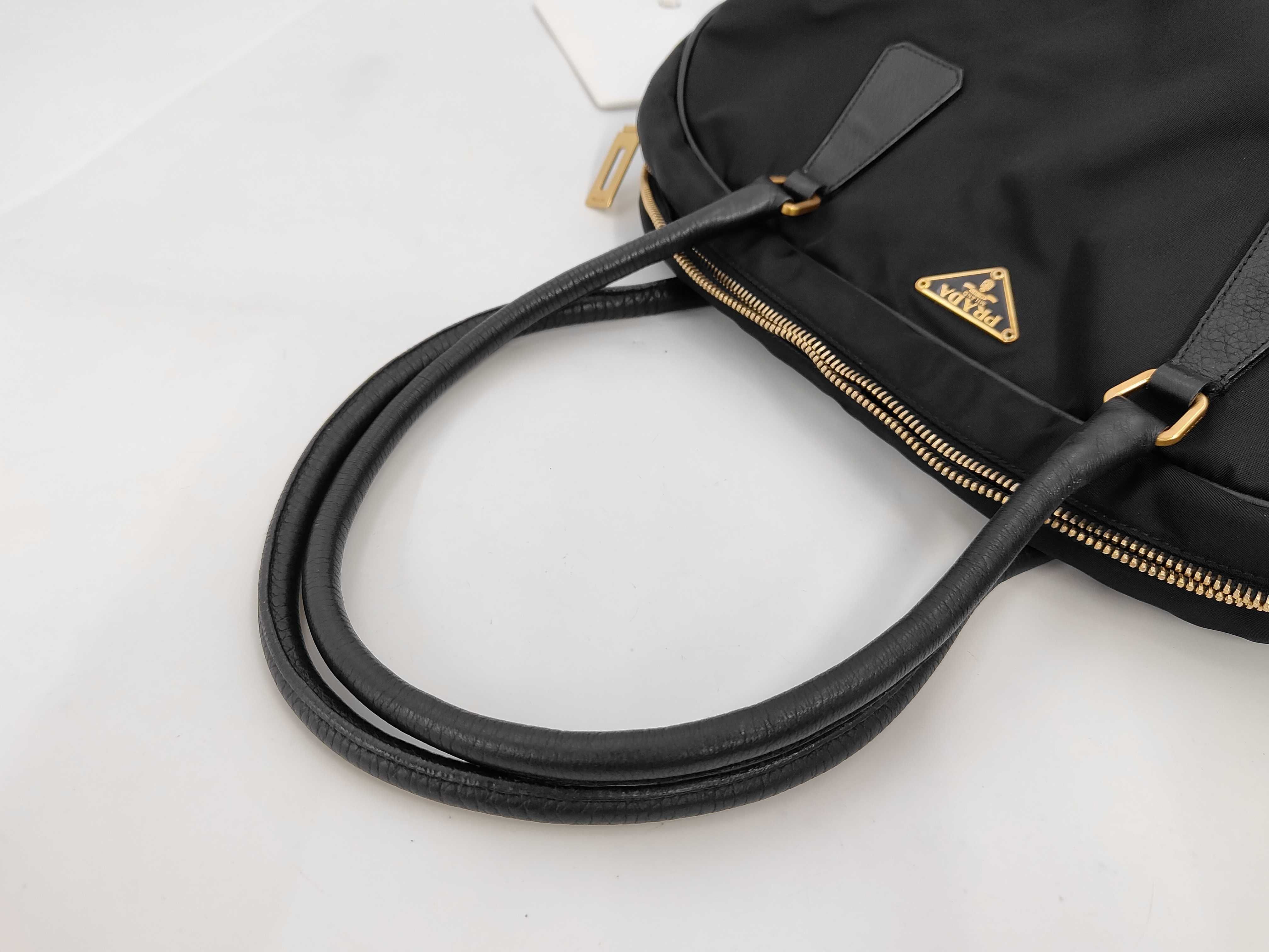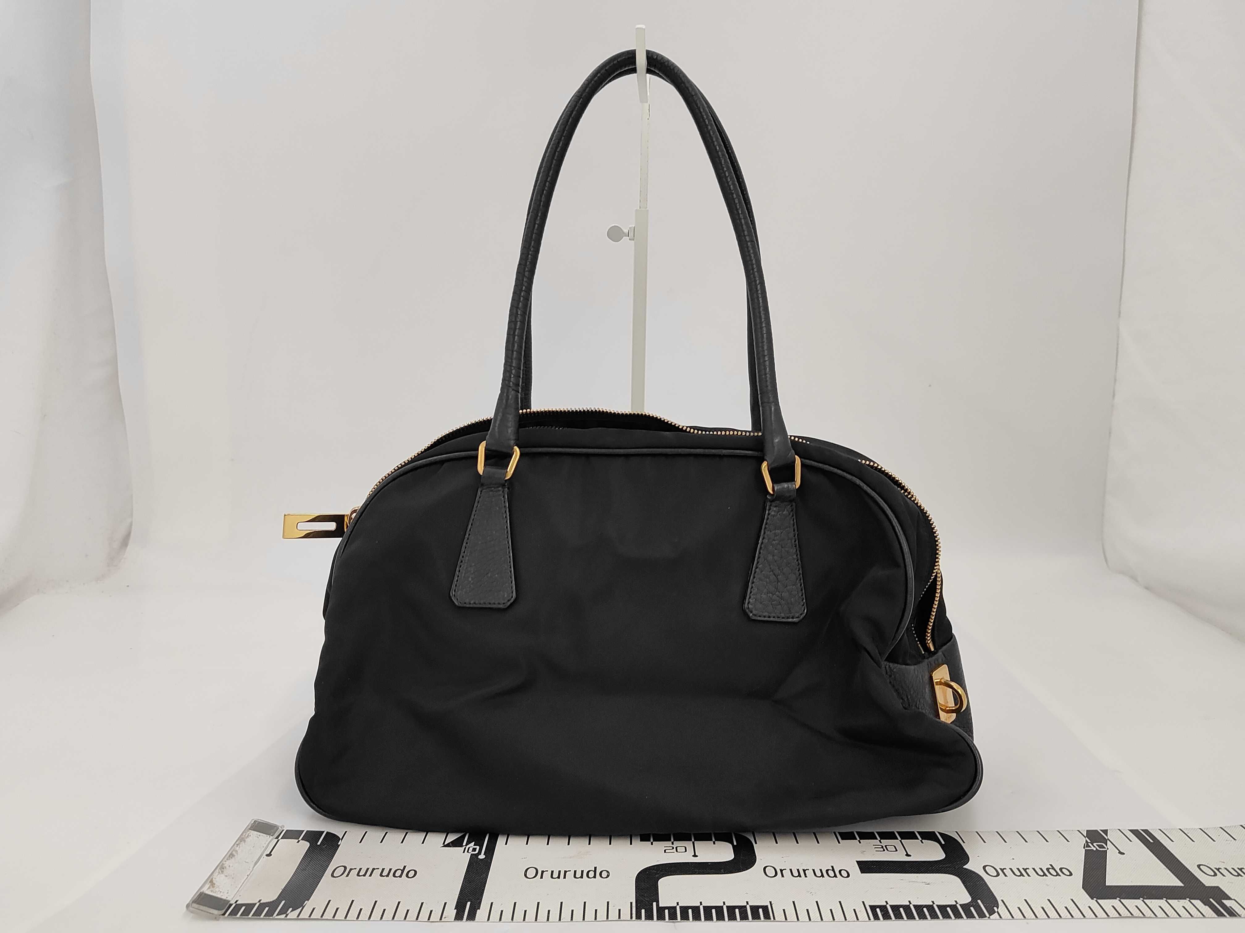 (11935_0106)PRADA プラダ ハンドバッグ ボーリングバッグ ナイロン レザー 三角ロゴ バッグ