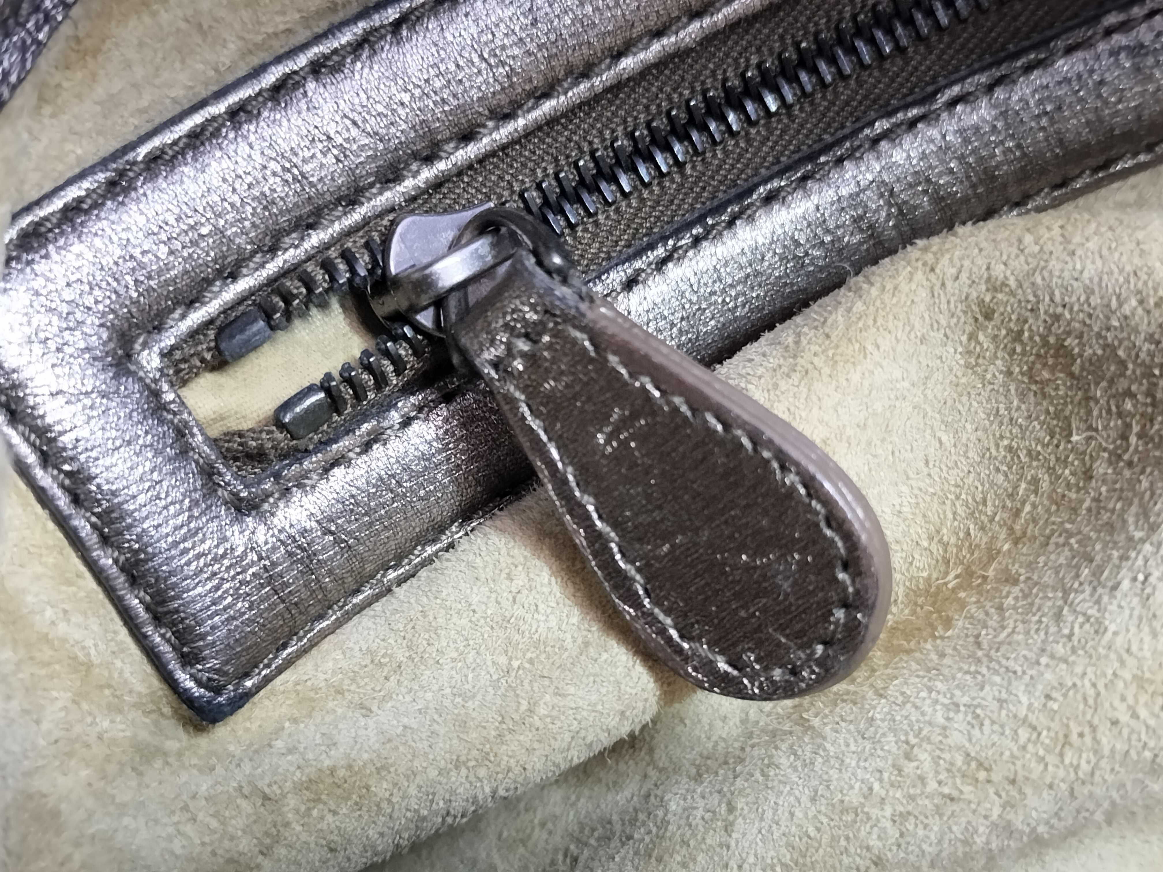 全体擦れ(中) 角擦れ(中) 持ち手ヒビ(小) 付け根伸び切れ(小) 金具キズ(小) 内側汚れ(小) 全体黒ずみ(小) 持ち手黒ずみ(大)【付属品