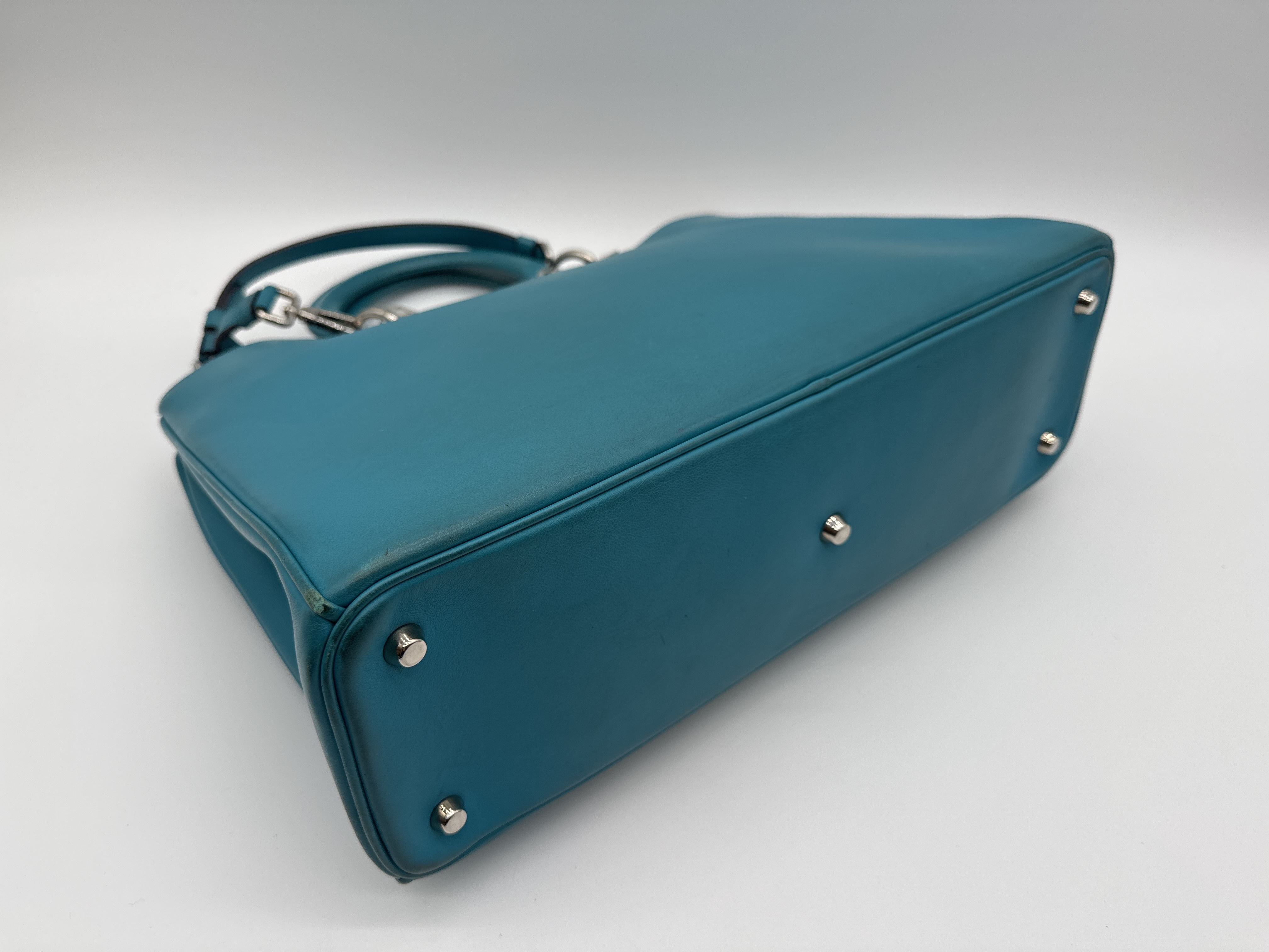 全体ヤケシミ汚れ(中) 角縁擦れ黒ずみ(中) 金具くすみ擦れ(中) 持ち手黒ずみ(中) 内側擦れ傷汚れ(中)【付属品
