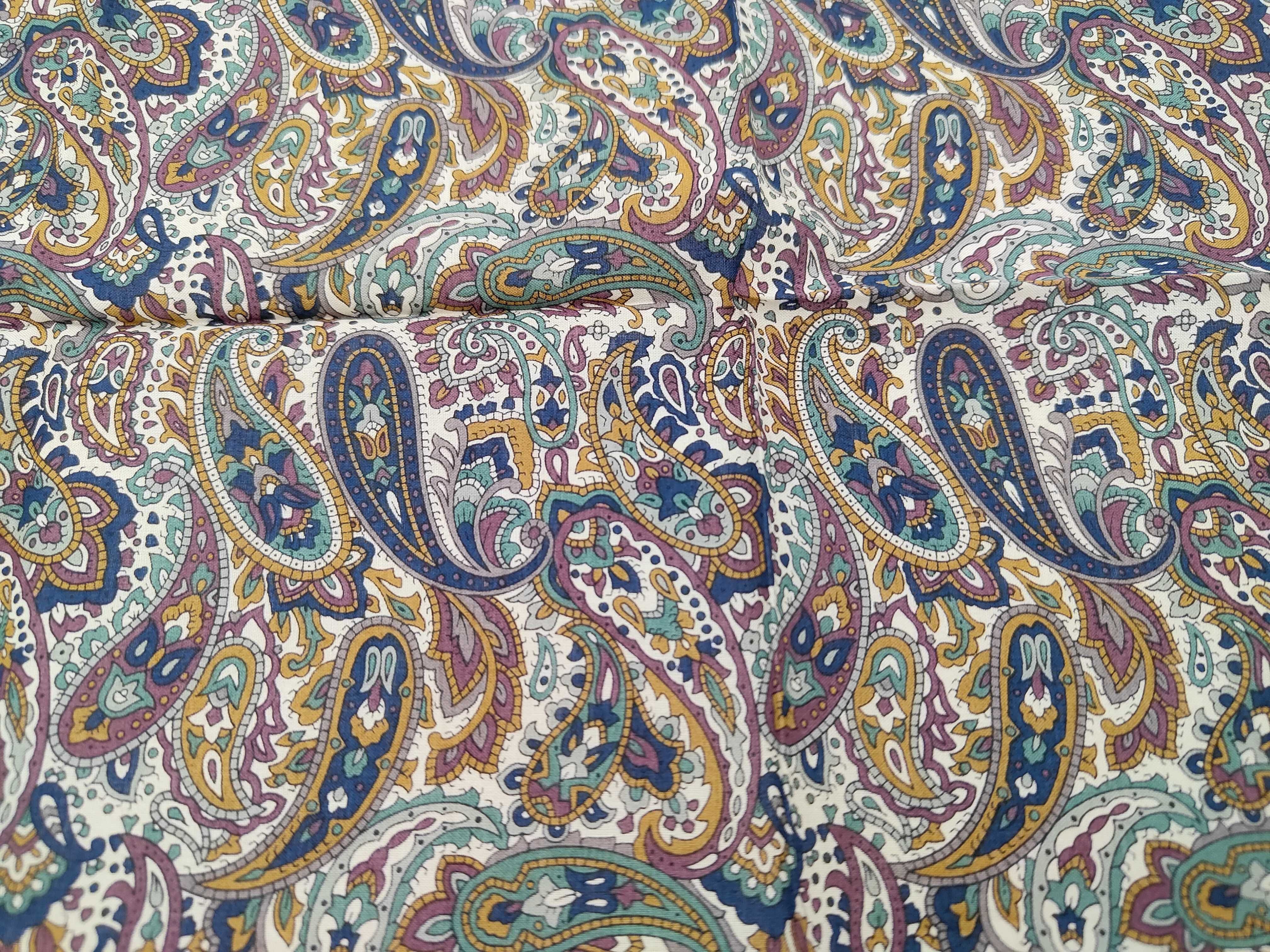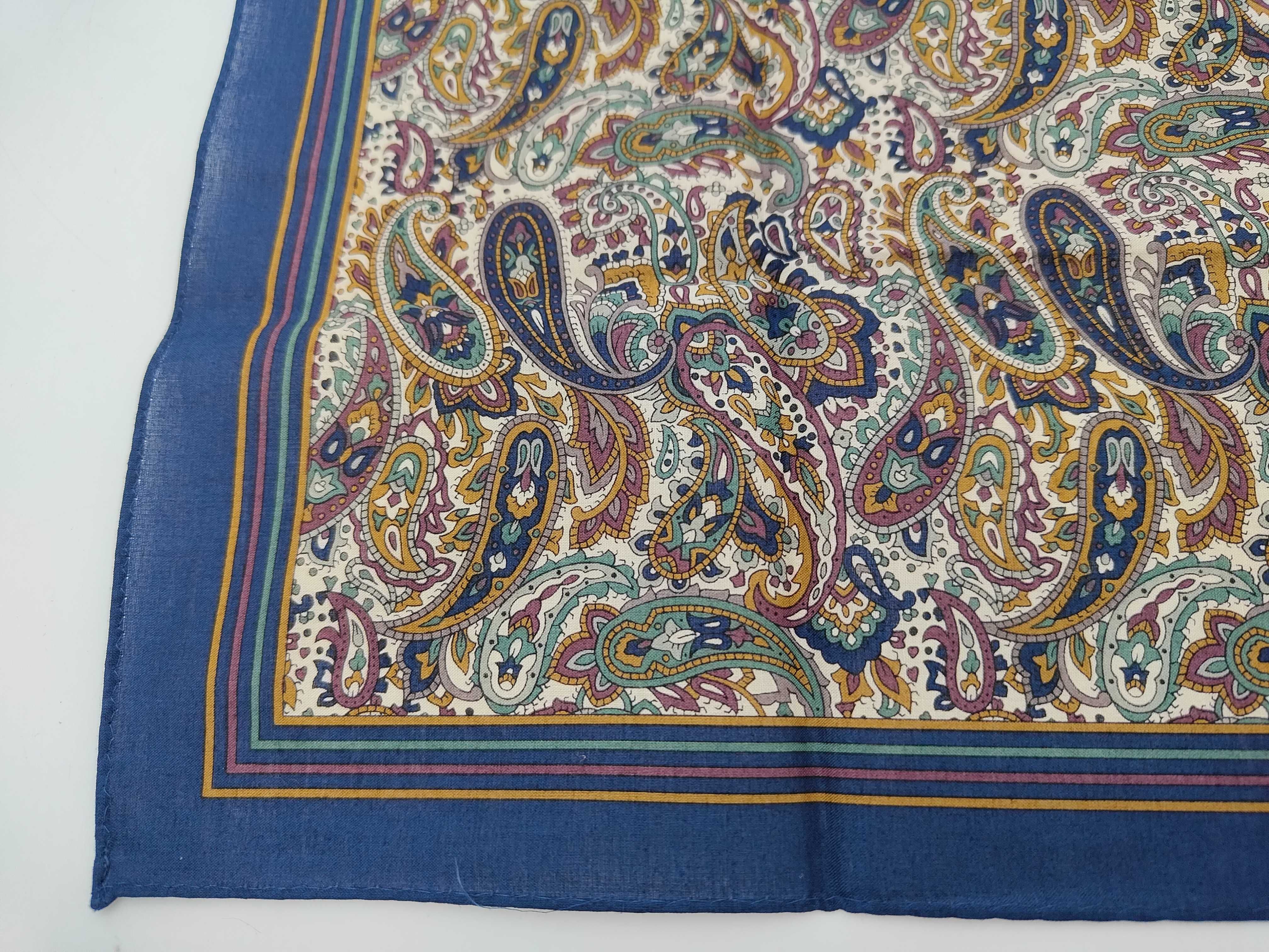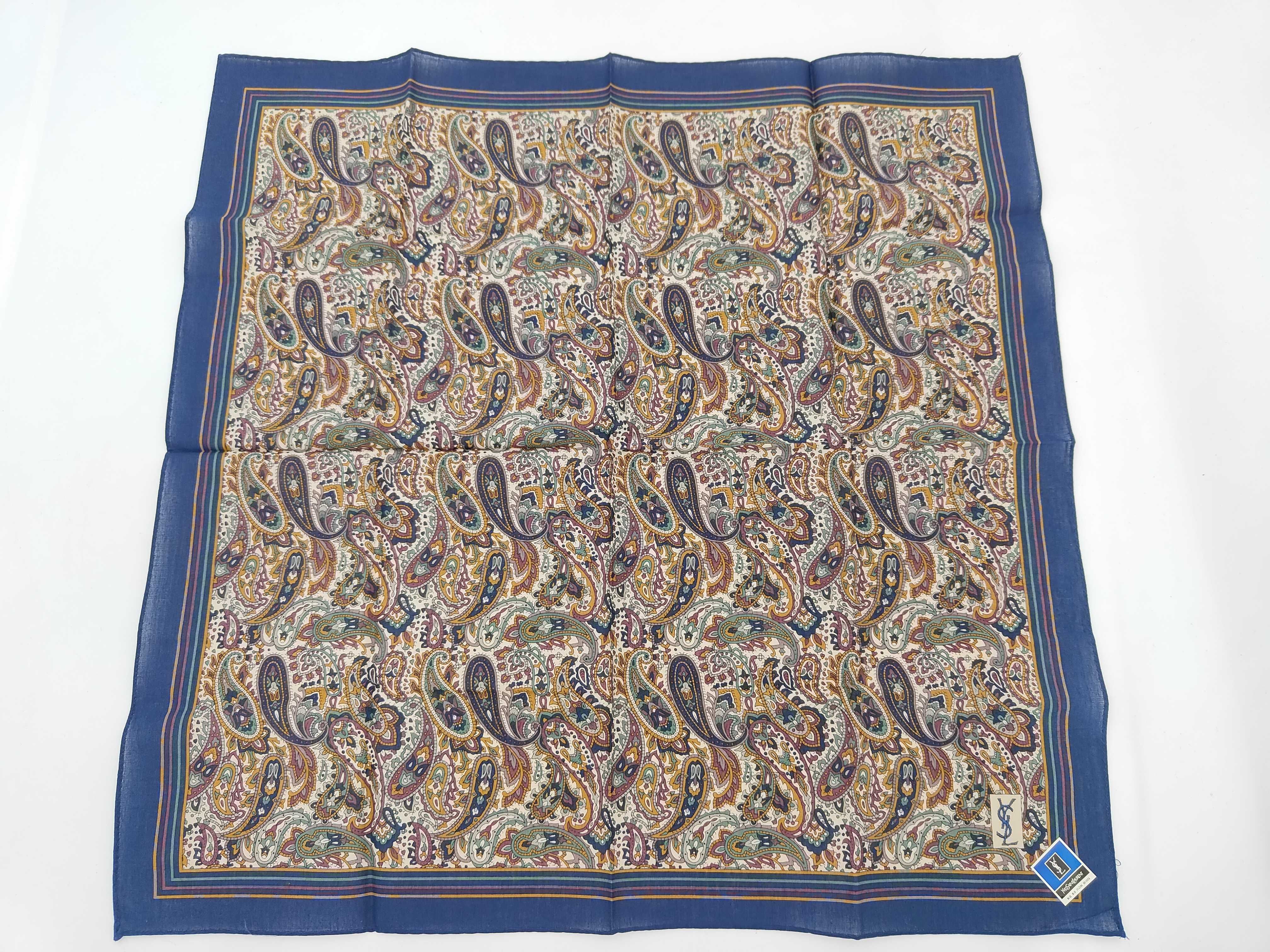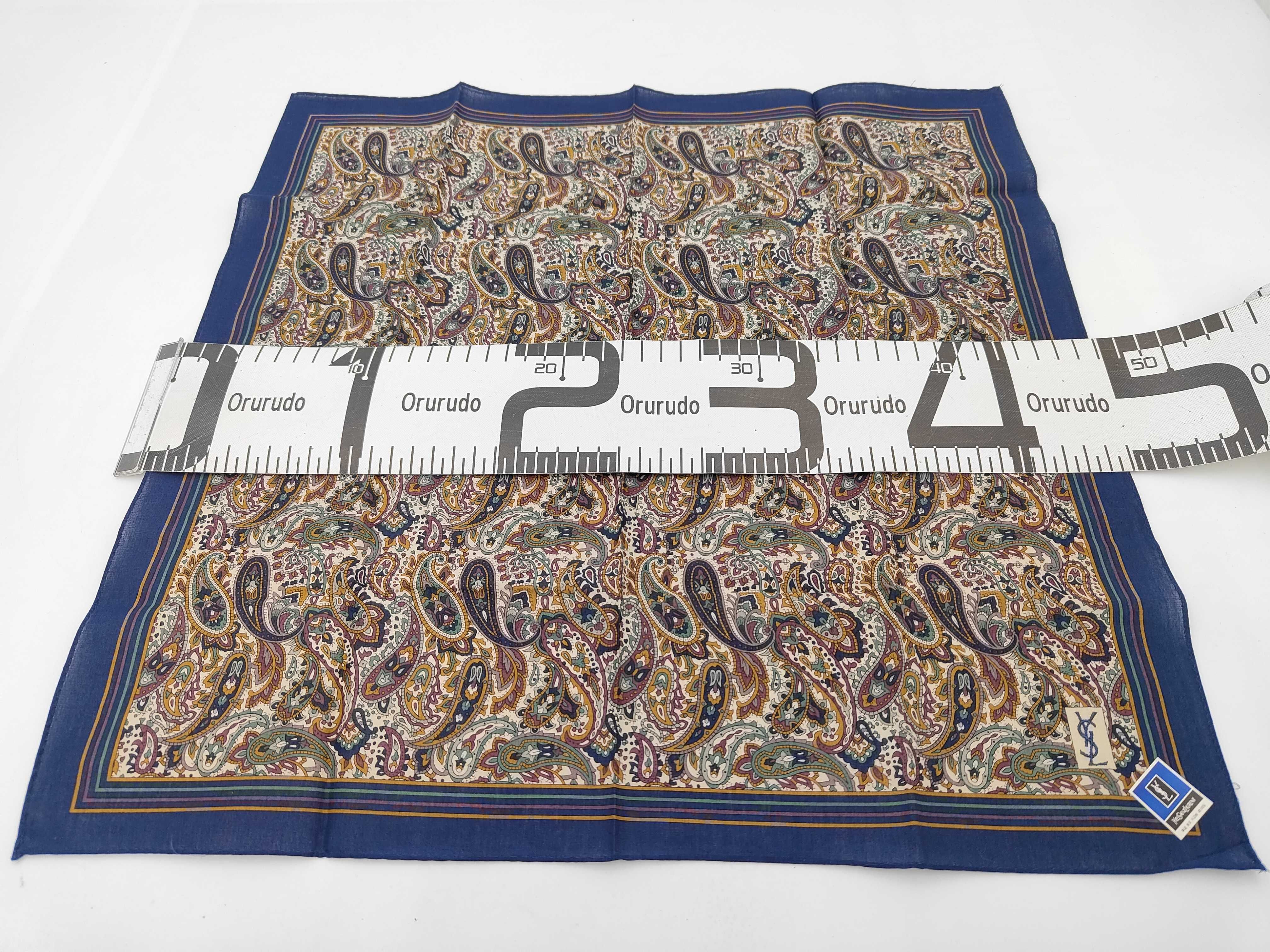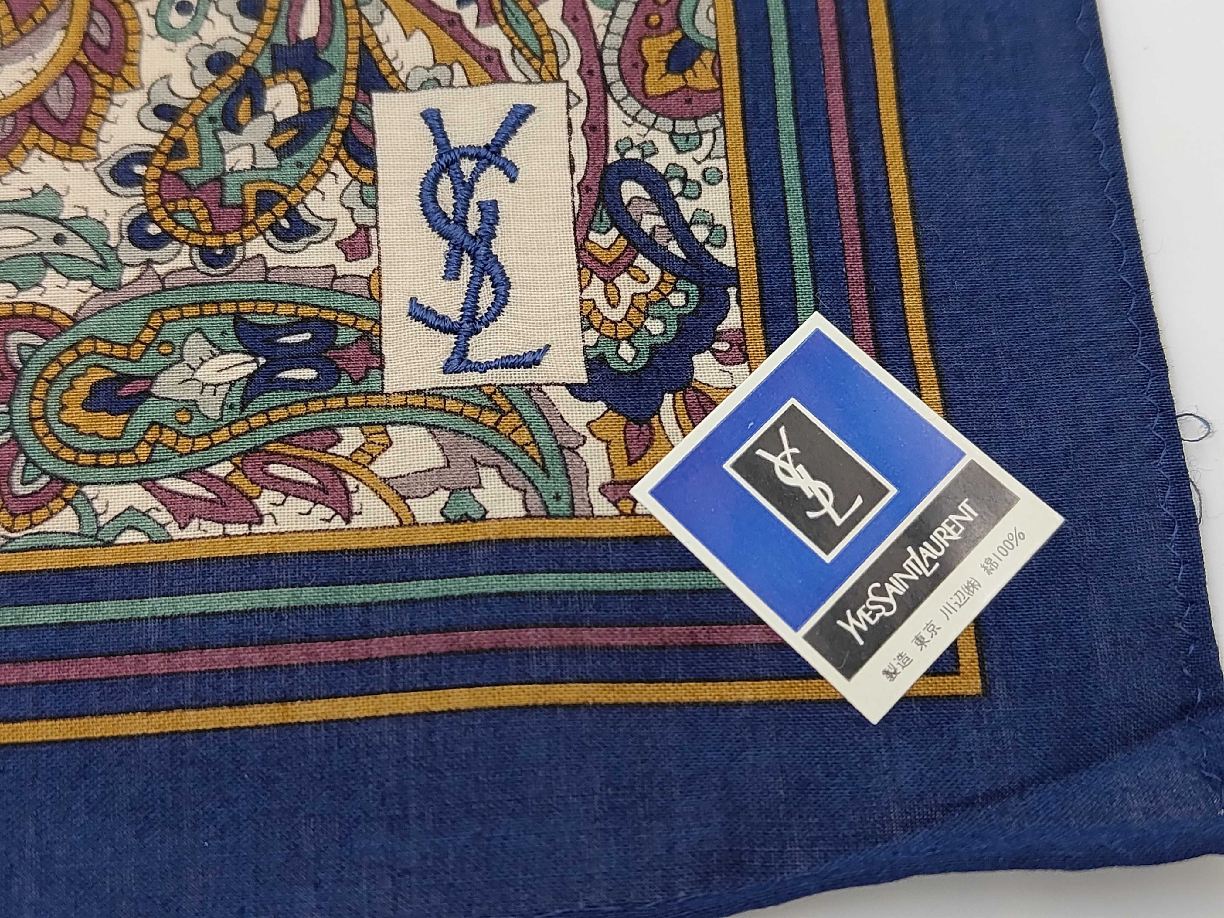 (11936_0241)SAINT LAURENT イヴサンローラン 新品シール付 ハンカチ スカーフ YSLロゴ ネイビー ペイズリー その他小物