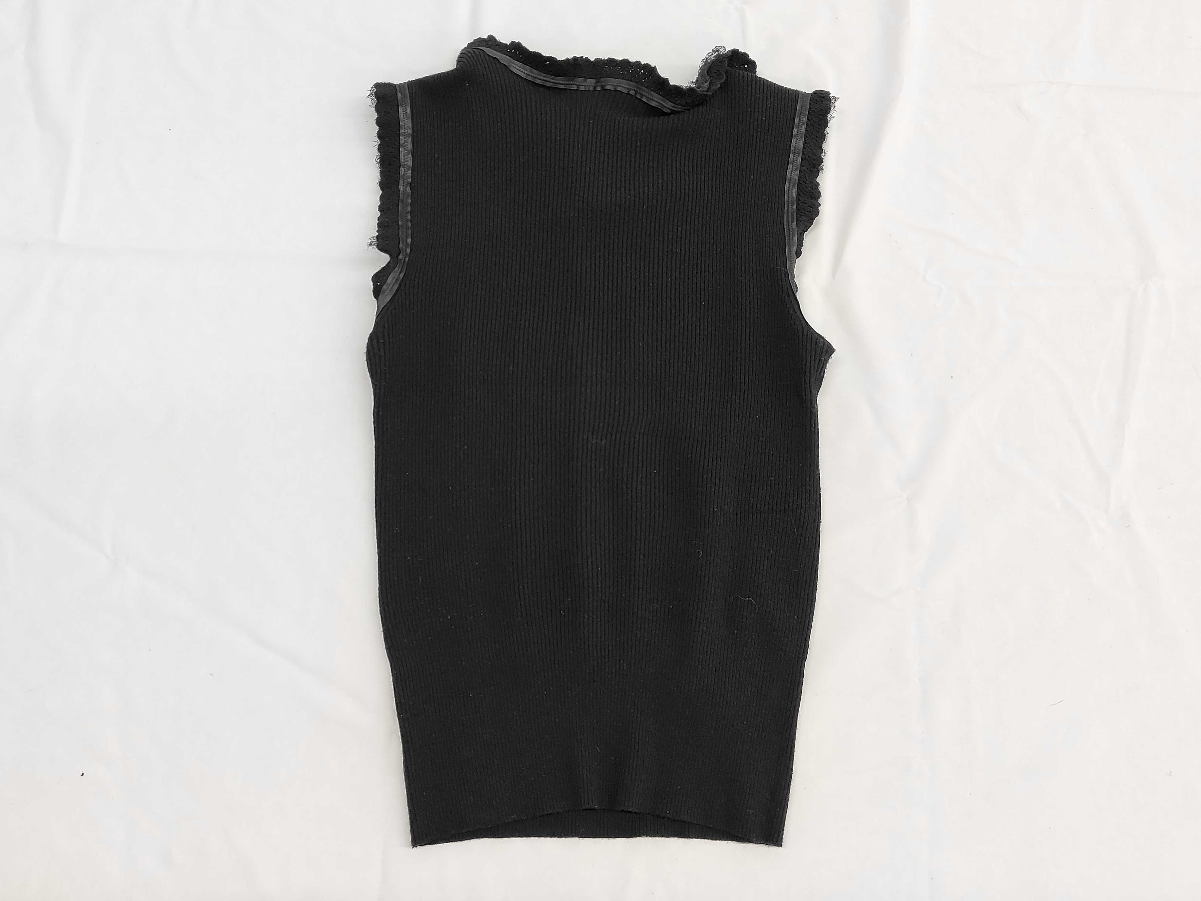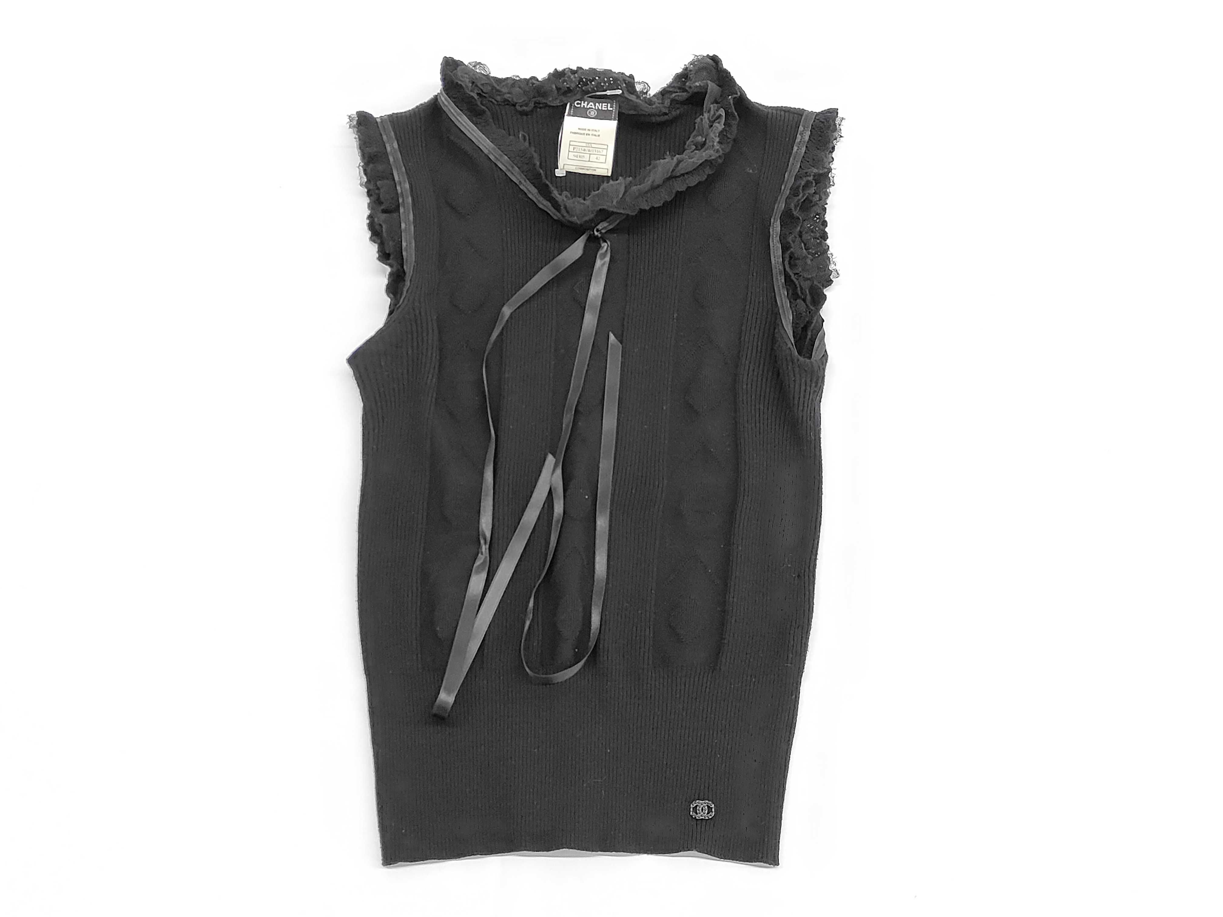 (11937_0085)CHANEL シャネル 03A ココマーク レース リボン切り替え ノースリーブ ニットトップス サイズ42 トップス