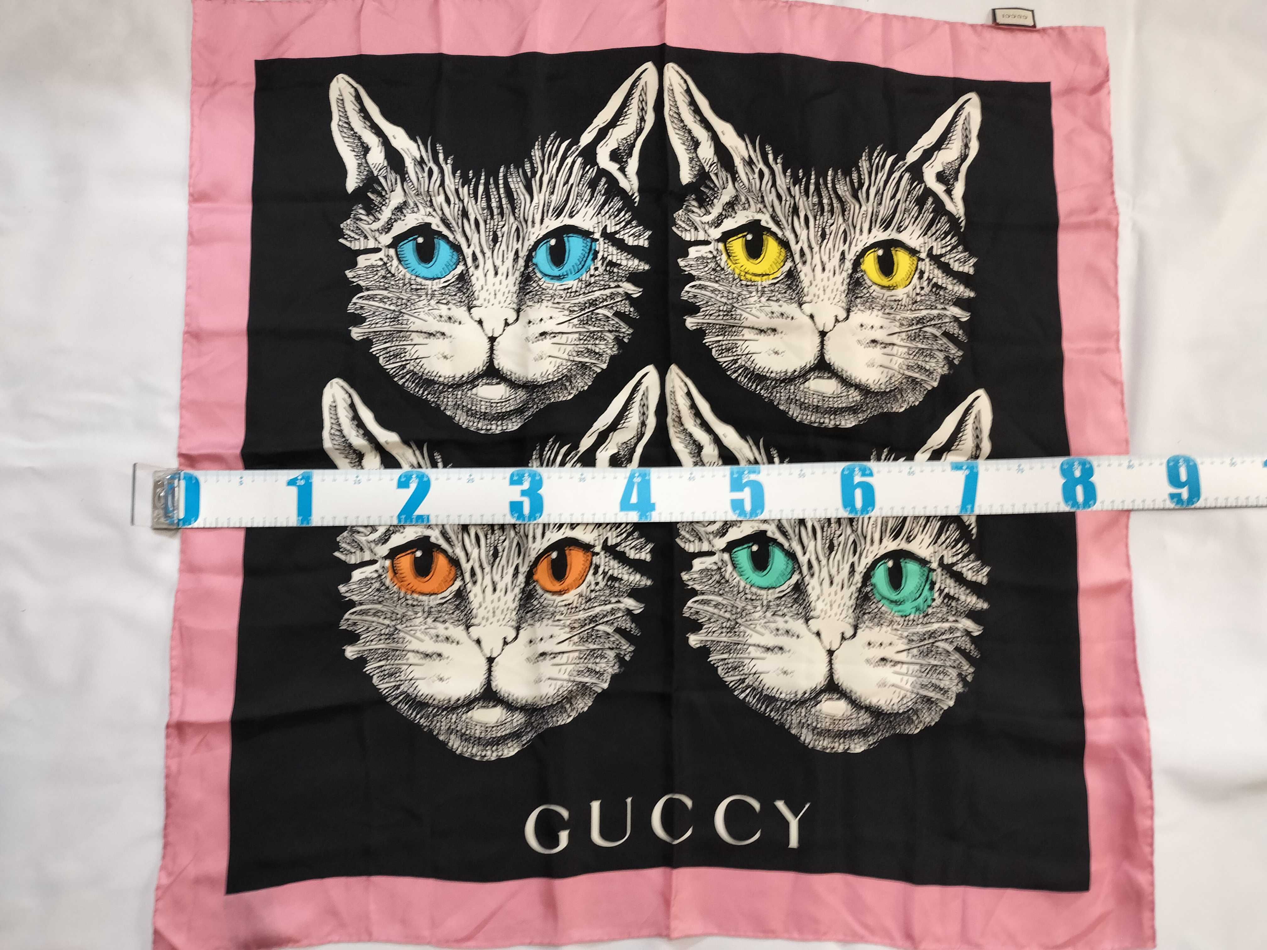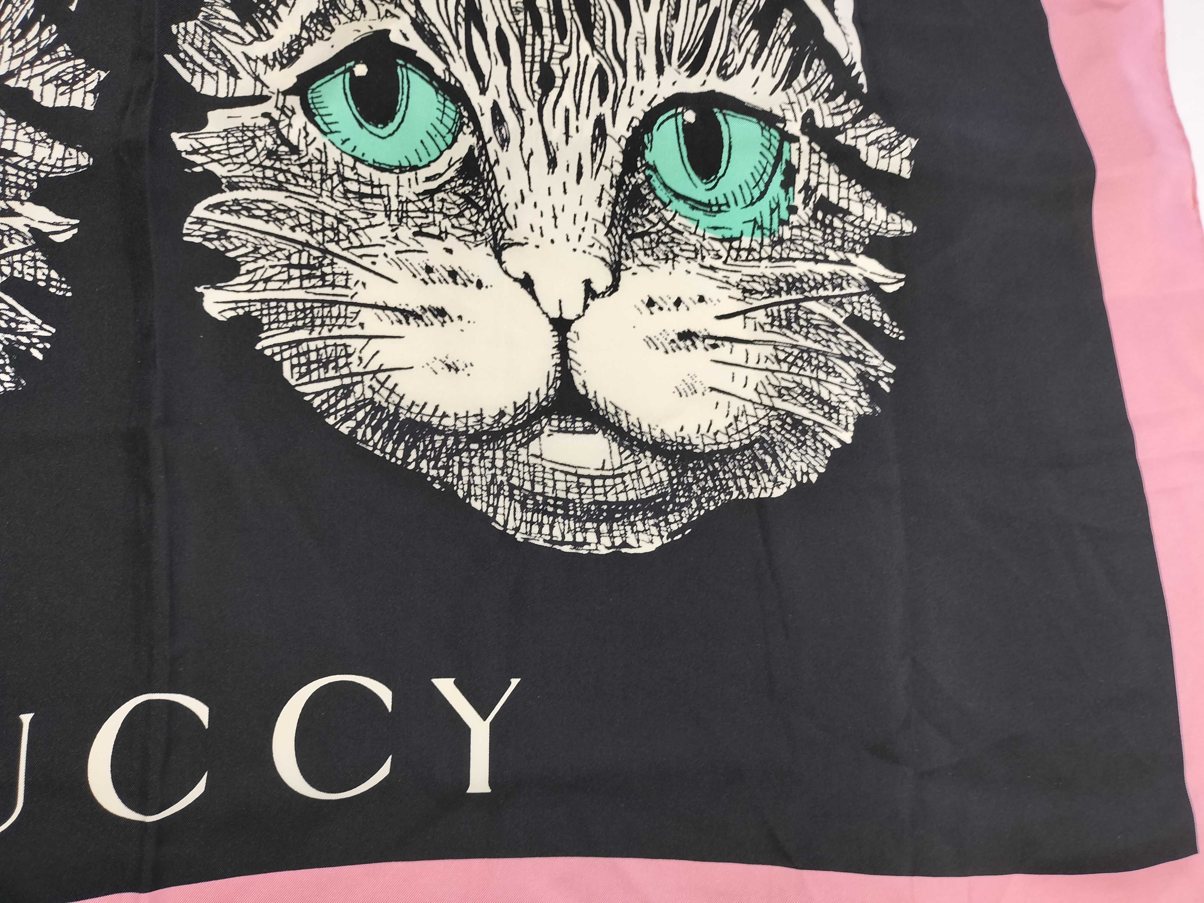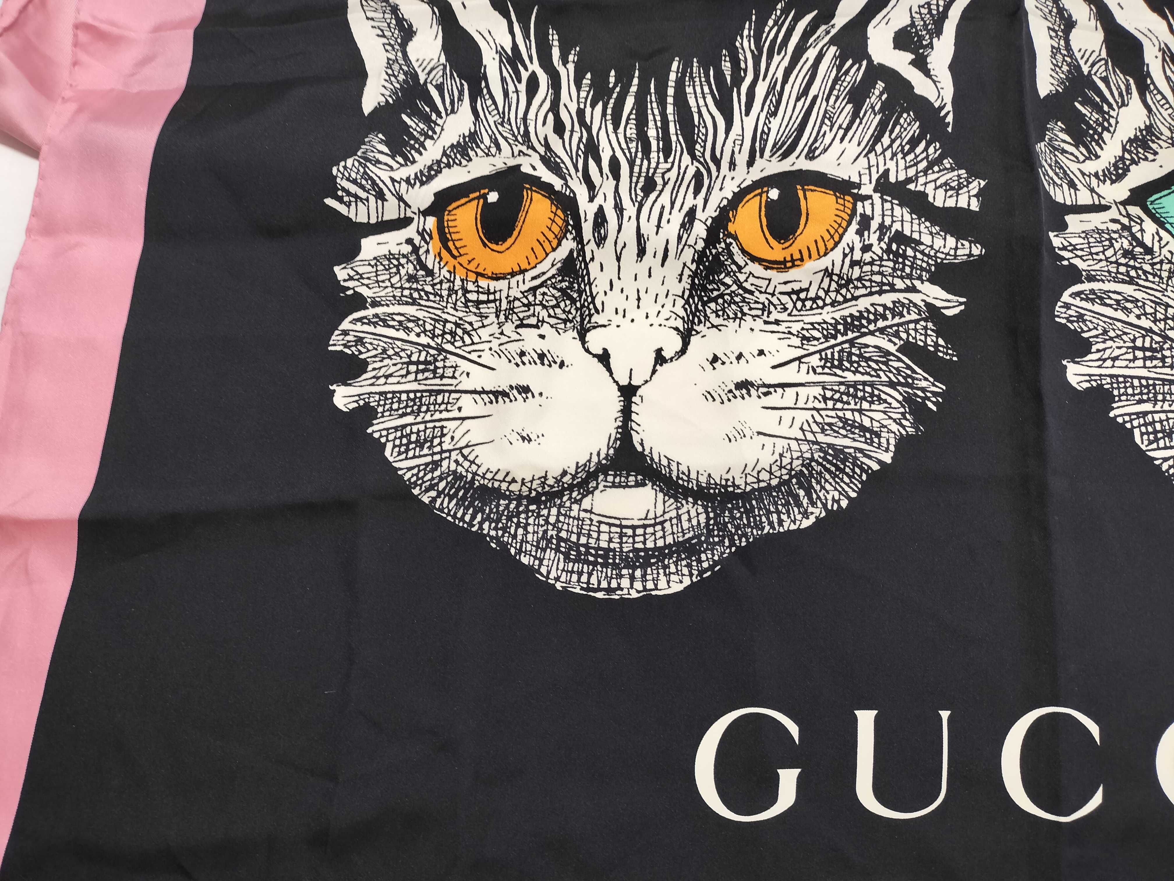 (11937_0160)GUCCI グッチ スカーフ シルク キャット 猫 スカーフ