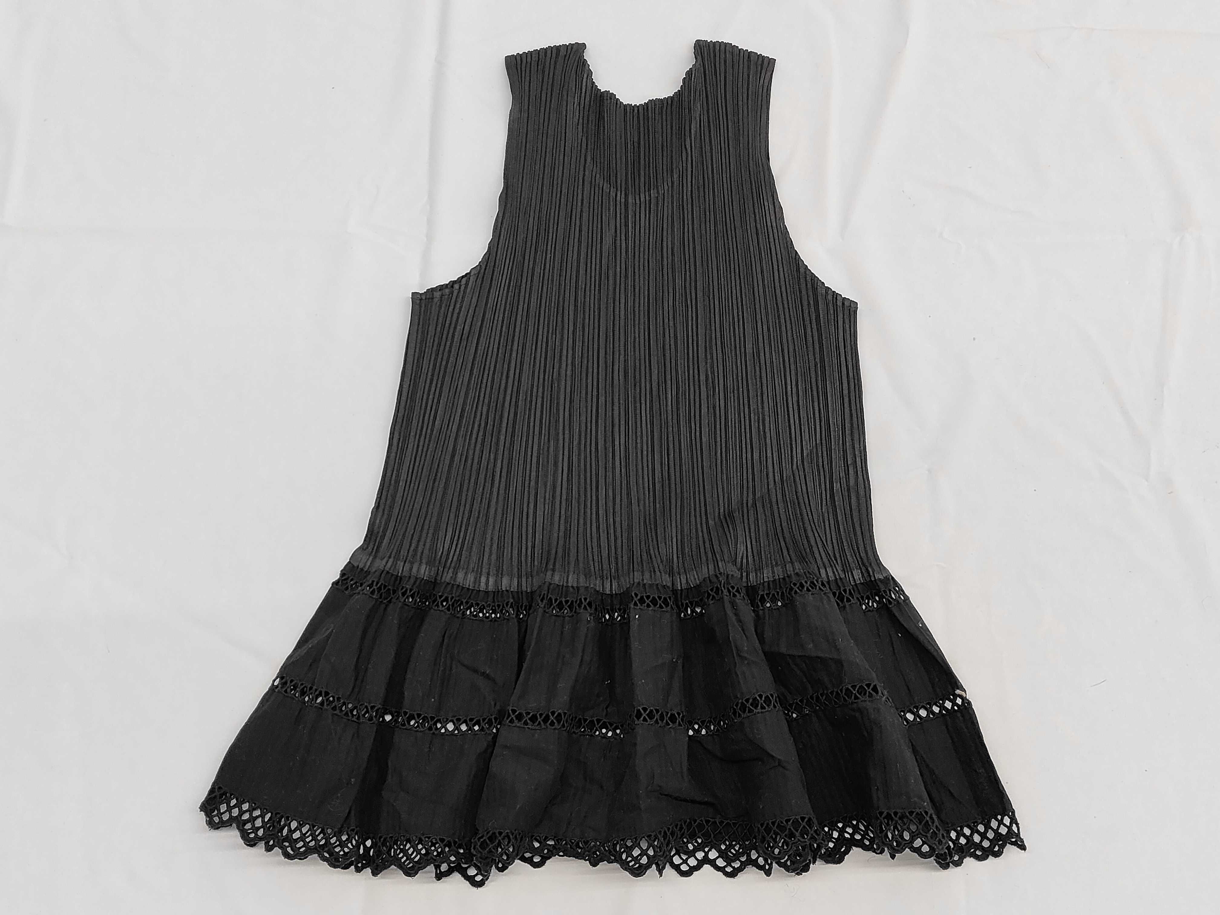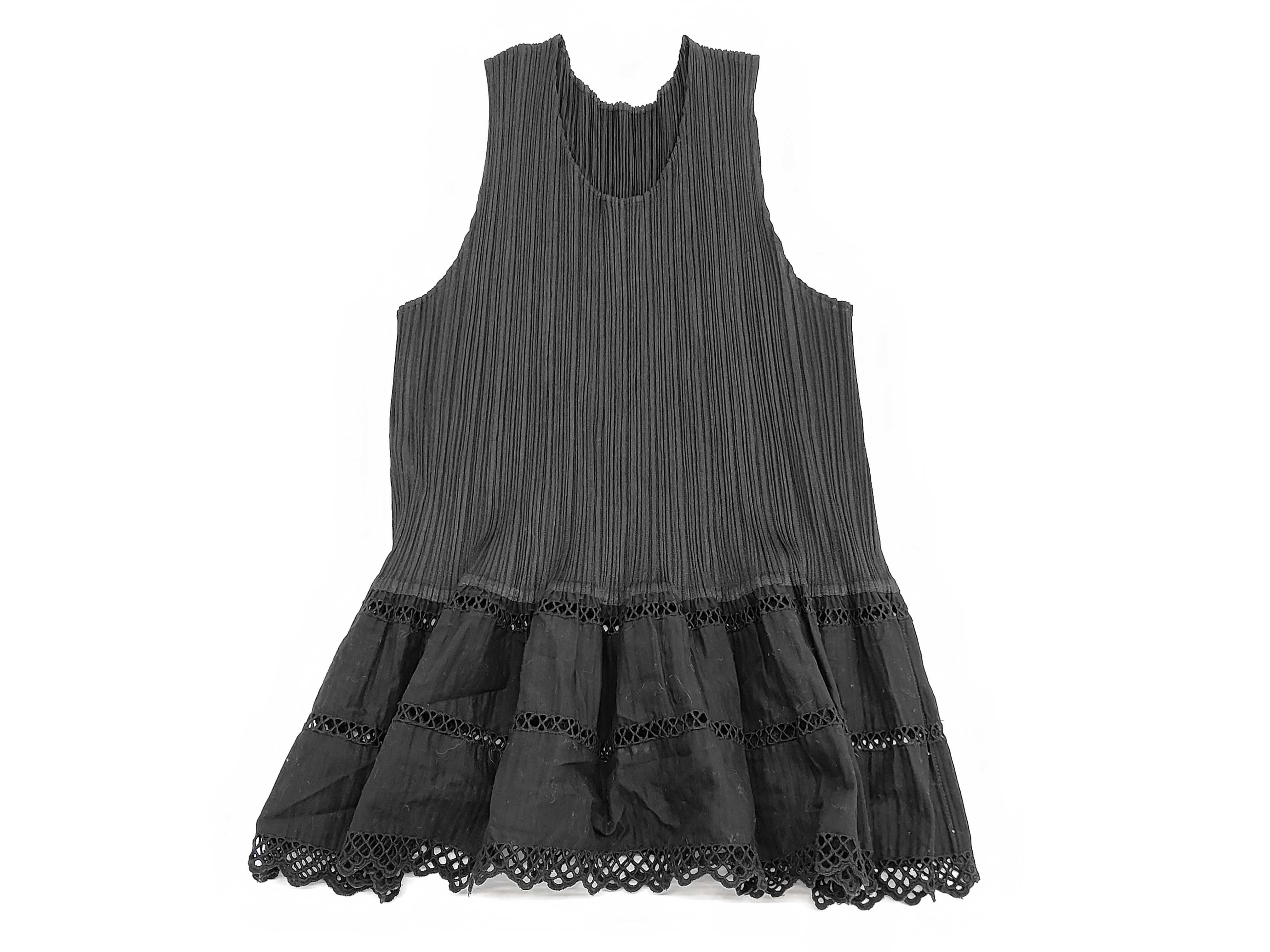 (11937_0169)ISSEY MIYAKE プリーツプリーズ イッセイミヤケ フリル レース ノースリーブ トップス PP31-JK881 ブラック サイズ4 トップス