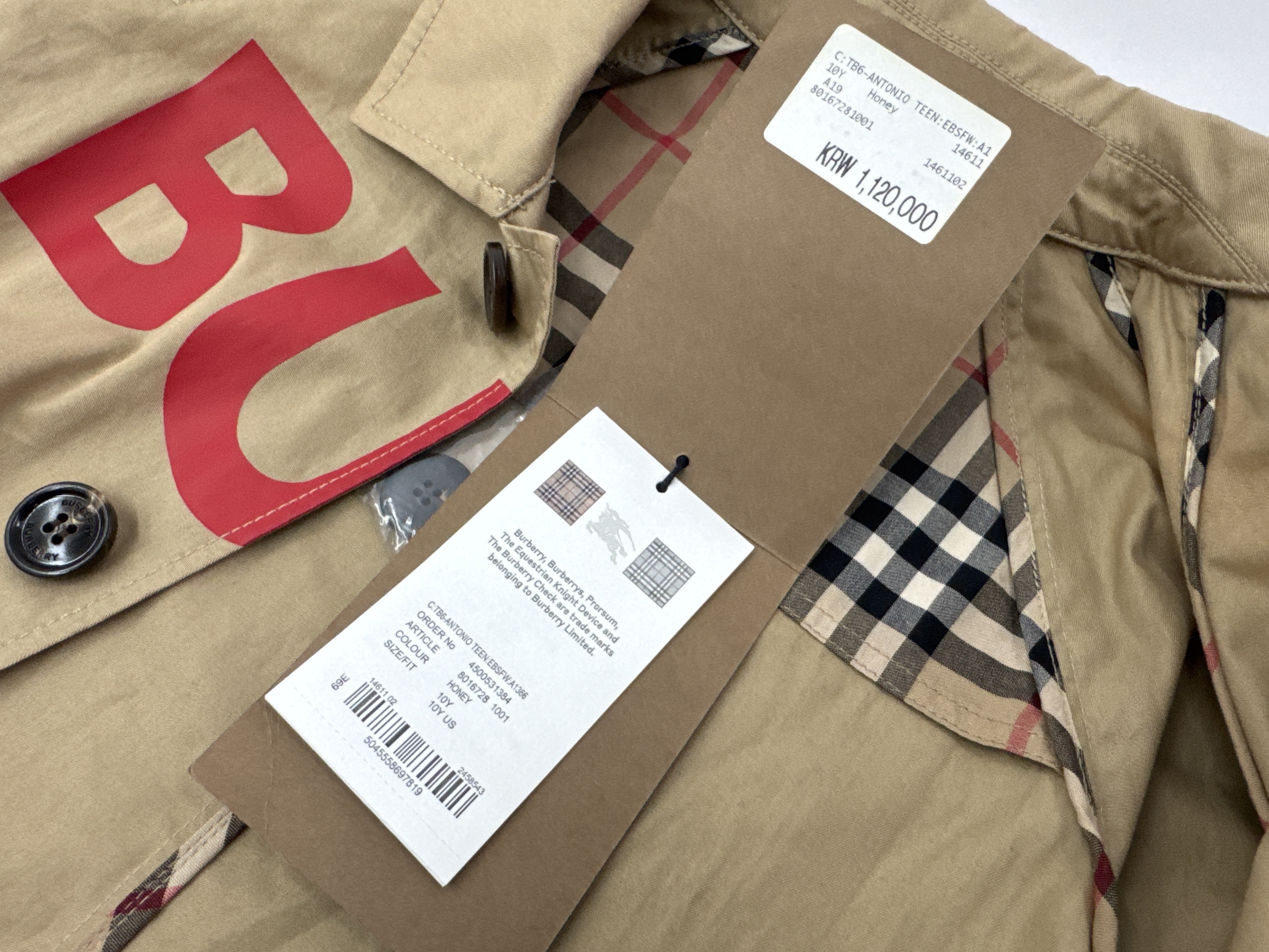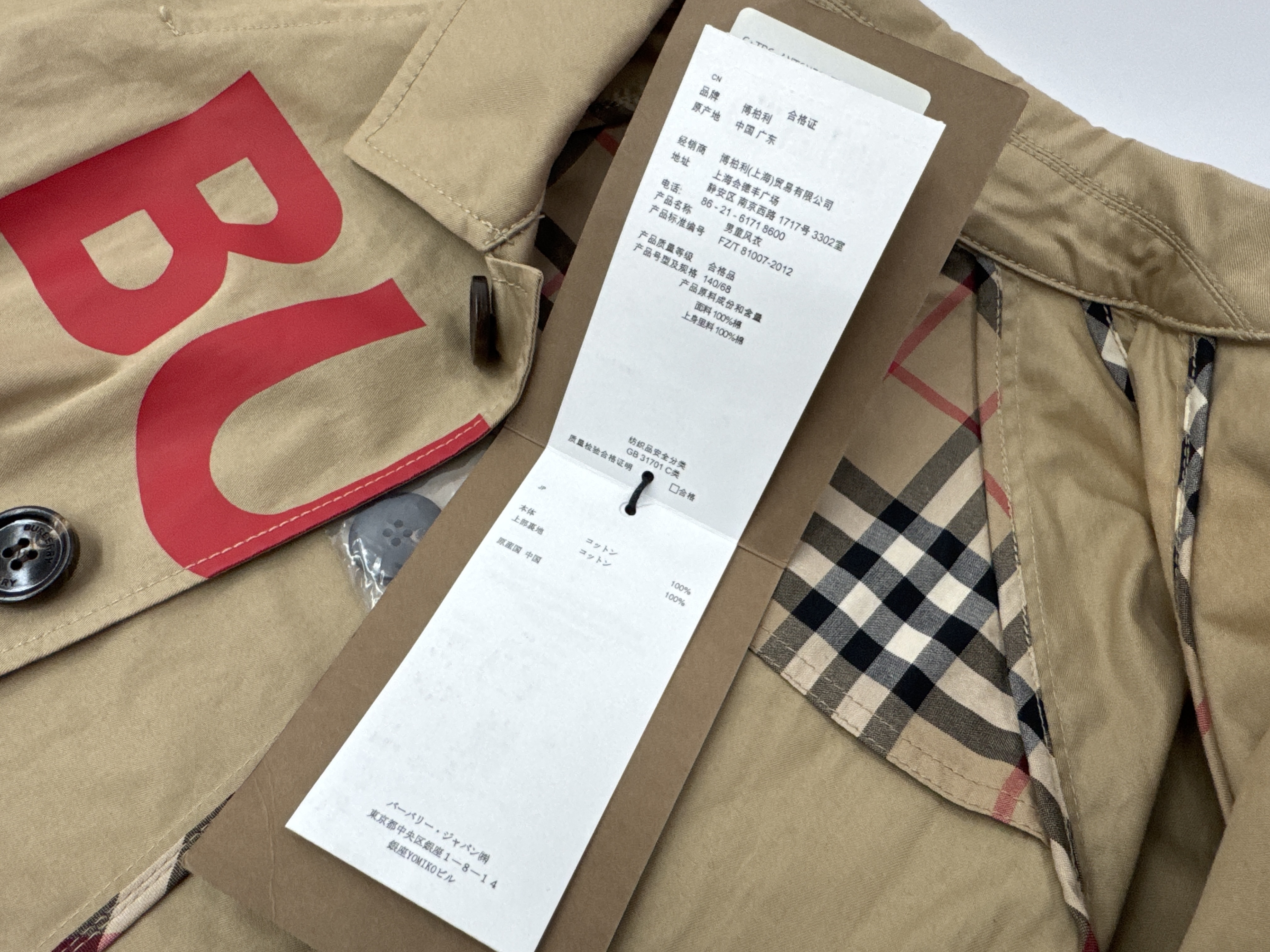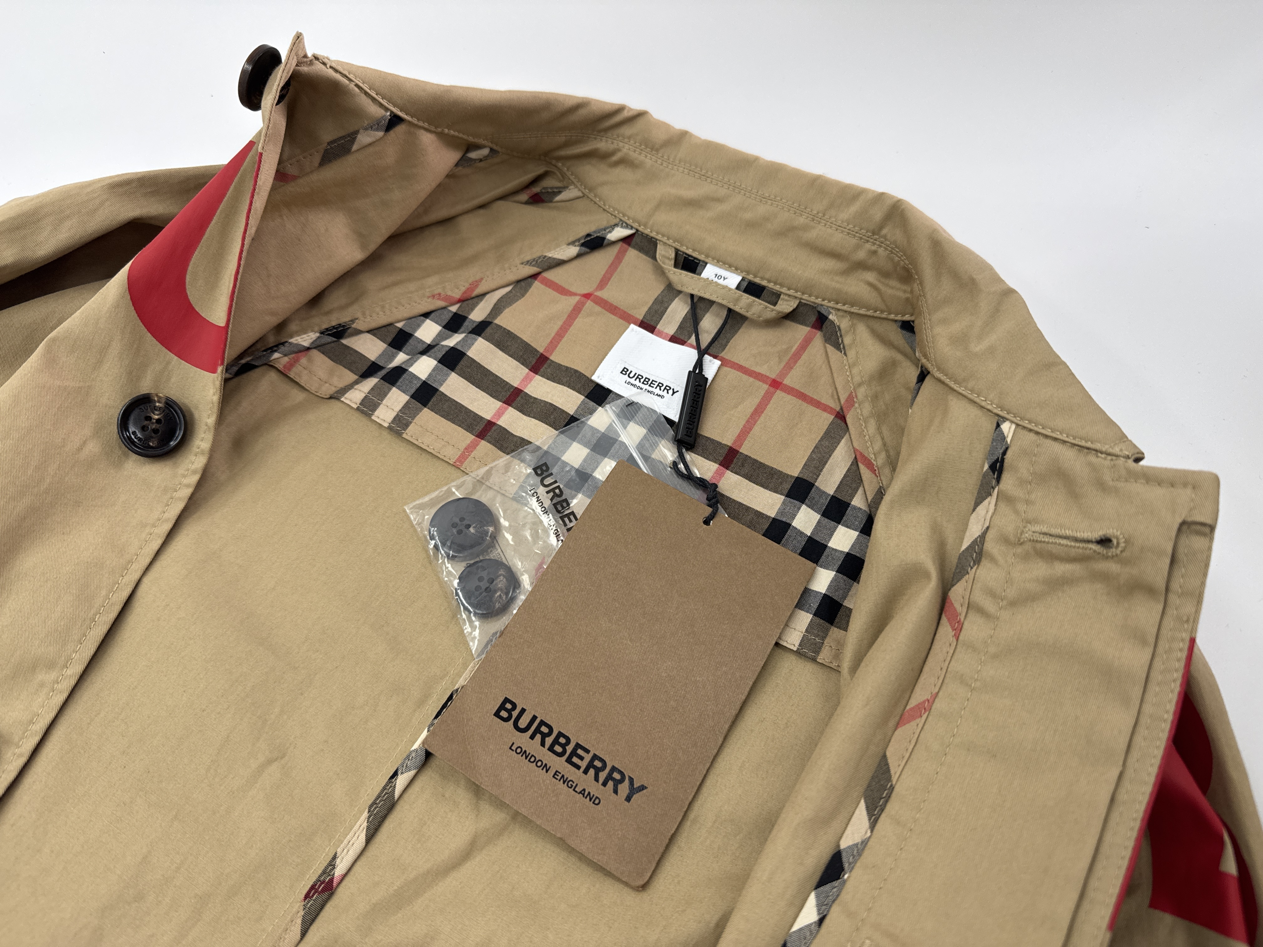 (11937_0199)BURBERRY バーバリー コート 未使用 サイズ:10Y 140cm タグ付 替えボタンあり