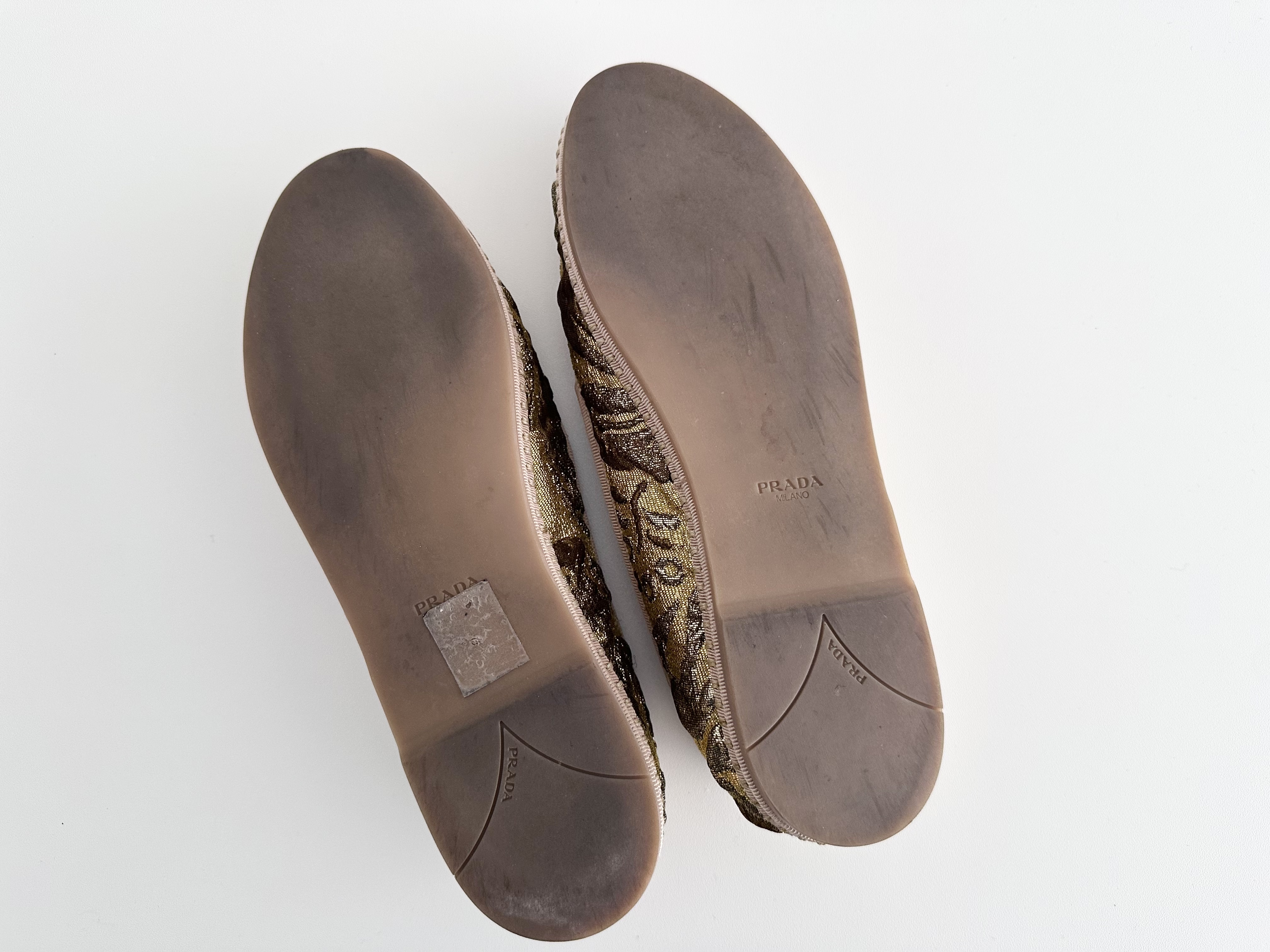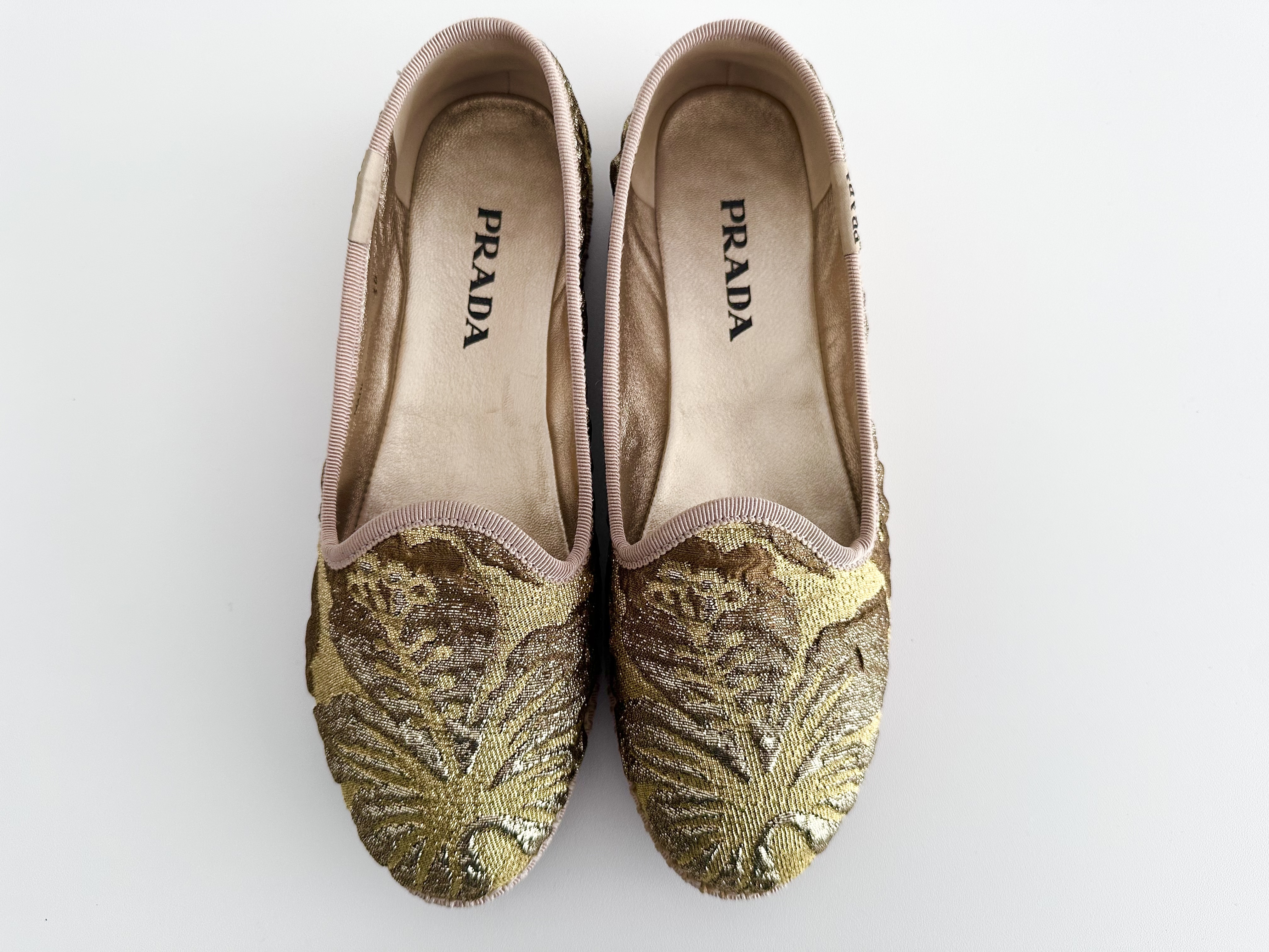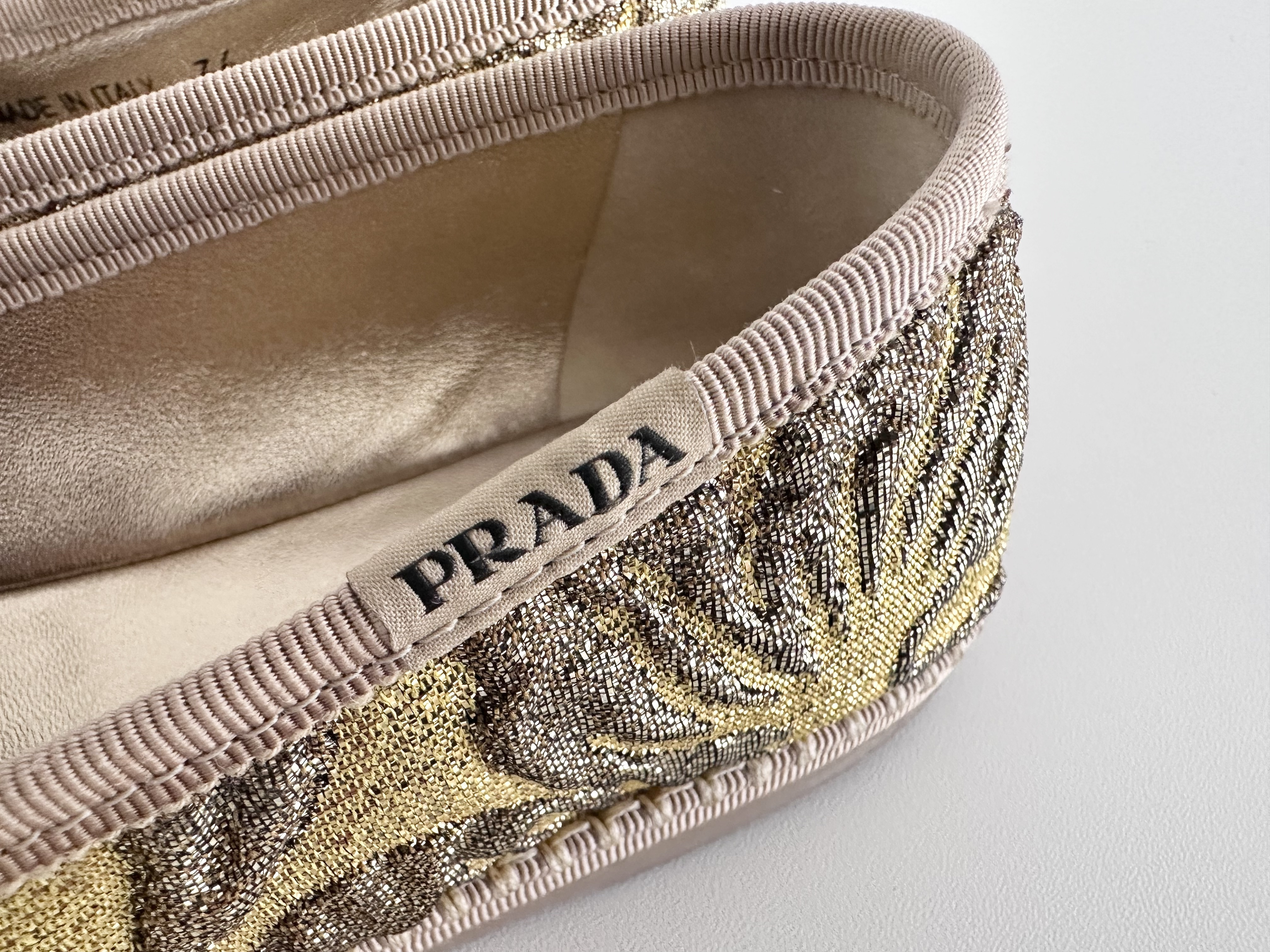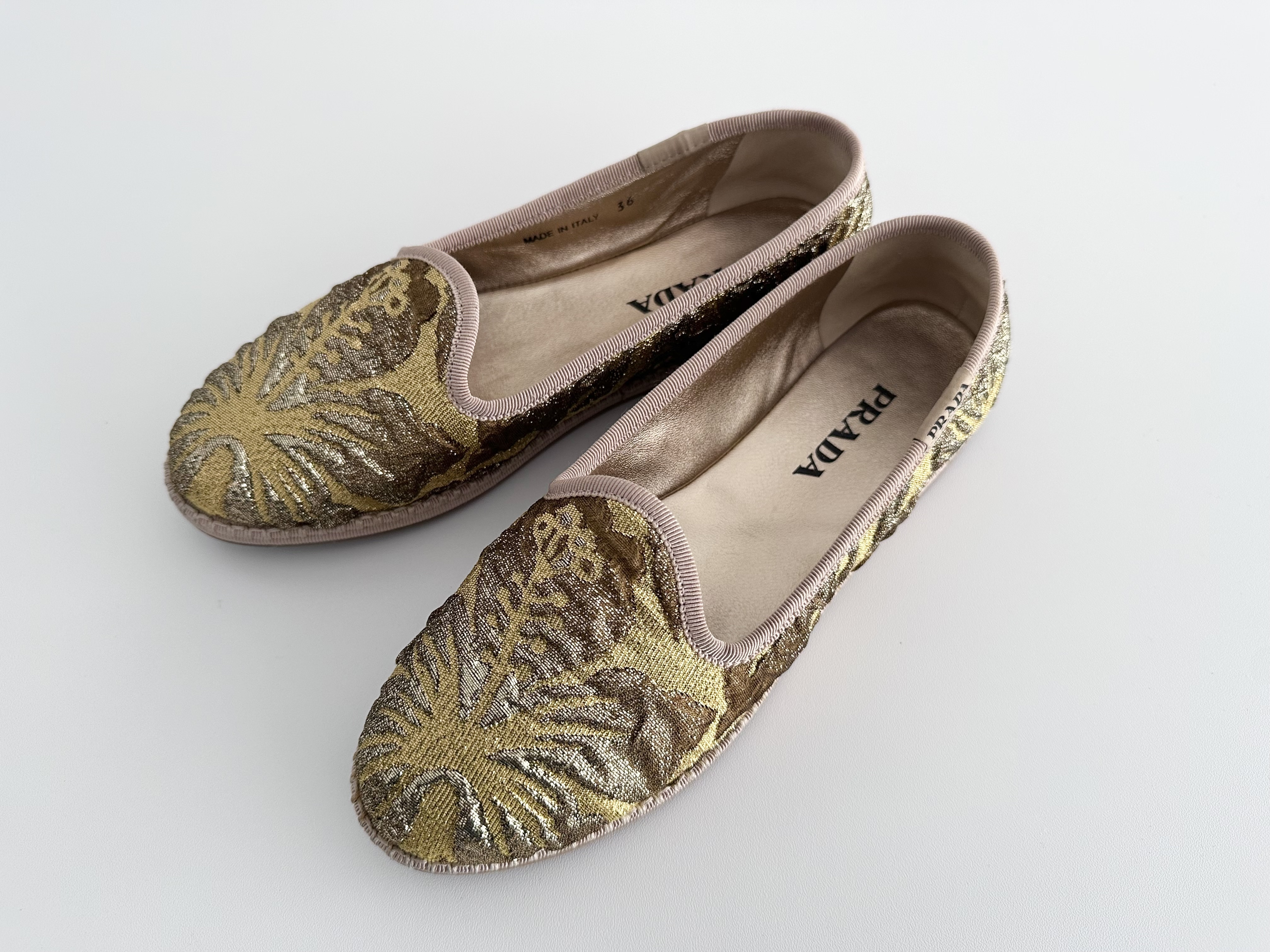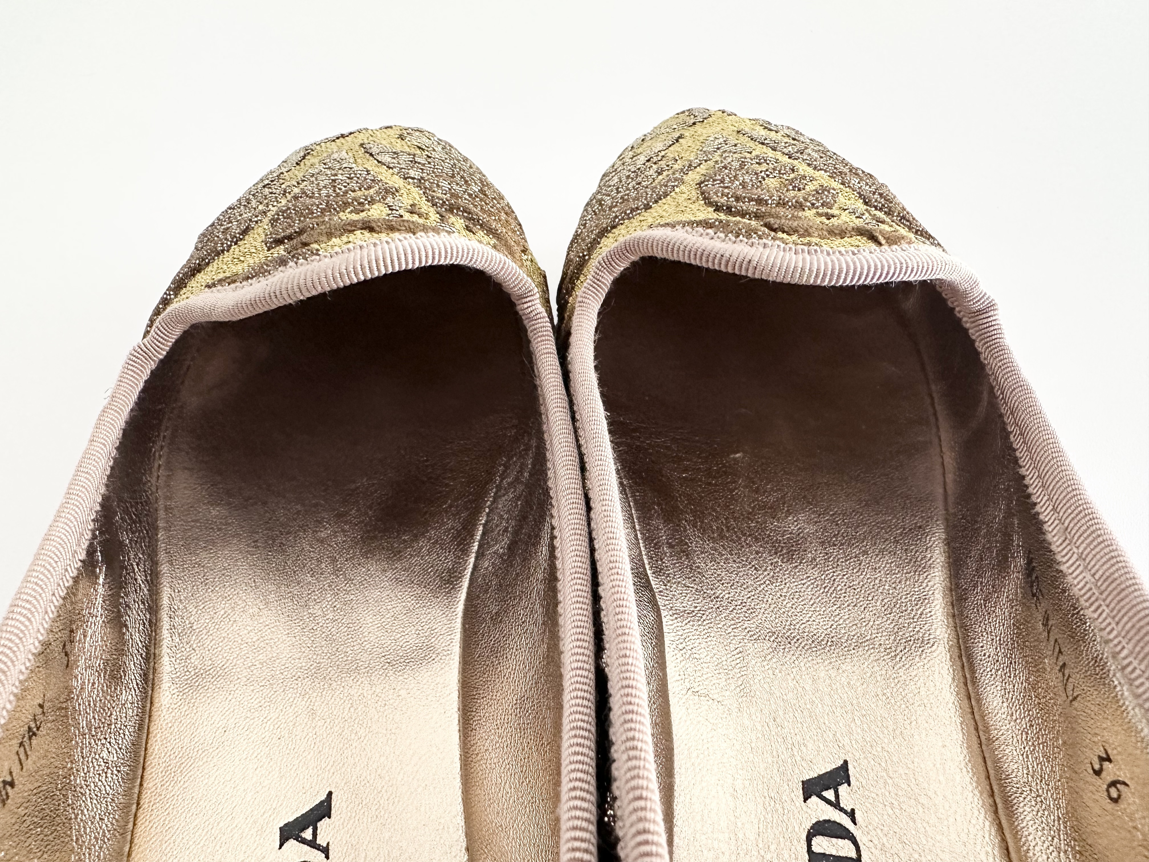 (11937_0230)PRADA PRADA プラダ ジャガードフラットシューズ ゴールド 36サイズ パンプス