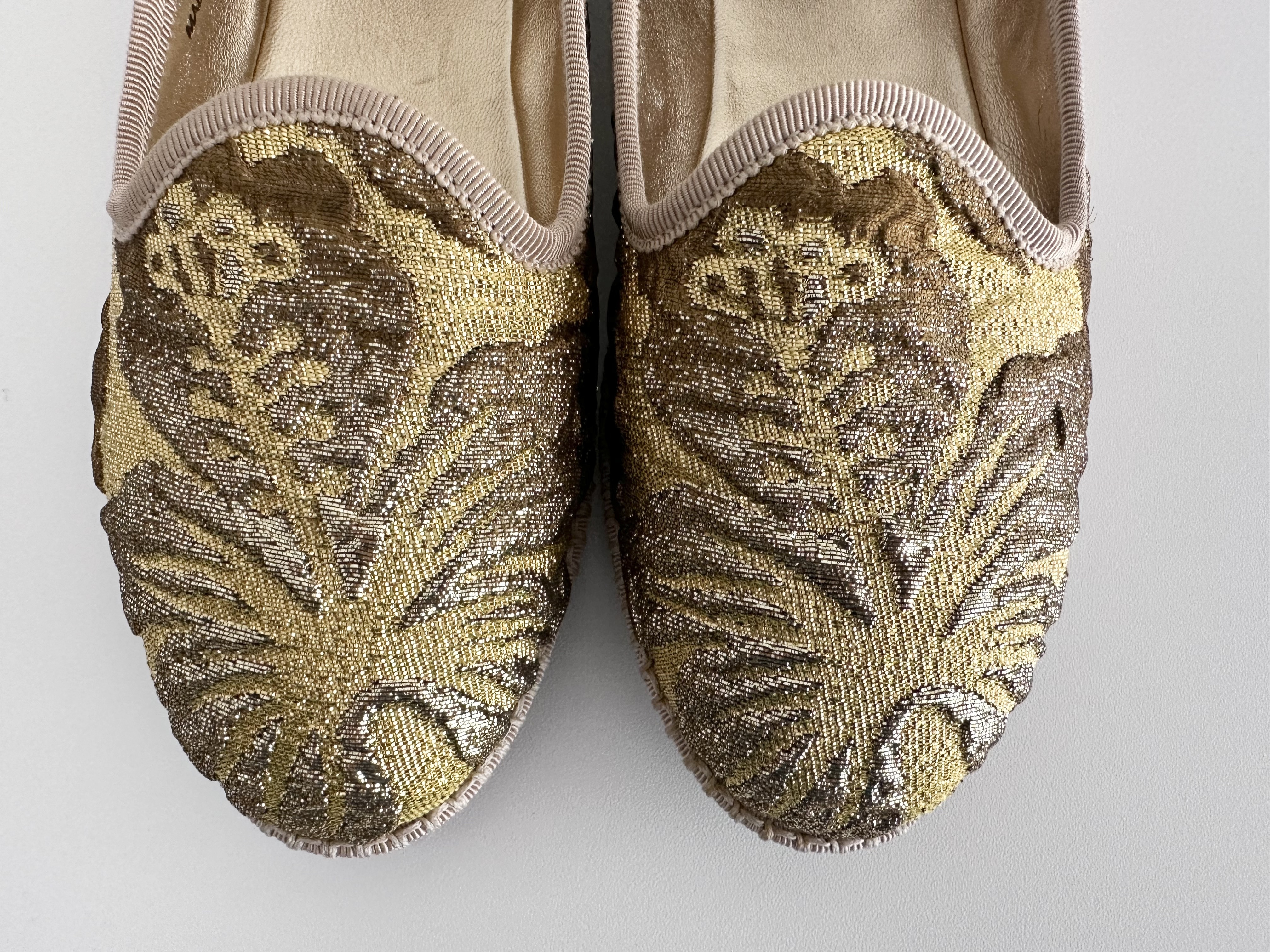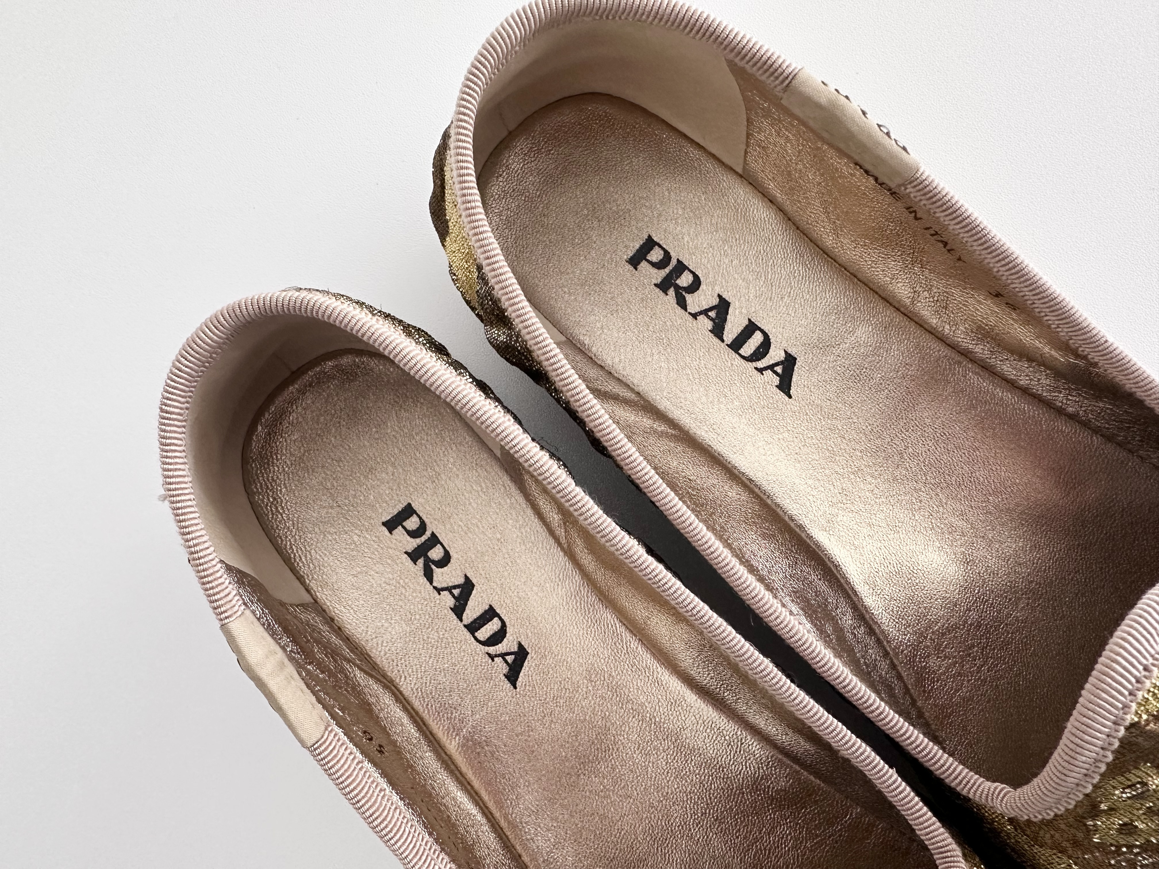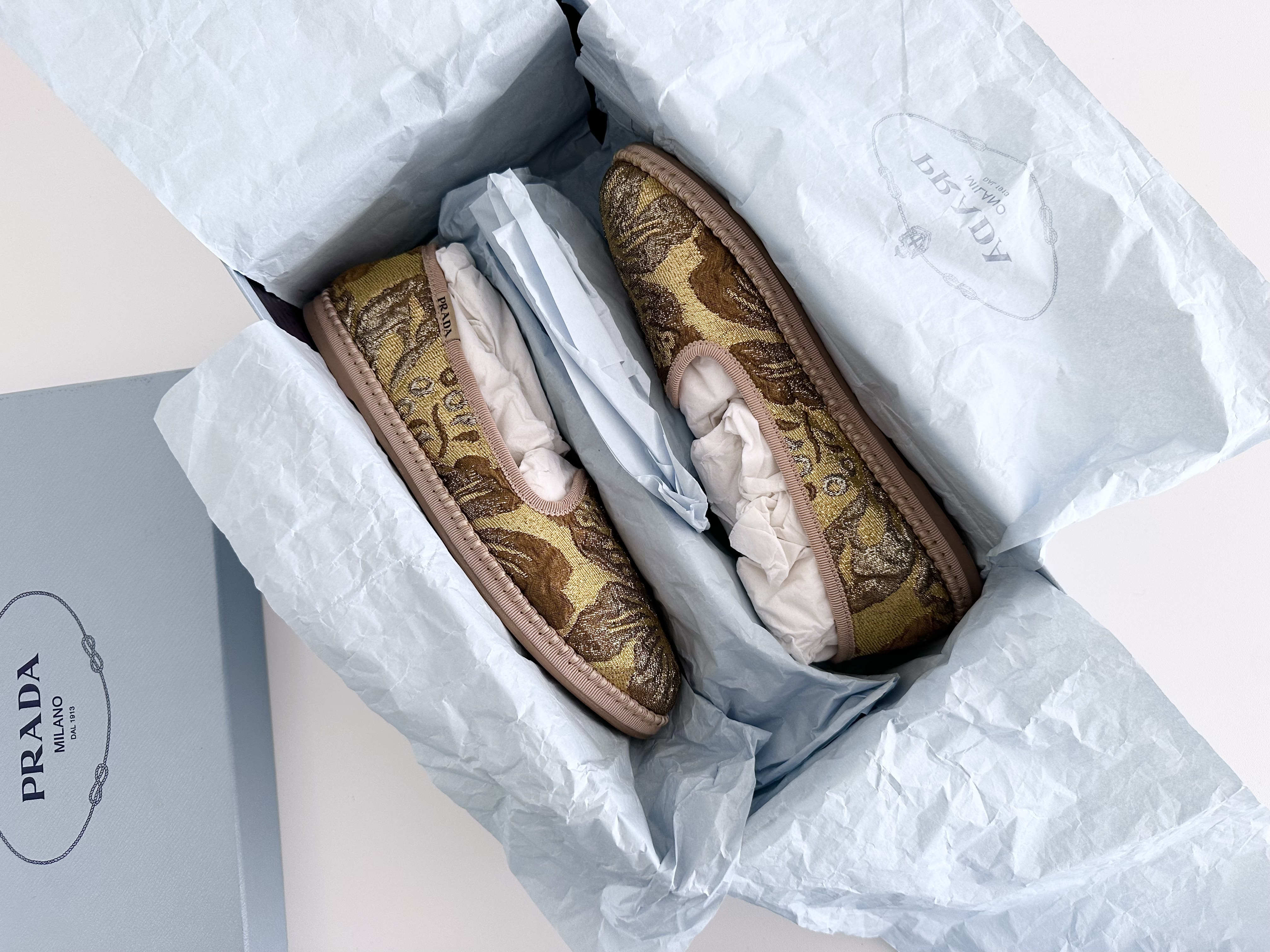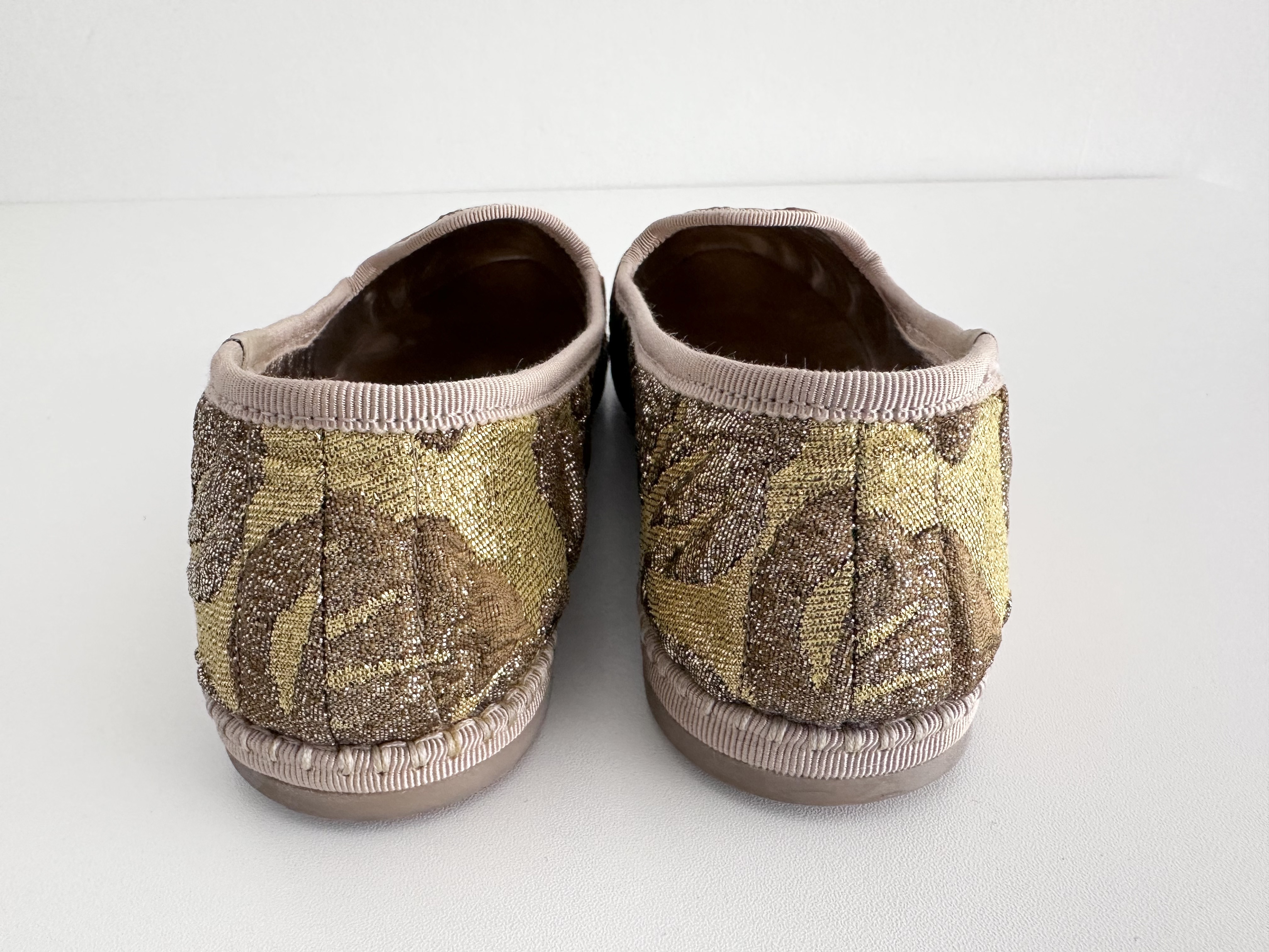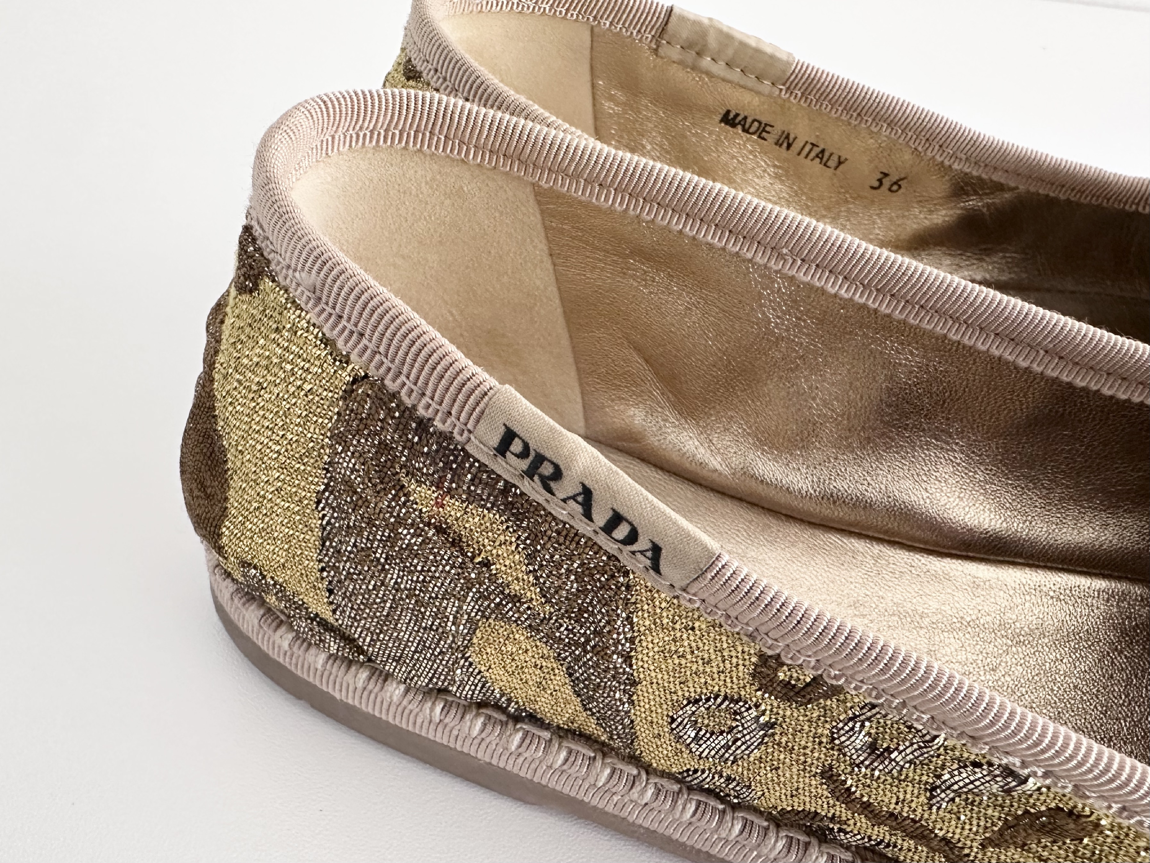 (11937_0230)PRADA PRADA プラダ ジャガードフラットシューズ ゴールド 36サイズ パンプス