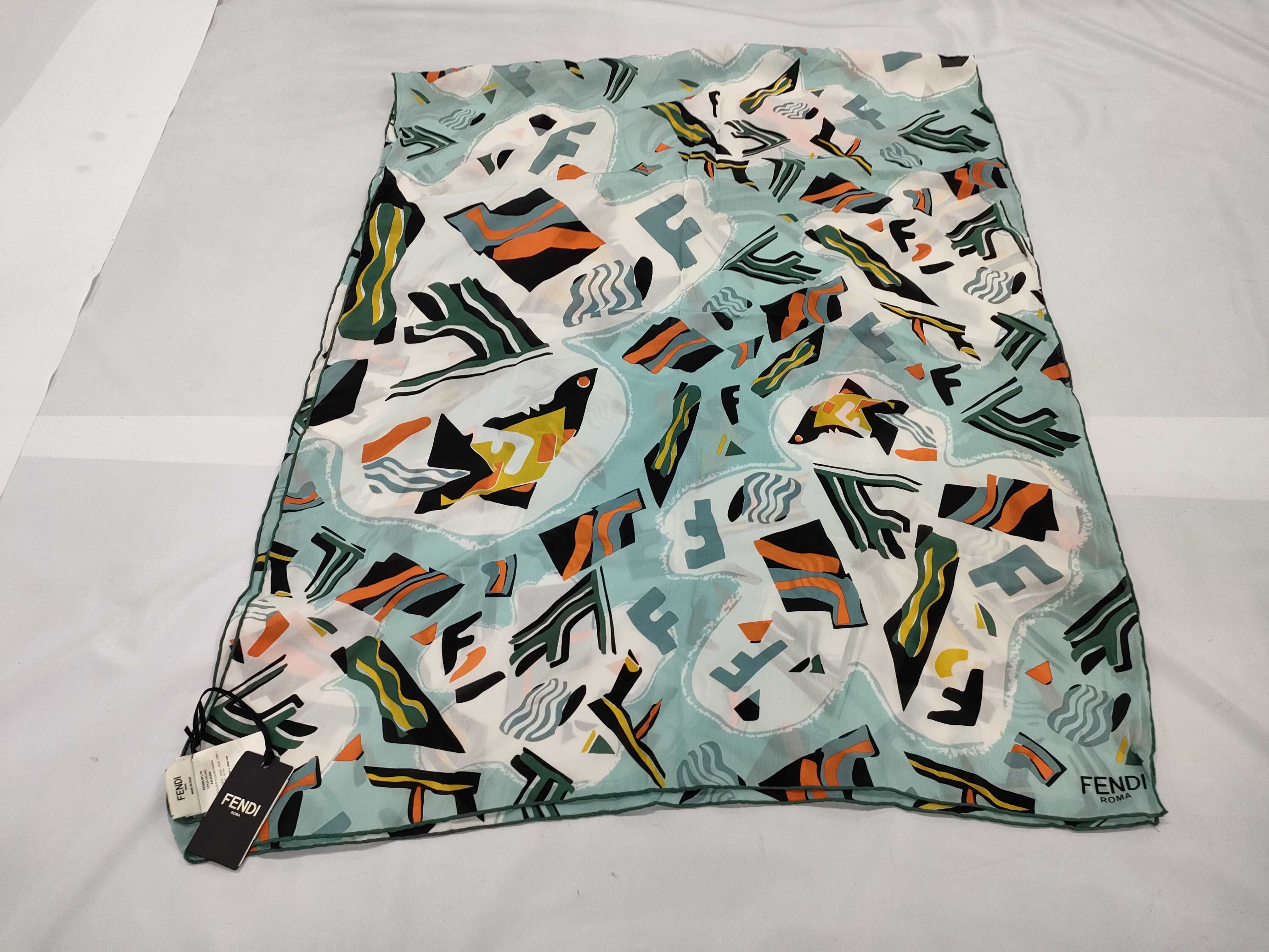 (11937_0243)FENDI シルク タグ付き スカーフ