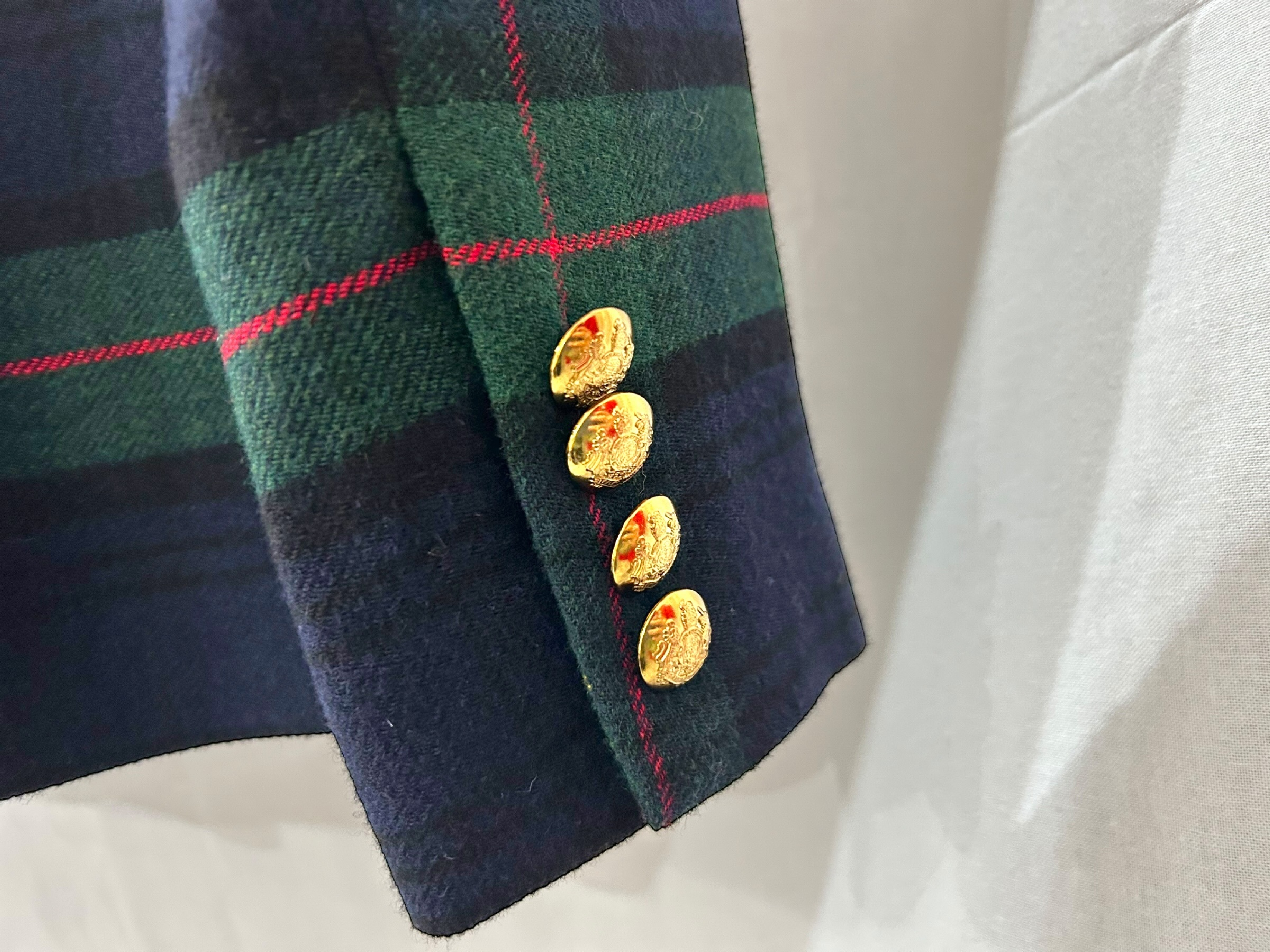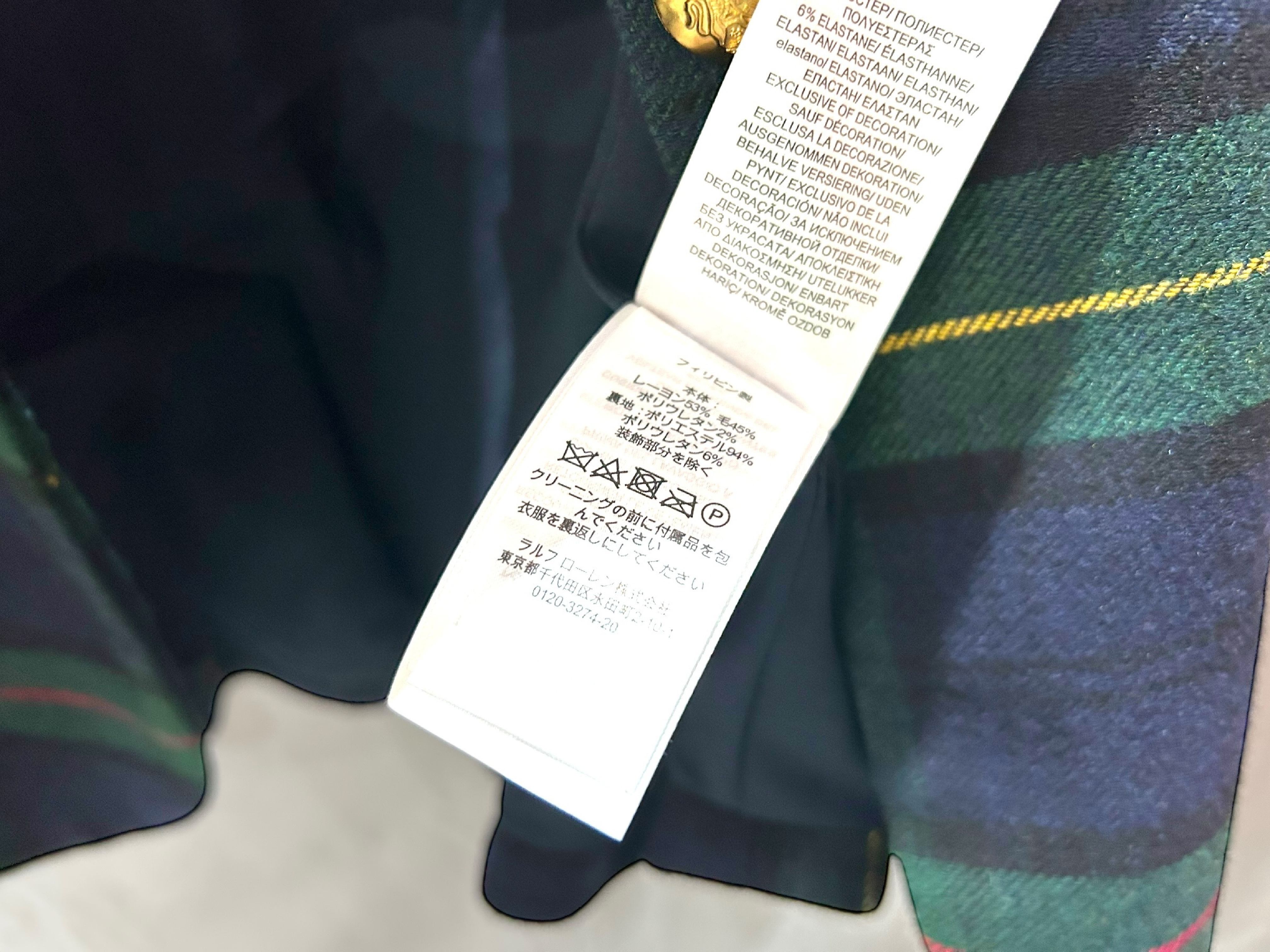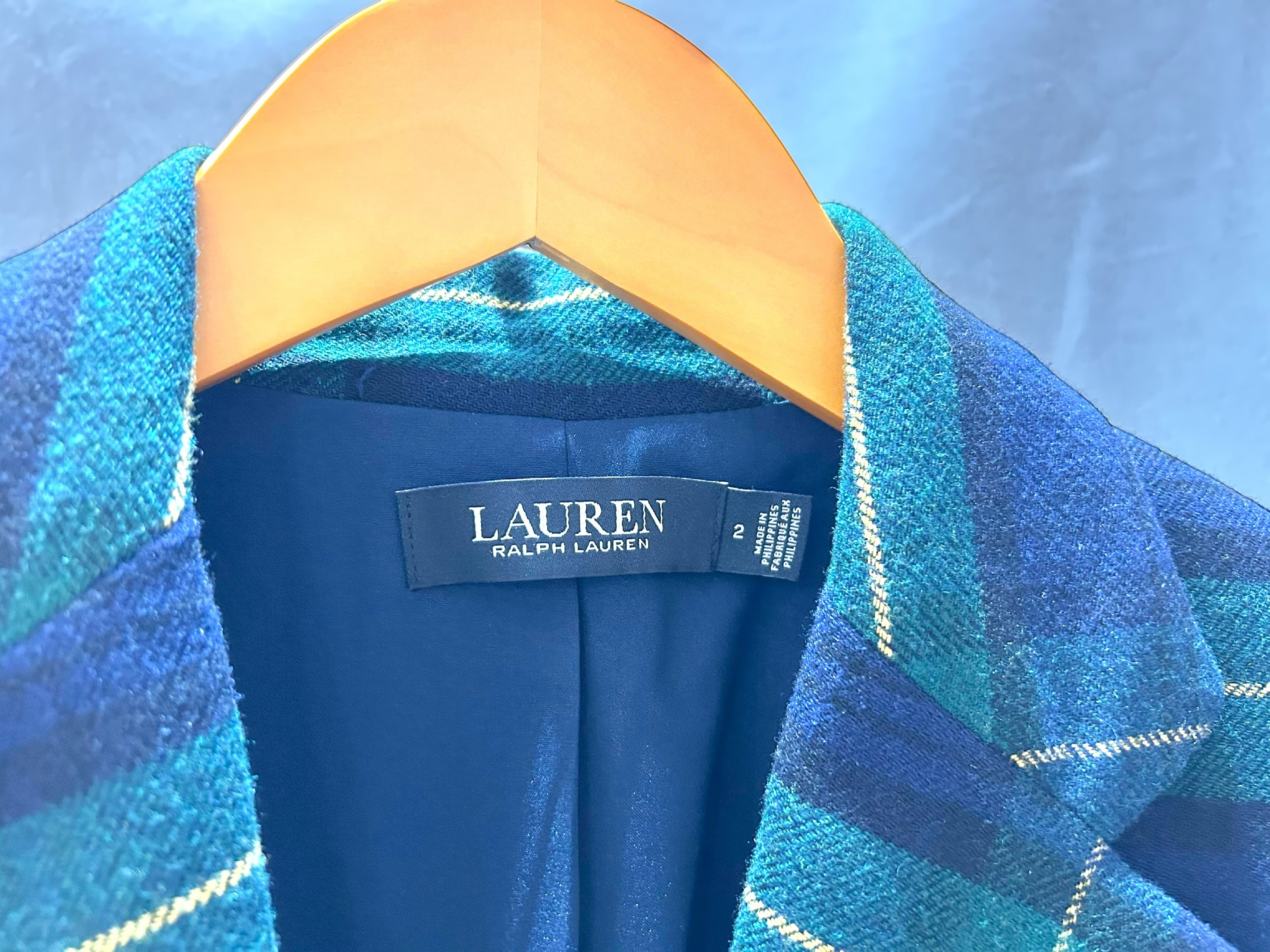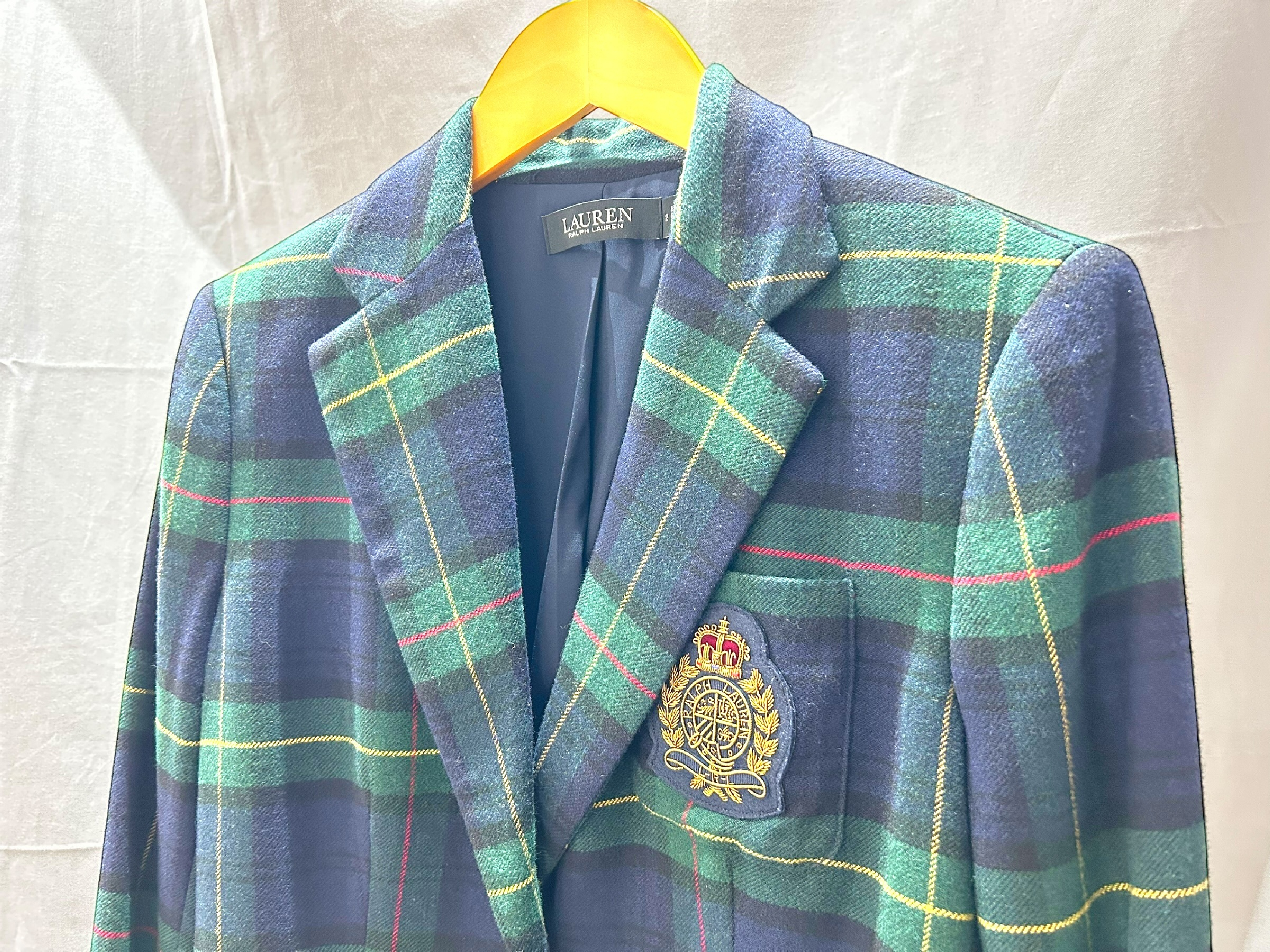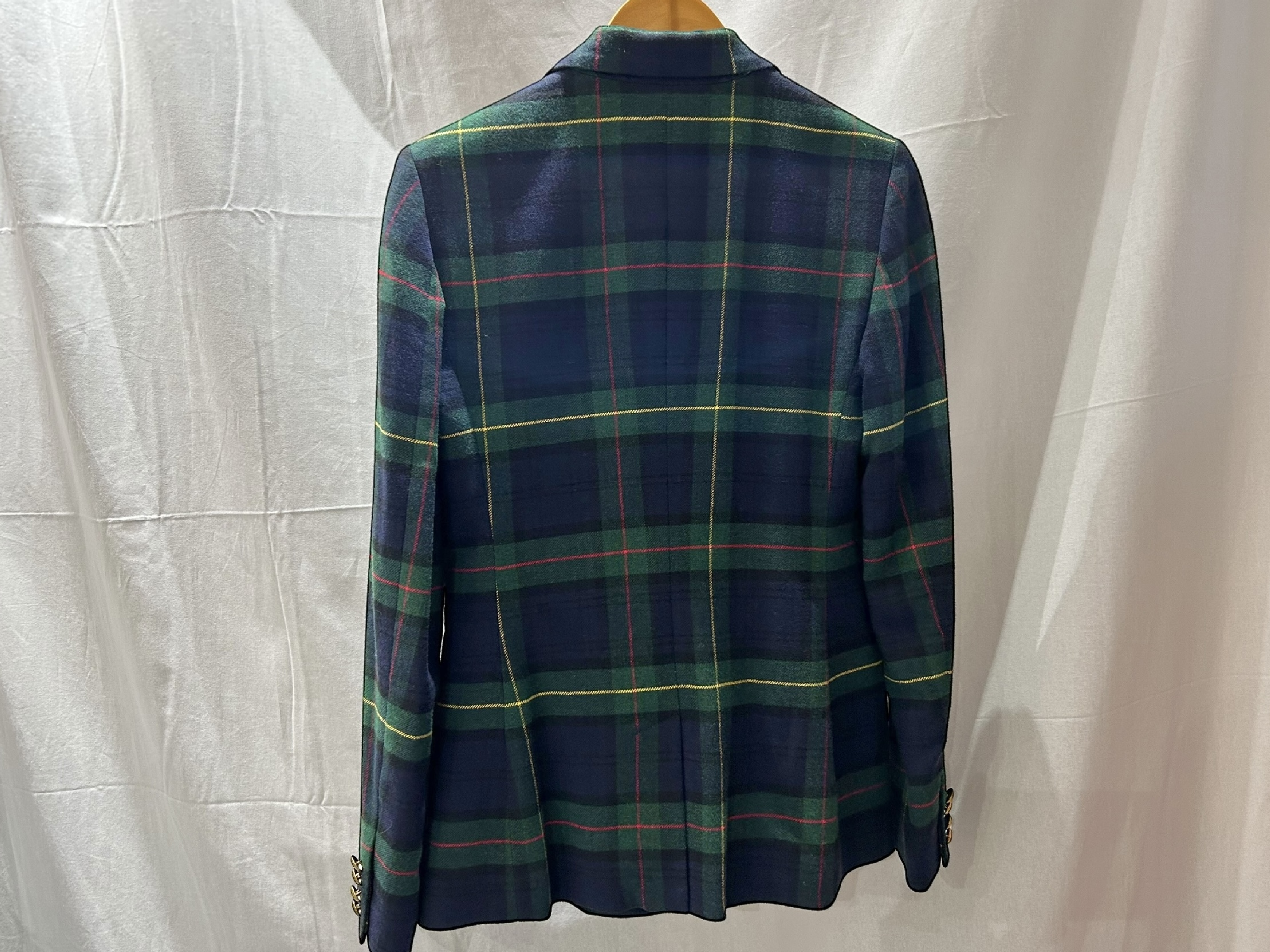 (11937_0296)ローレン・ラルフローレン ジャケット レディース タータンチェック 金ボタン ブレザー サイズ2 着丈65cm ジャケット