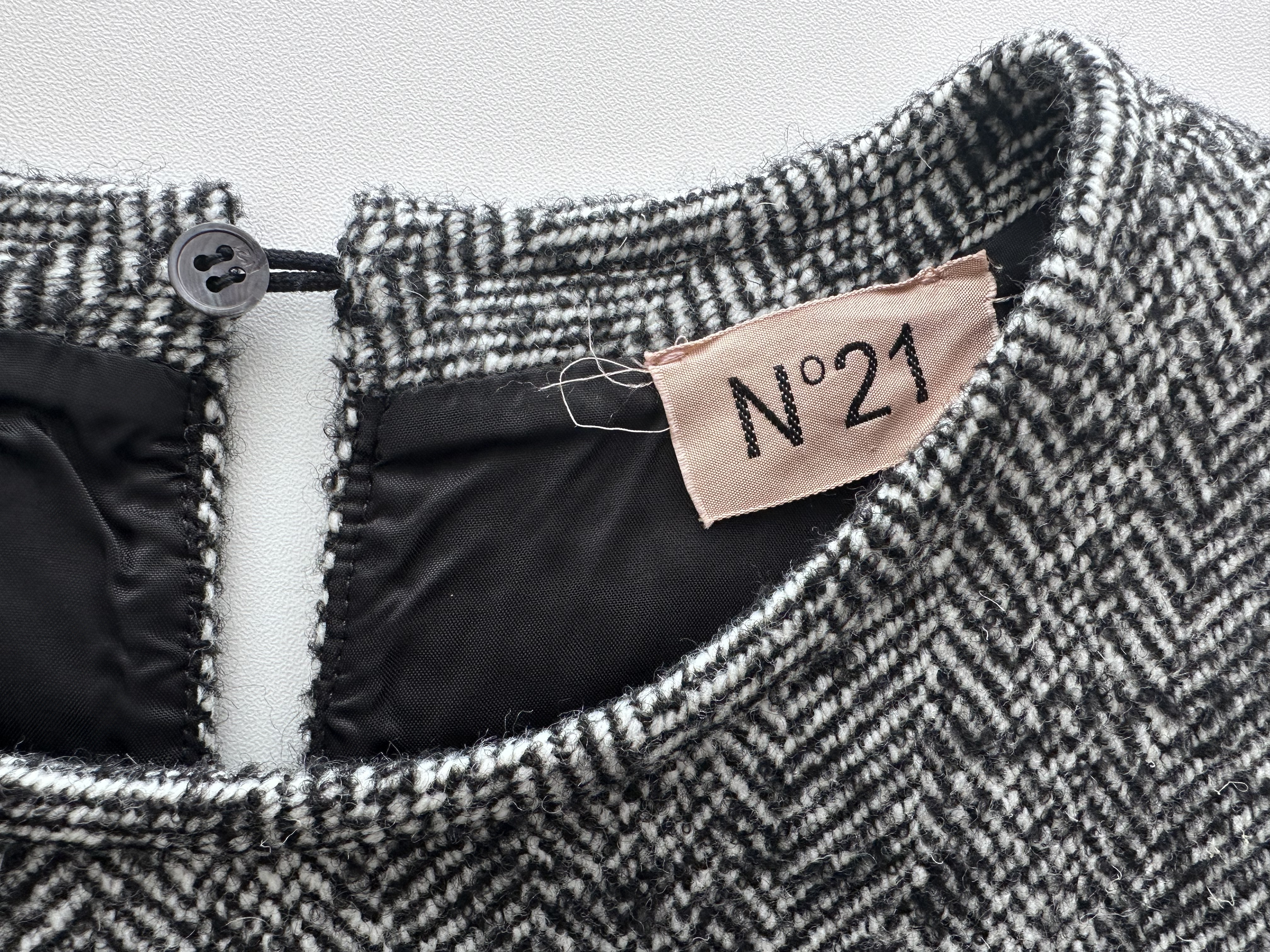 (11937_0313)N°21 ヌメロ ヴェントゥーノ 黒×白ツィードワンピース 42サイズ ワンピース