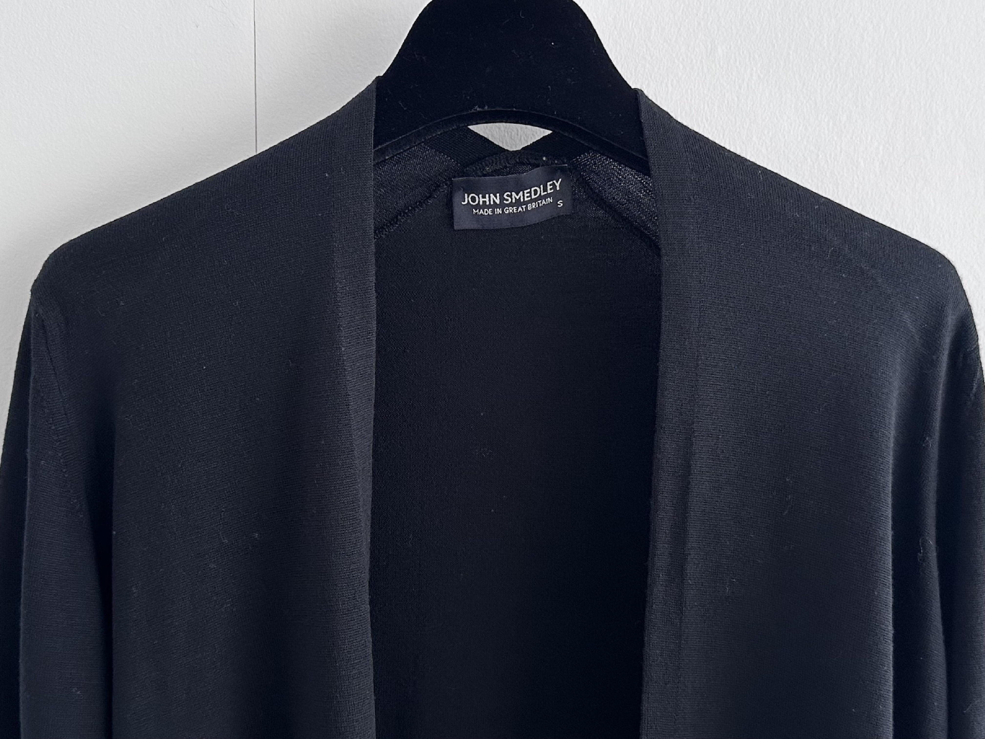 (11937_0317)JOHN SMEDLEY ジョンスメドレー ロングカーディガン黒 レディース Sサイズ カーディガン