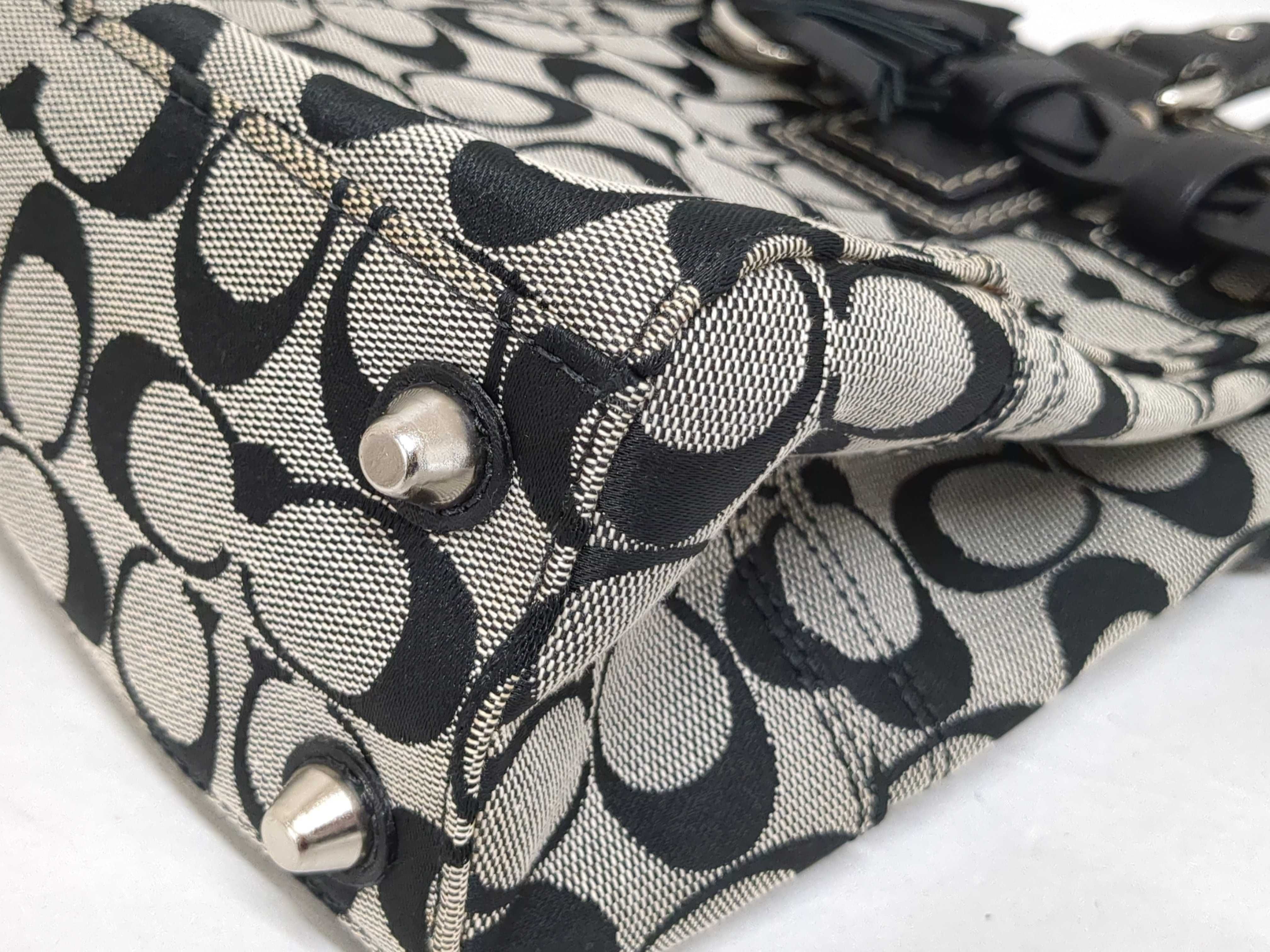 (11938_0094)COACH シグネチャー ハンド/ショルダー キャンバス×レザー タッセル ショルダーバッグ
