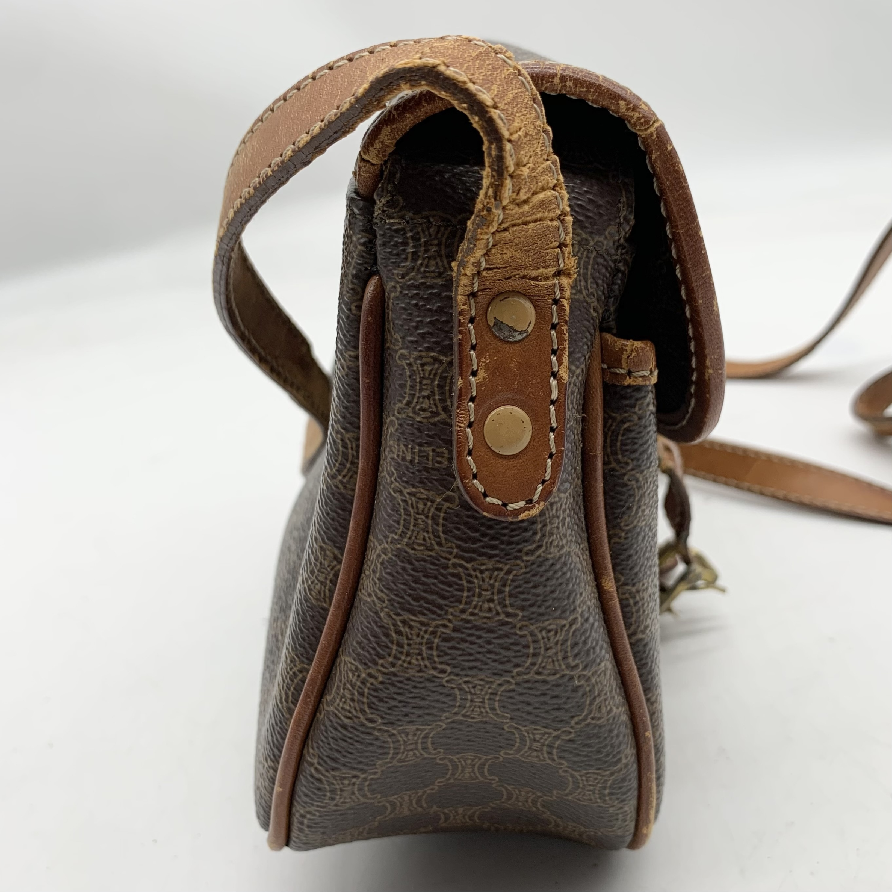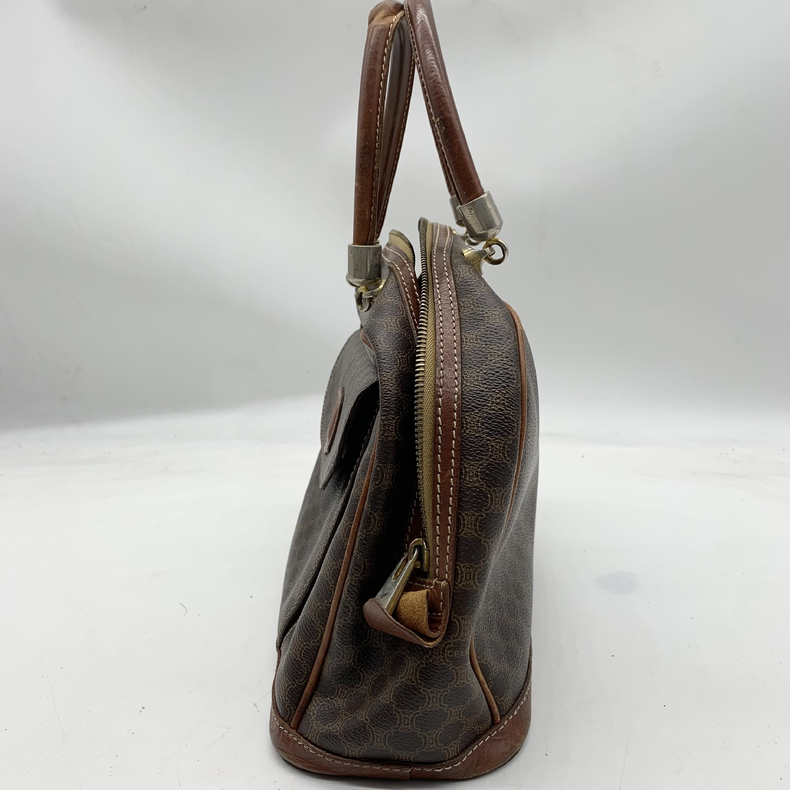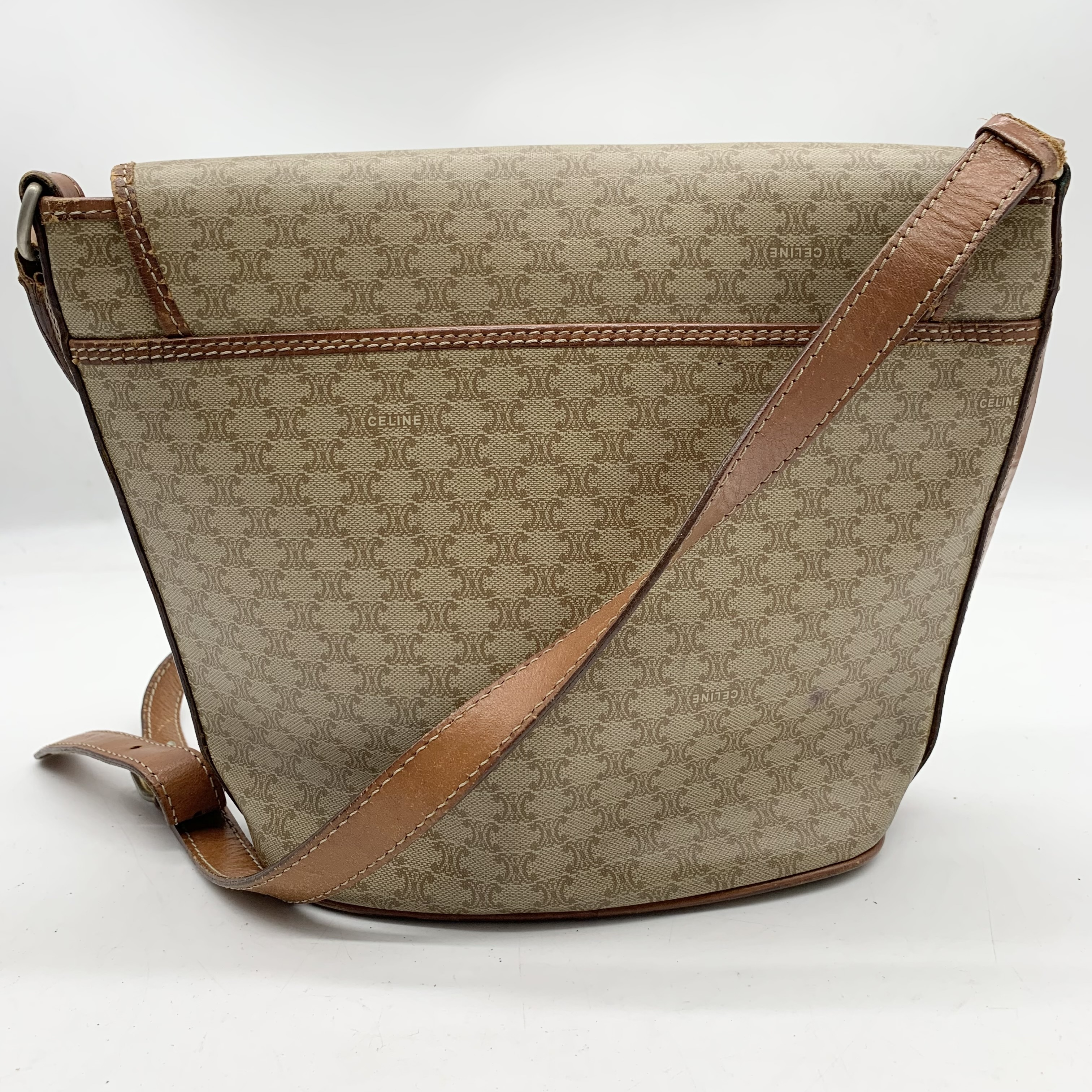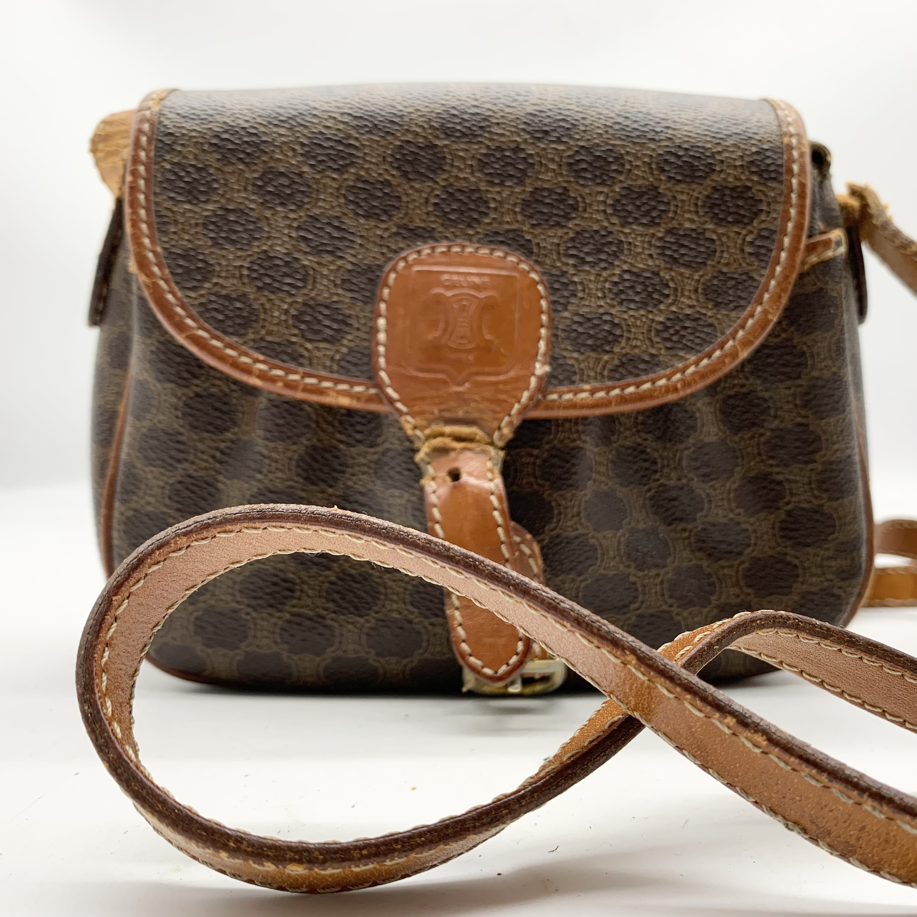 (11938_0192)CELINE セリーヌ マカダム柄 ヴィンテージ ショルダーバッグ 3点セット まとめ (ブラウン ベージュ キャンバス レザー) バッグ