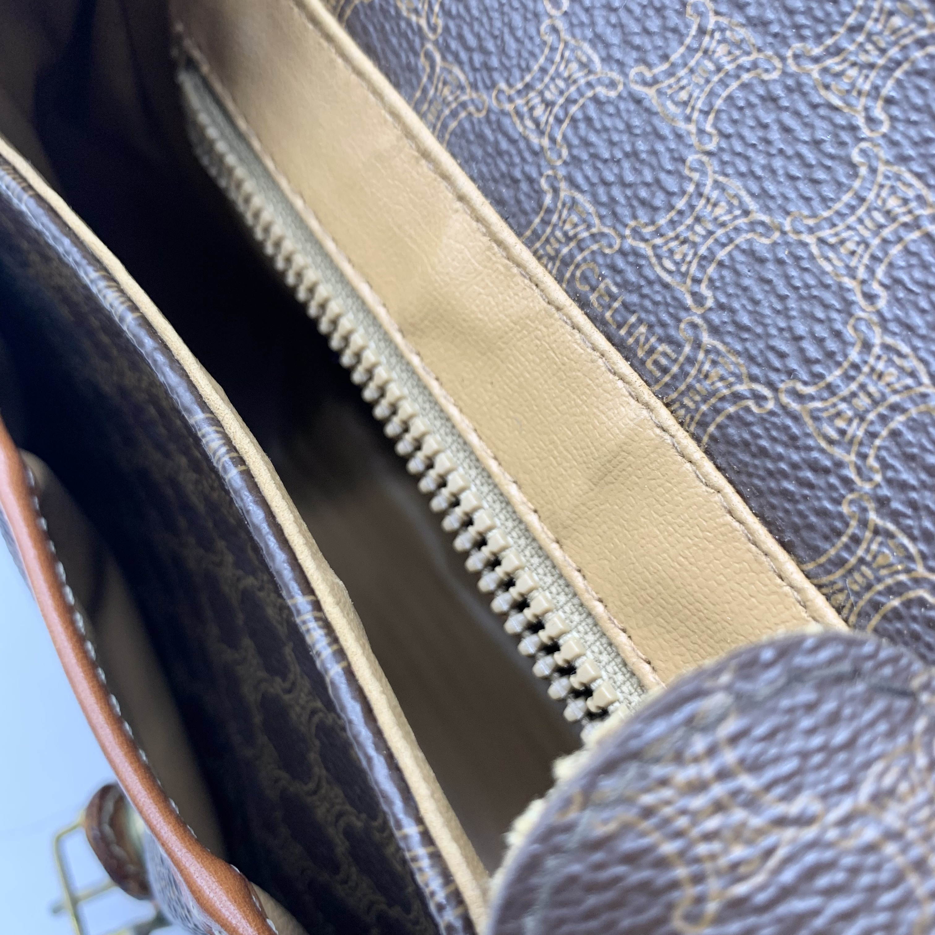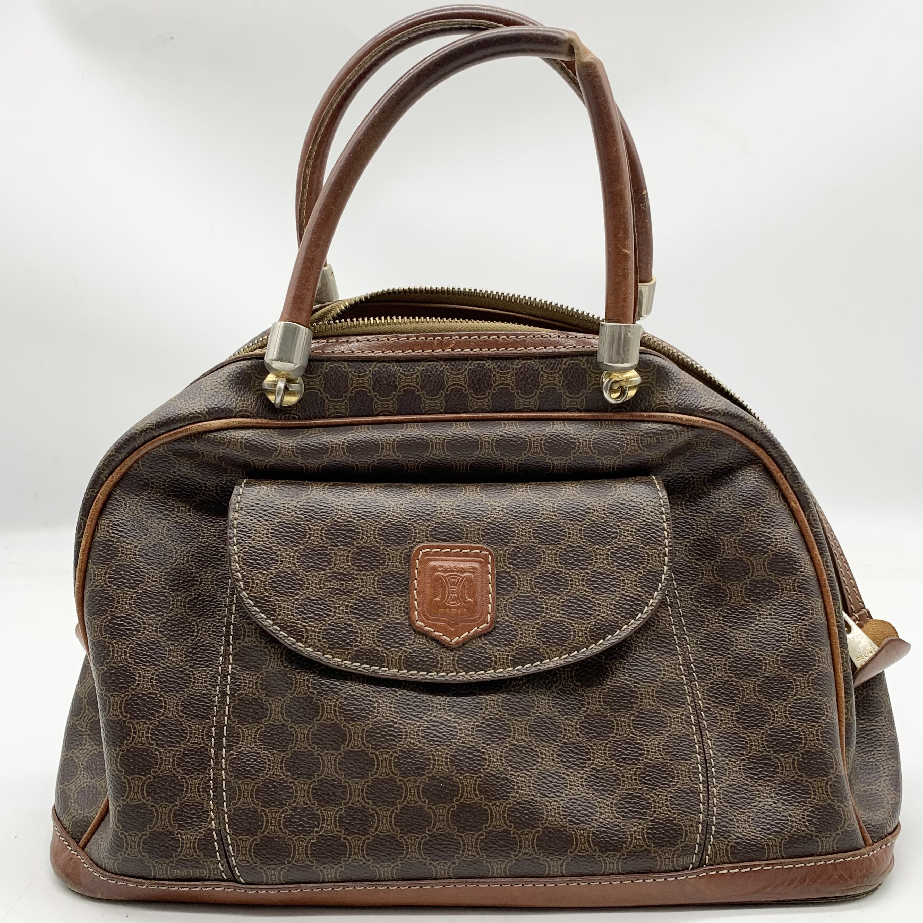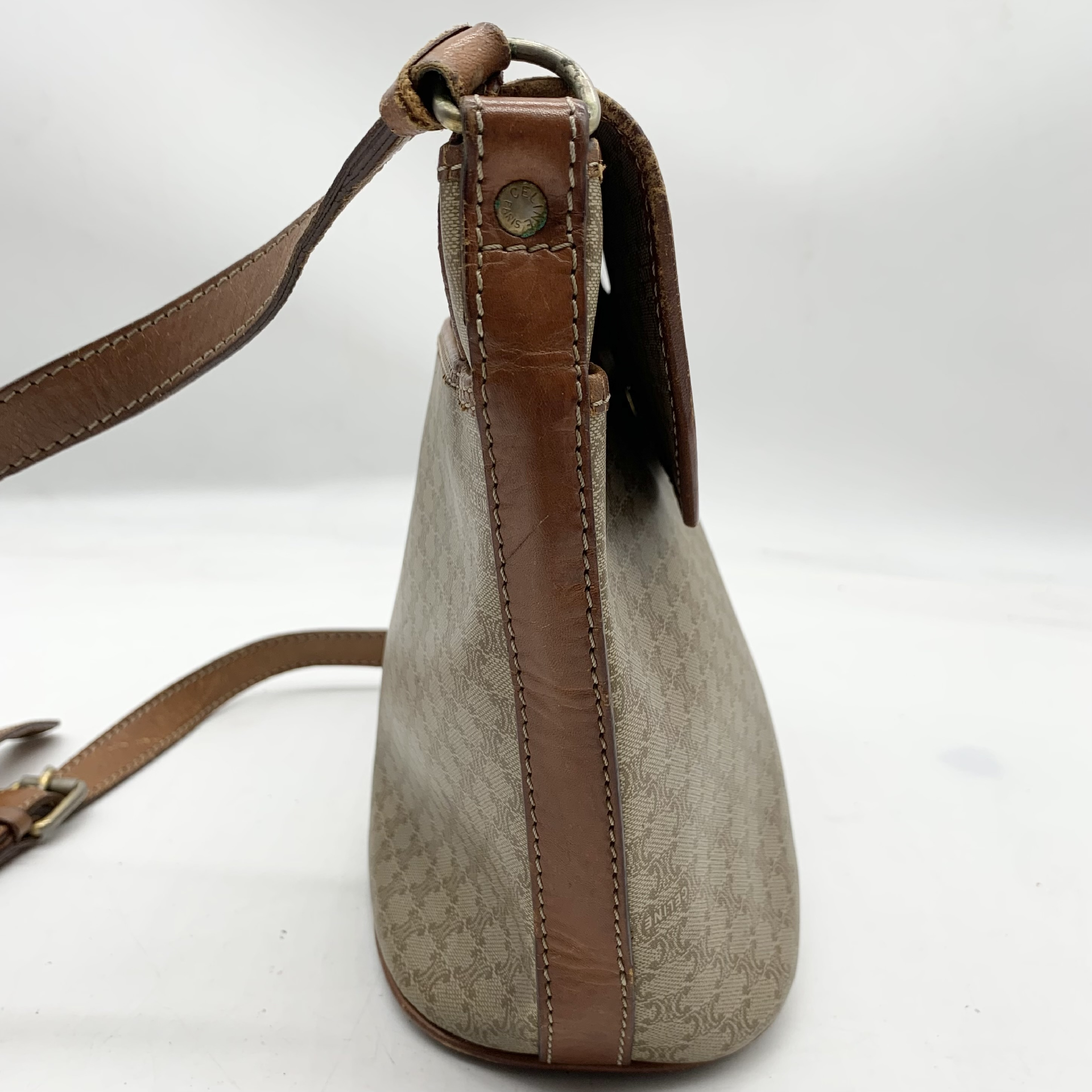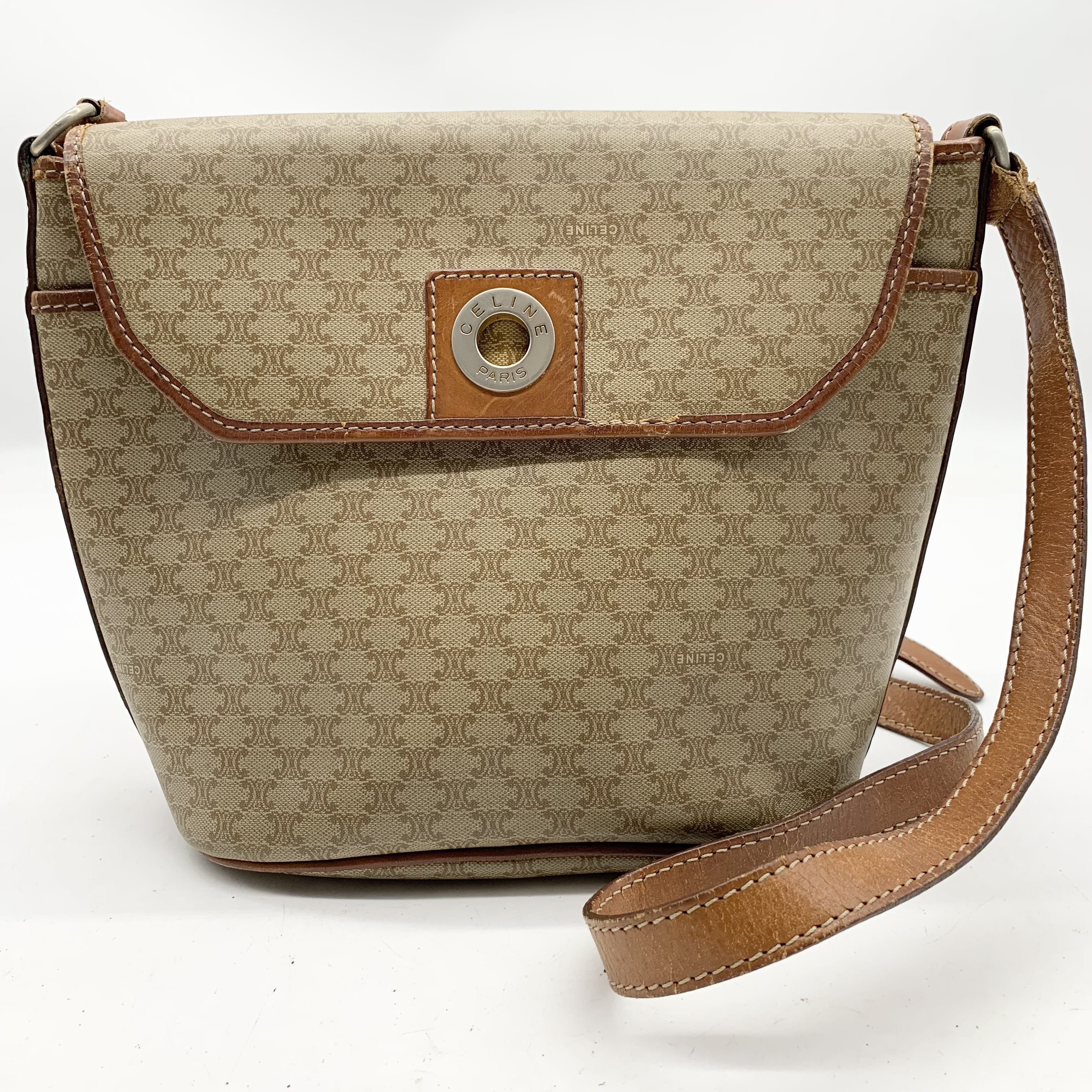 (11938_0192)CELINE セリーヌ マカダム柄 ヴィンテージ ショルダーバッグ 3点セット まとめ (ブラウン ベージュ キャンバス レザー) バッグ