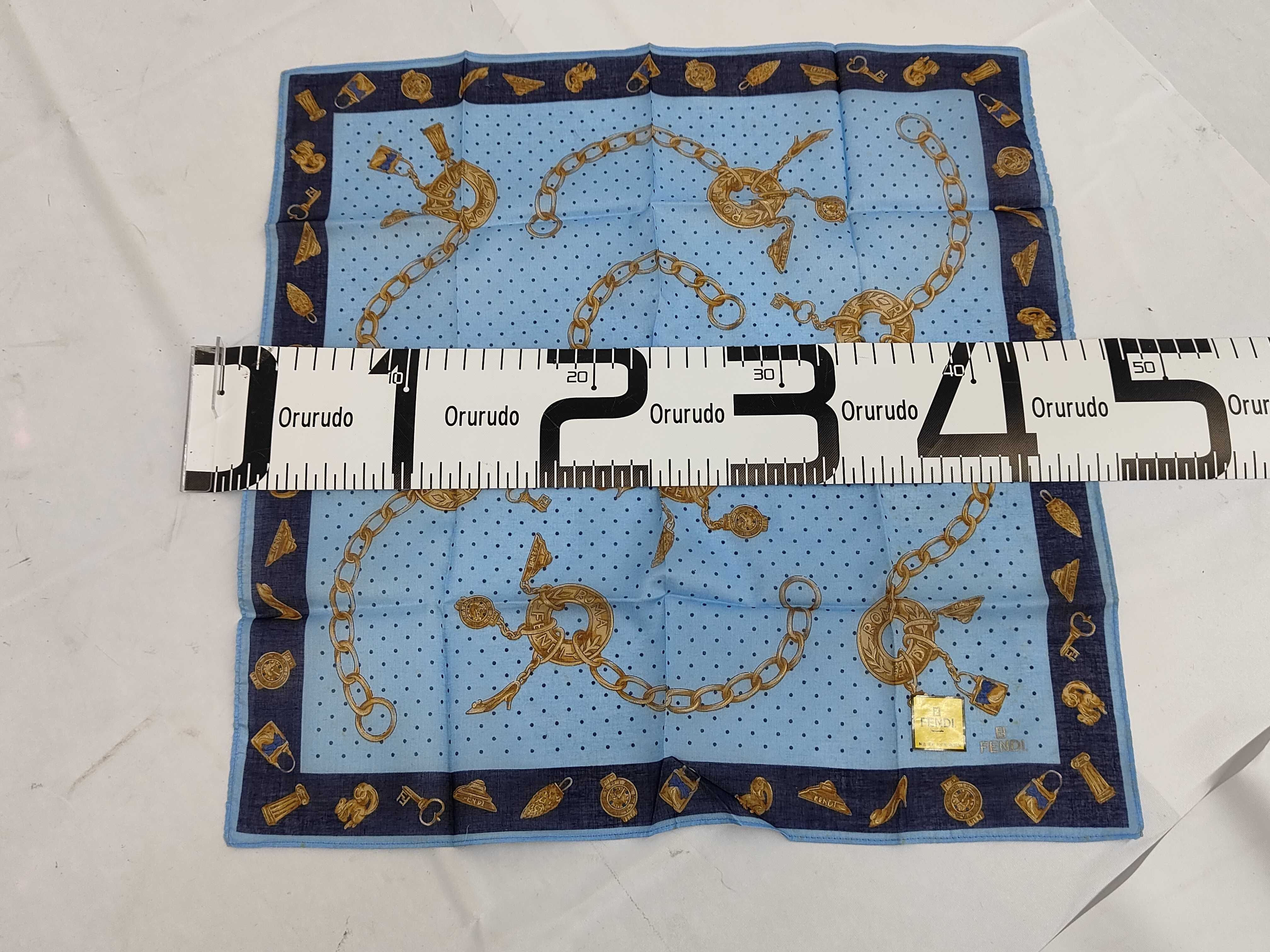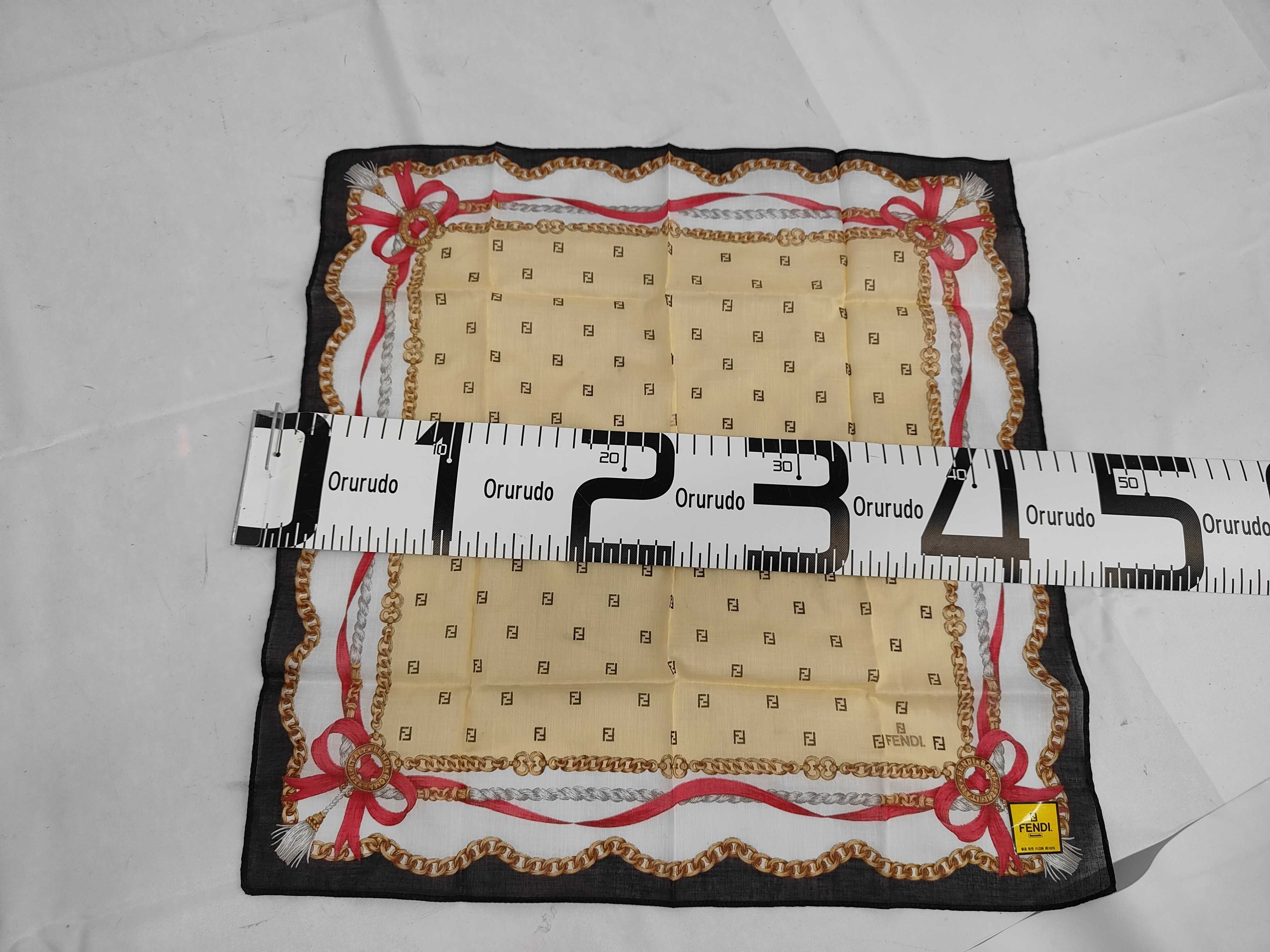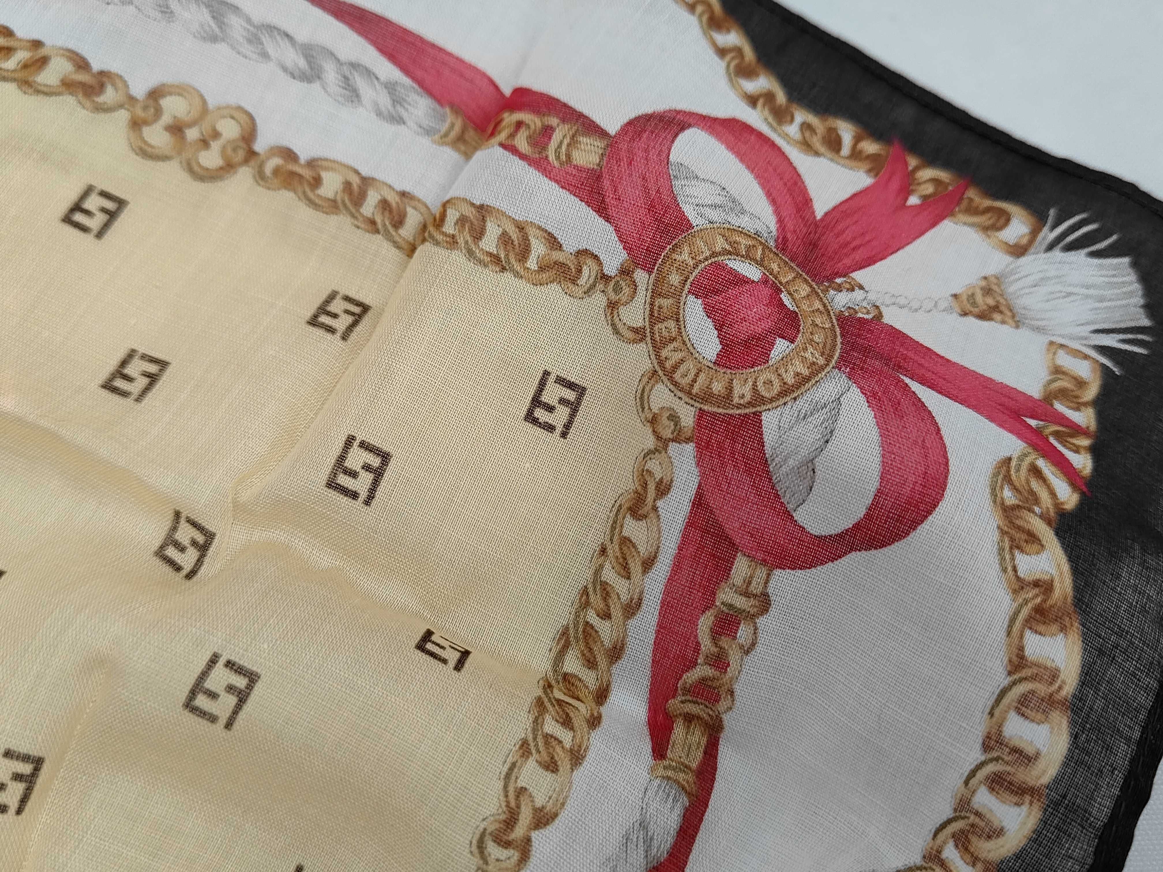 (11938_0246)FENDI フェンディ 大判スカーフ チェーン柄 リボン 2点セット その他小物