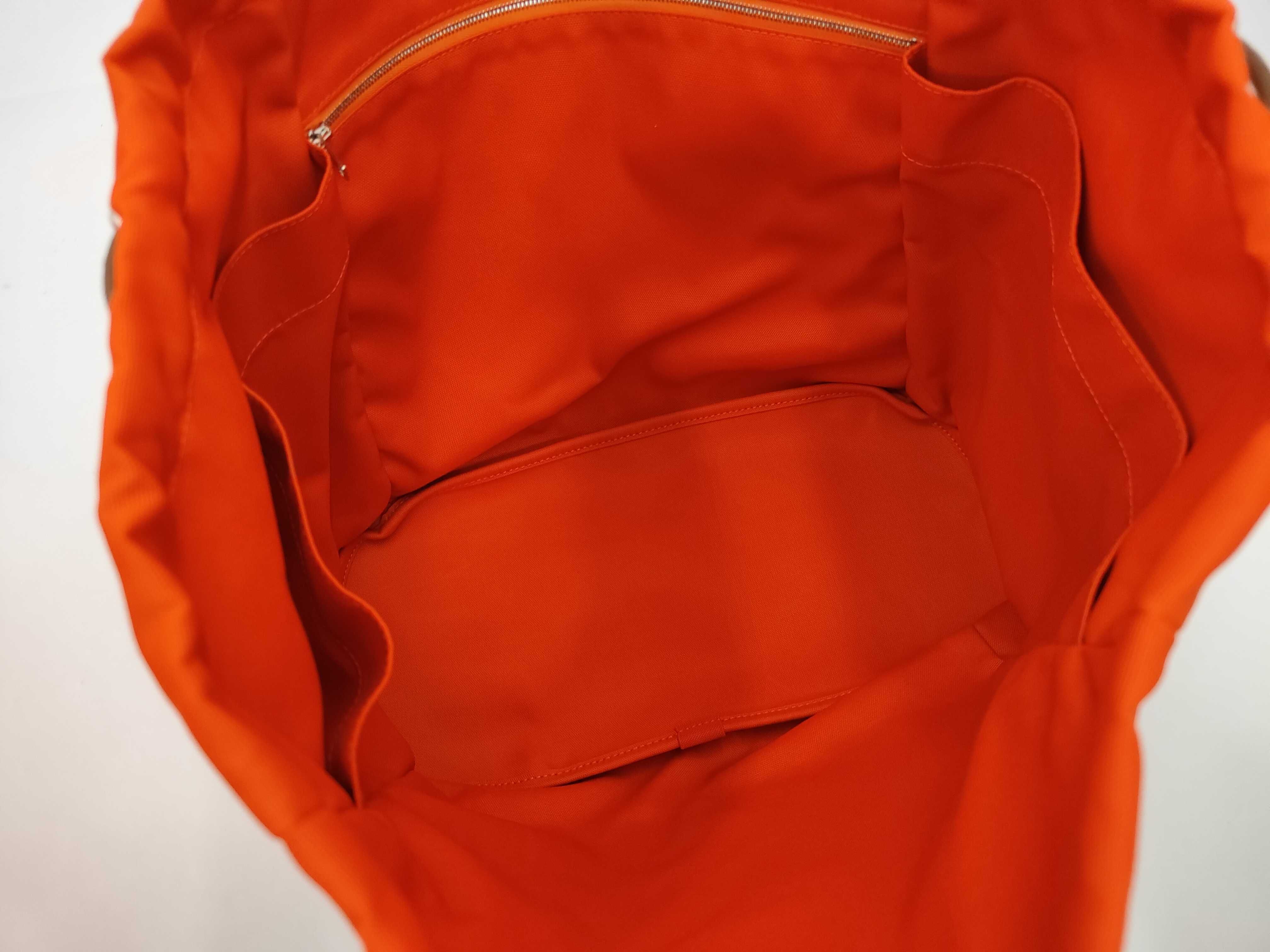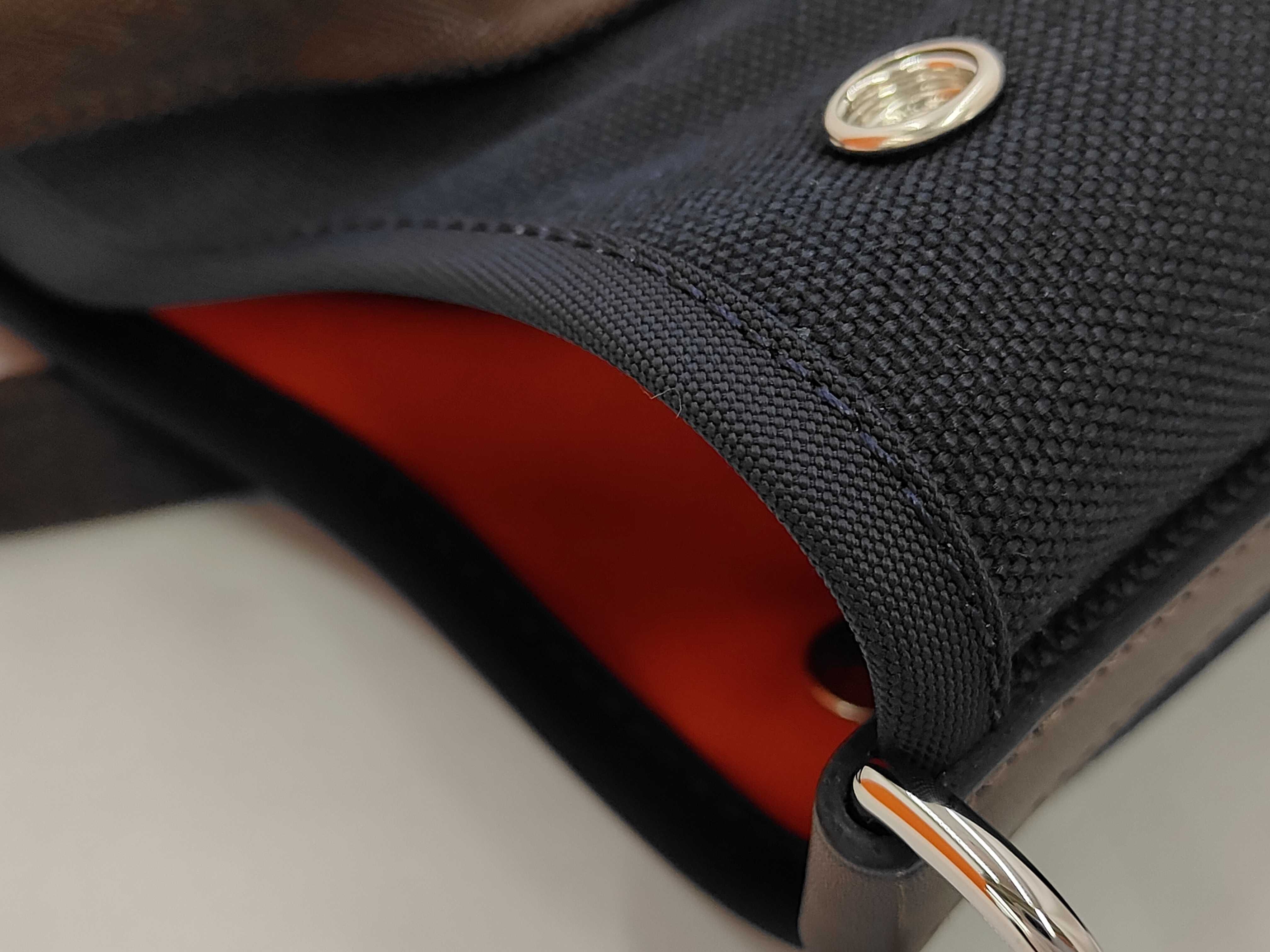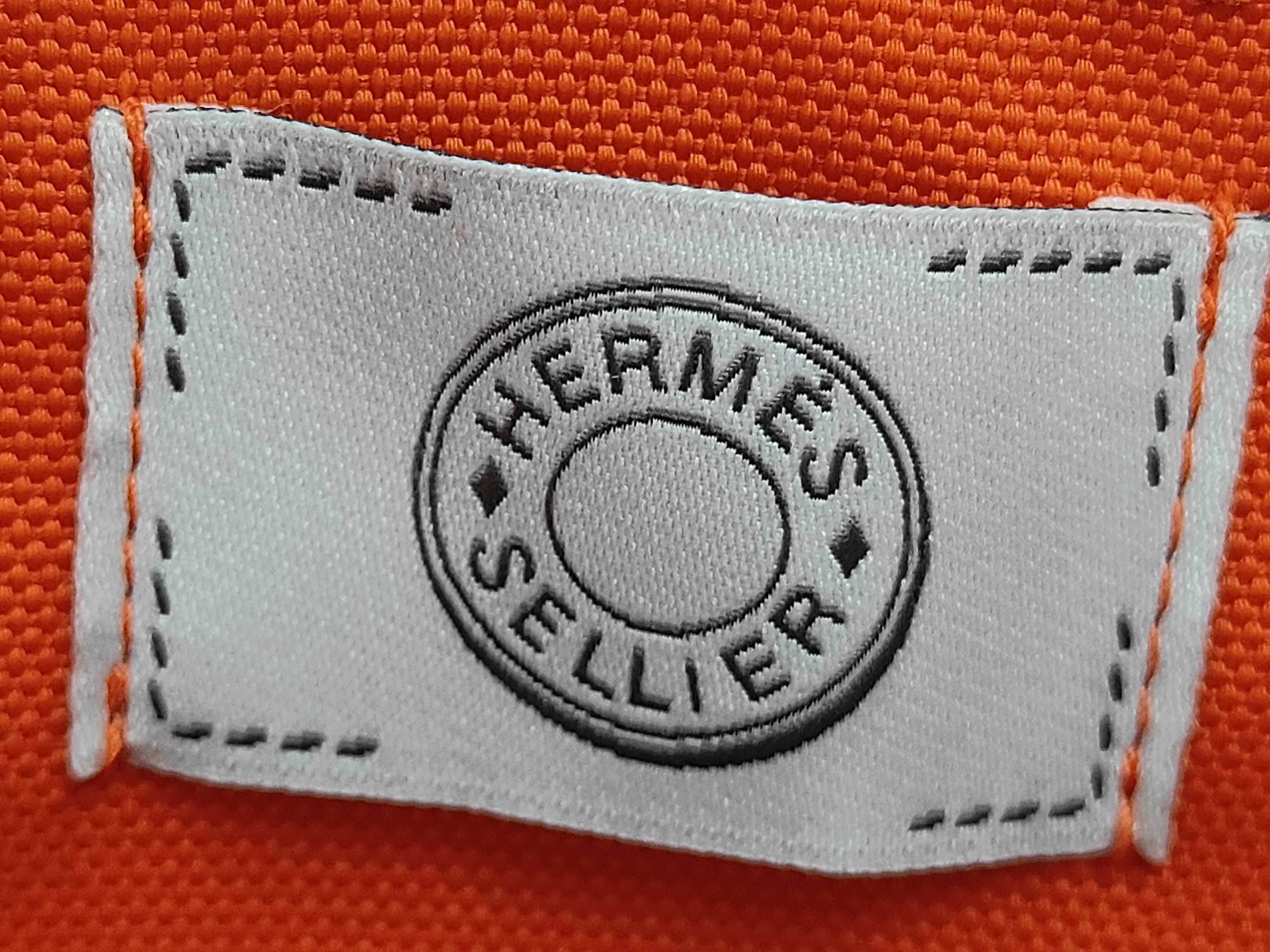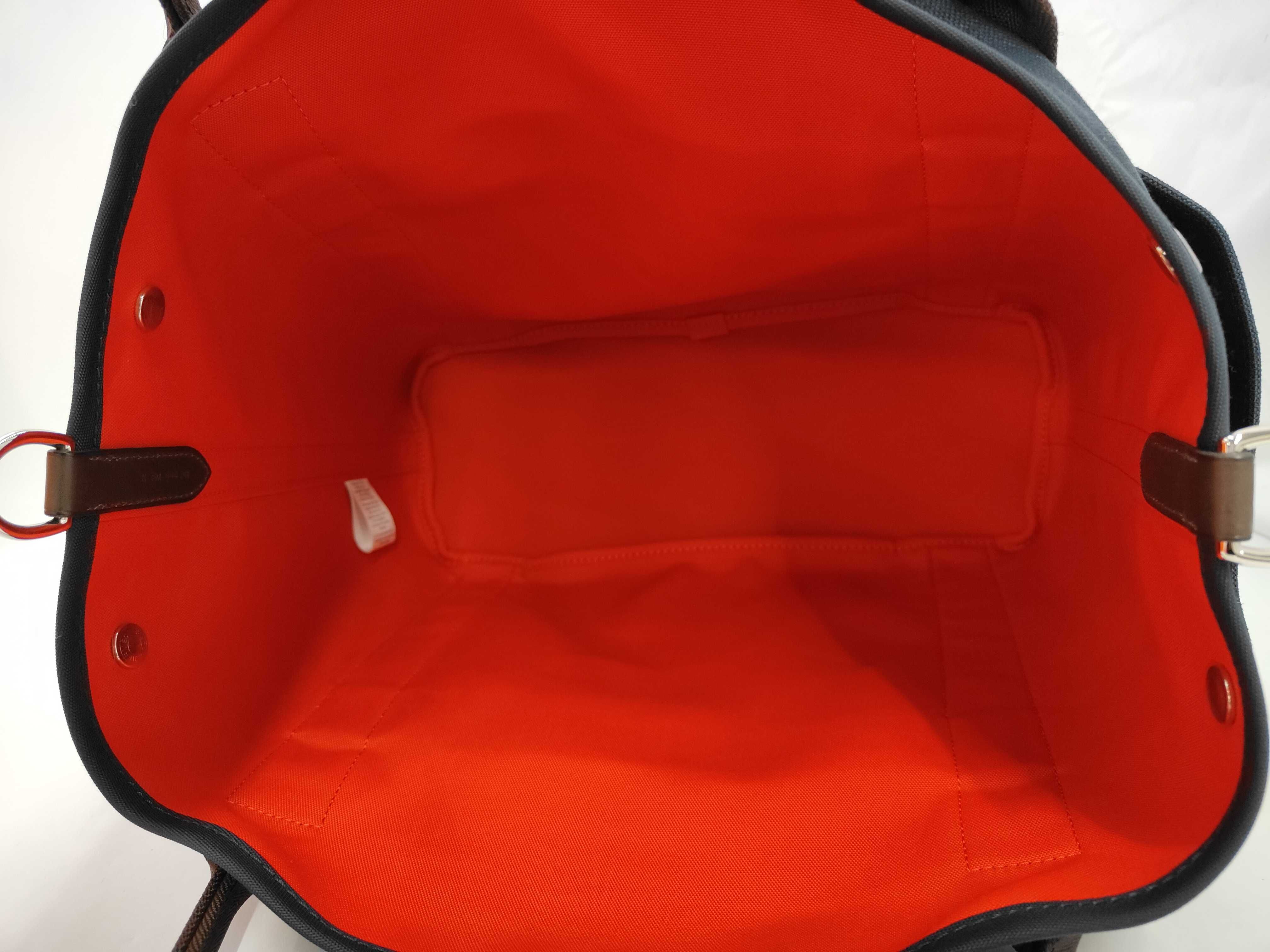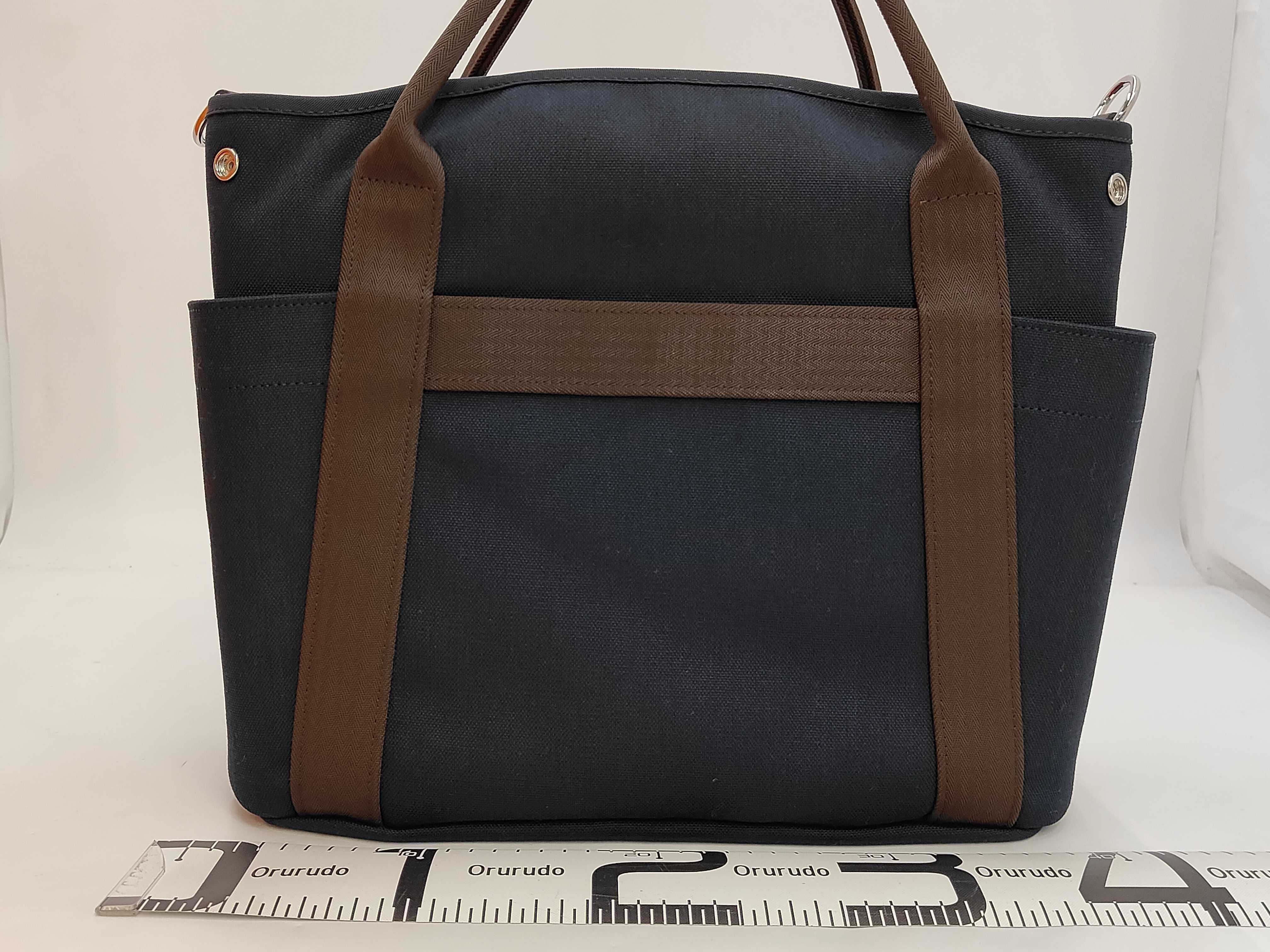 (11931_0096)HERMES サックドパンサージュ トワルシェブロンブライドルレザー ネイビー/オレンジ K刻印 ハンドバッグ