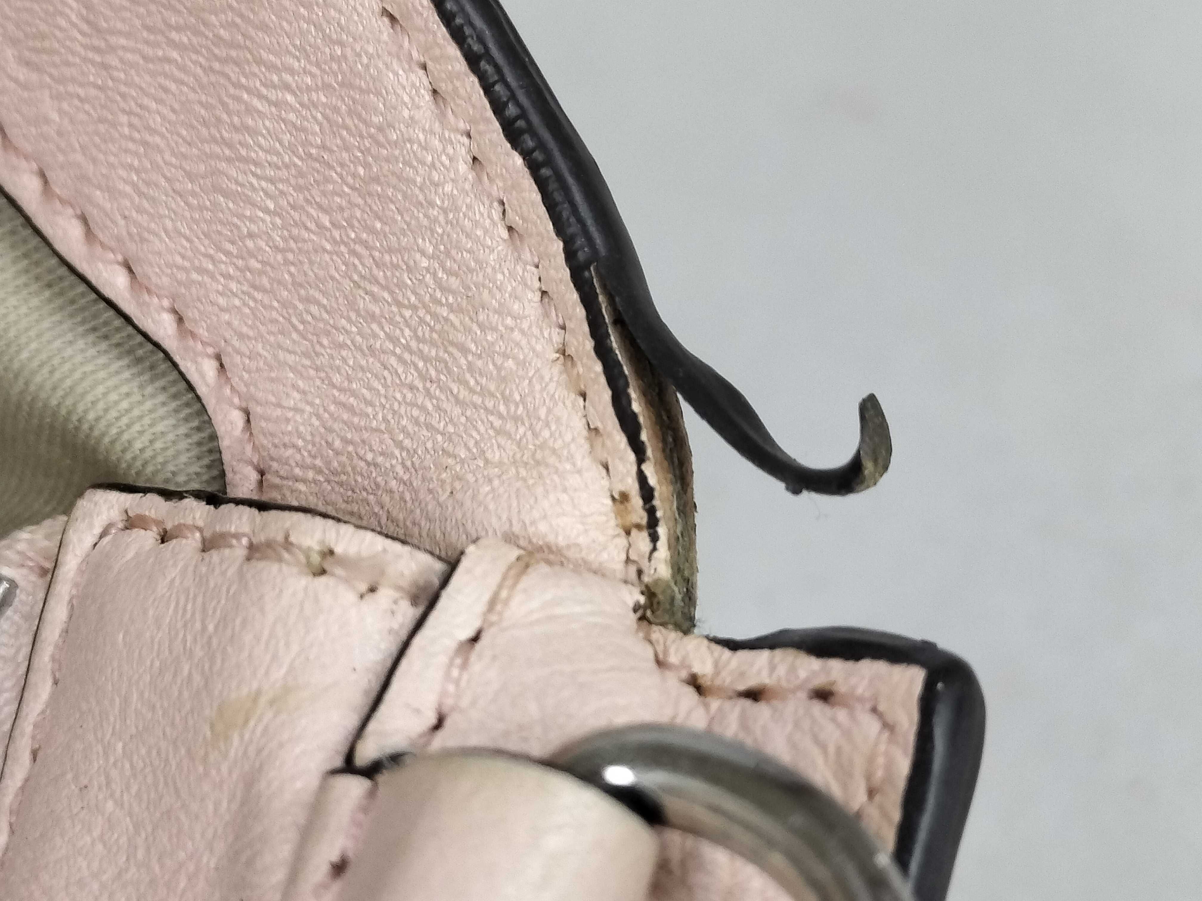 全体擦れ(中) 角擦れ(中) 金具キズ(小) 内側汚れ(小) 全体汚れ(中) 持ち手汚れ(小) 間口コバ剥がれ(小)【付属品