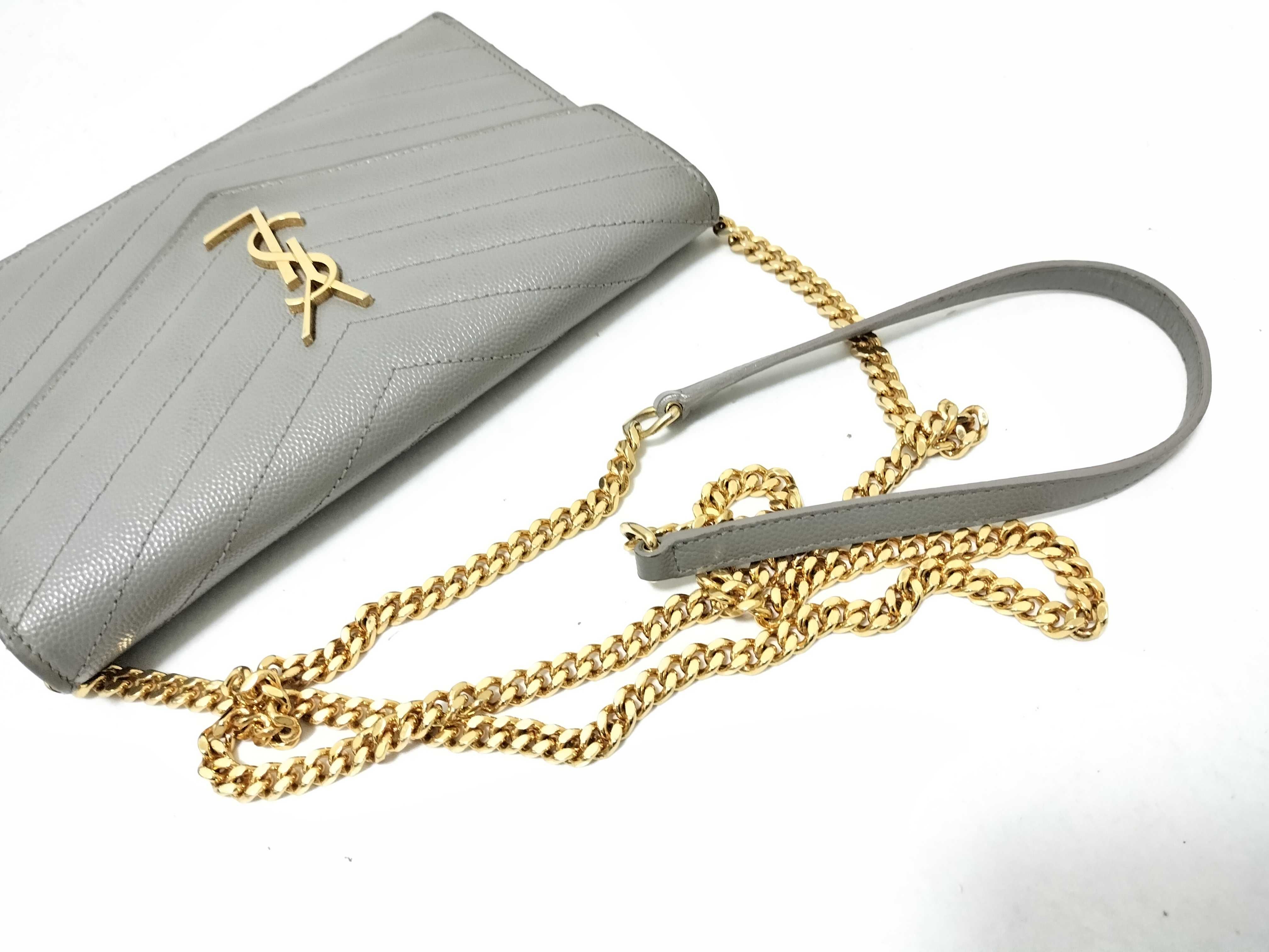 (11935_0361)SAINT LAURENT YVES SAINT LAURENT チェーンウォレット グレー 393953.1016 ショルダーバッグ