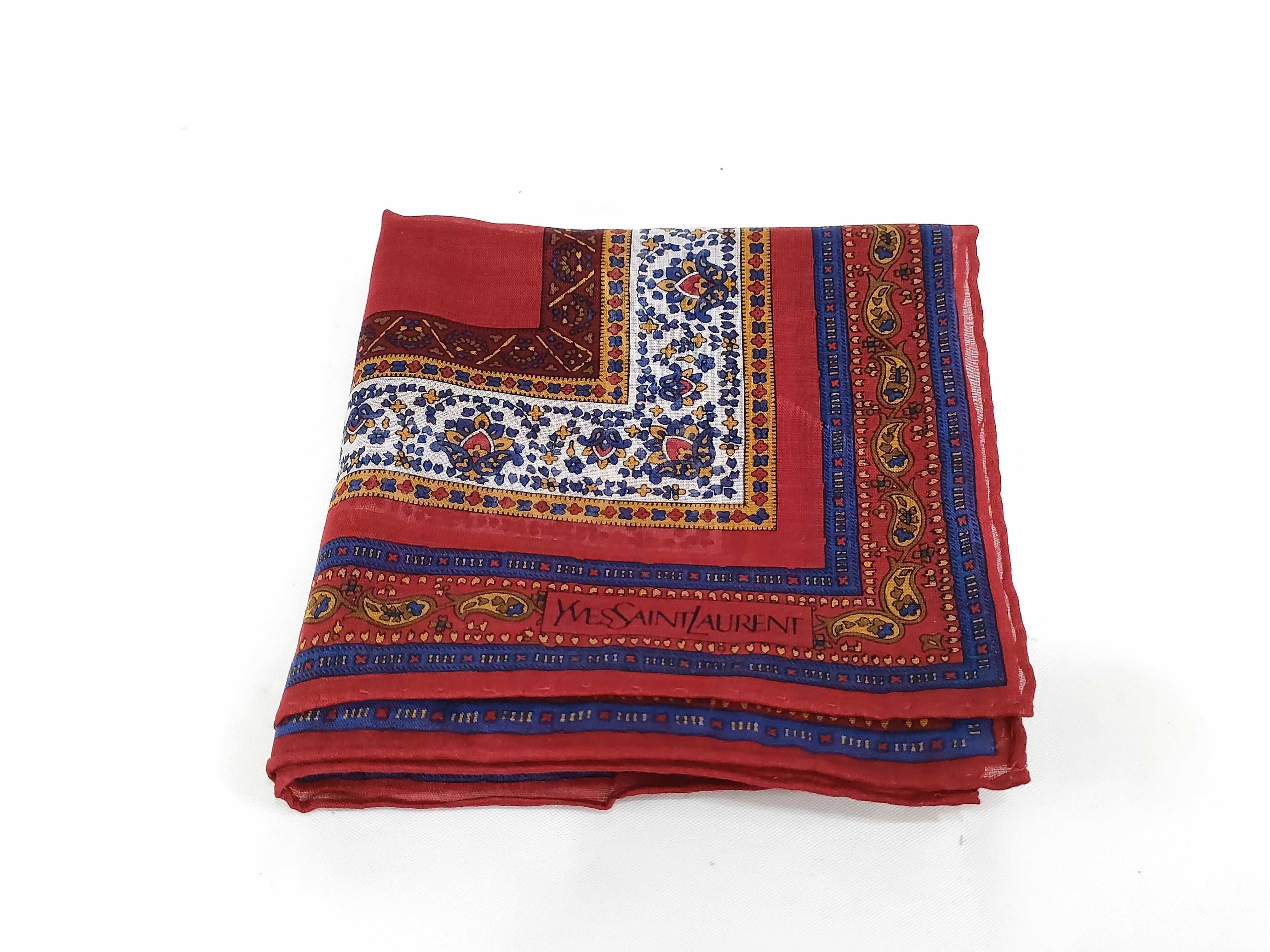 (11936_0345)Yves Saint Laurent イヴサンローラン ハンカチ スカーフ レッド ペイズリー その他小物