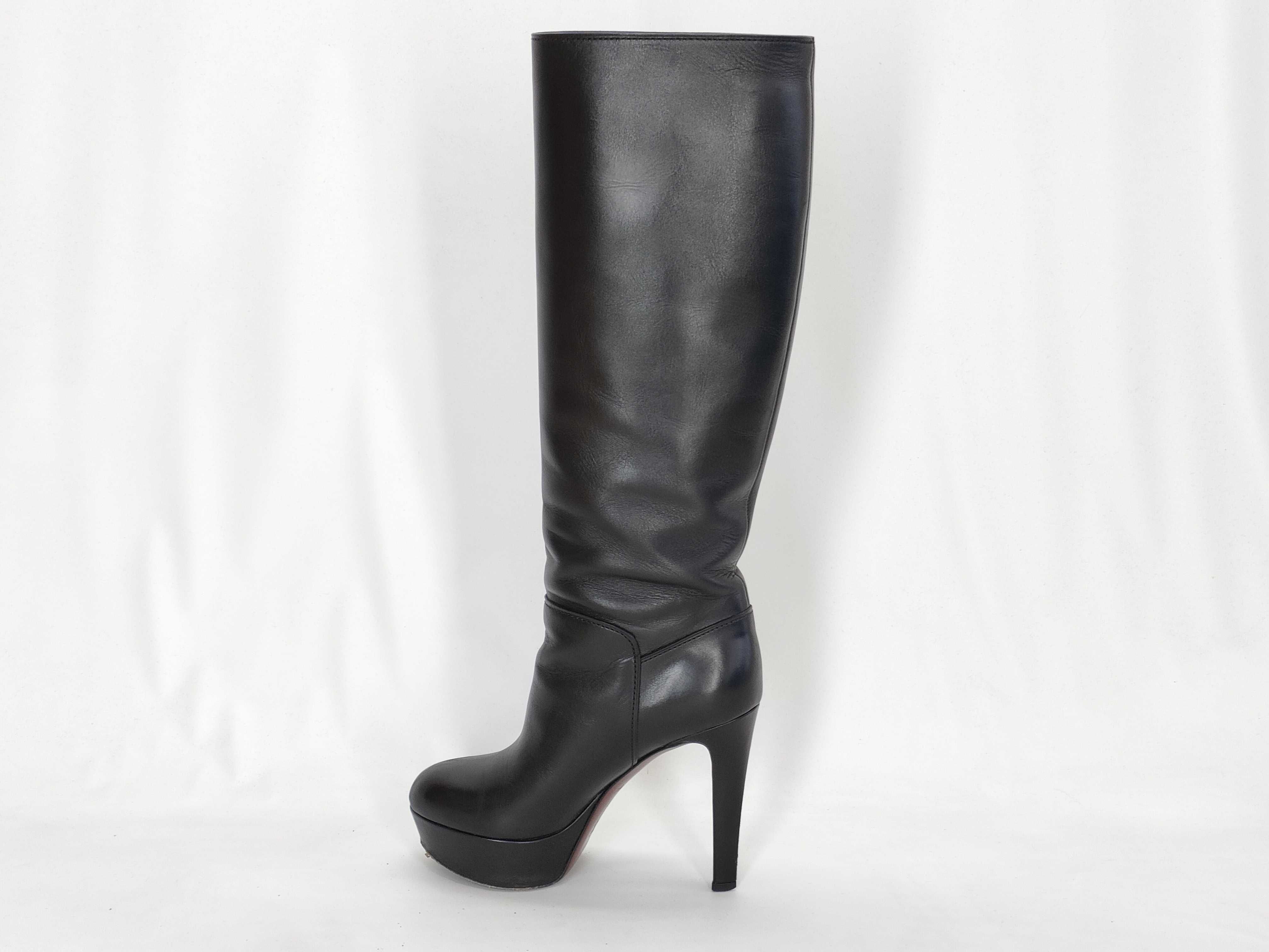 (11937_0342)LOUIS VUITTON ヴィトン レザー ヒール ロングブーツ ブラック その他靴