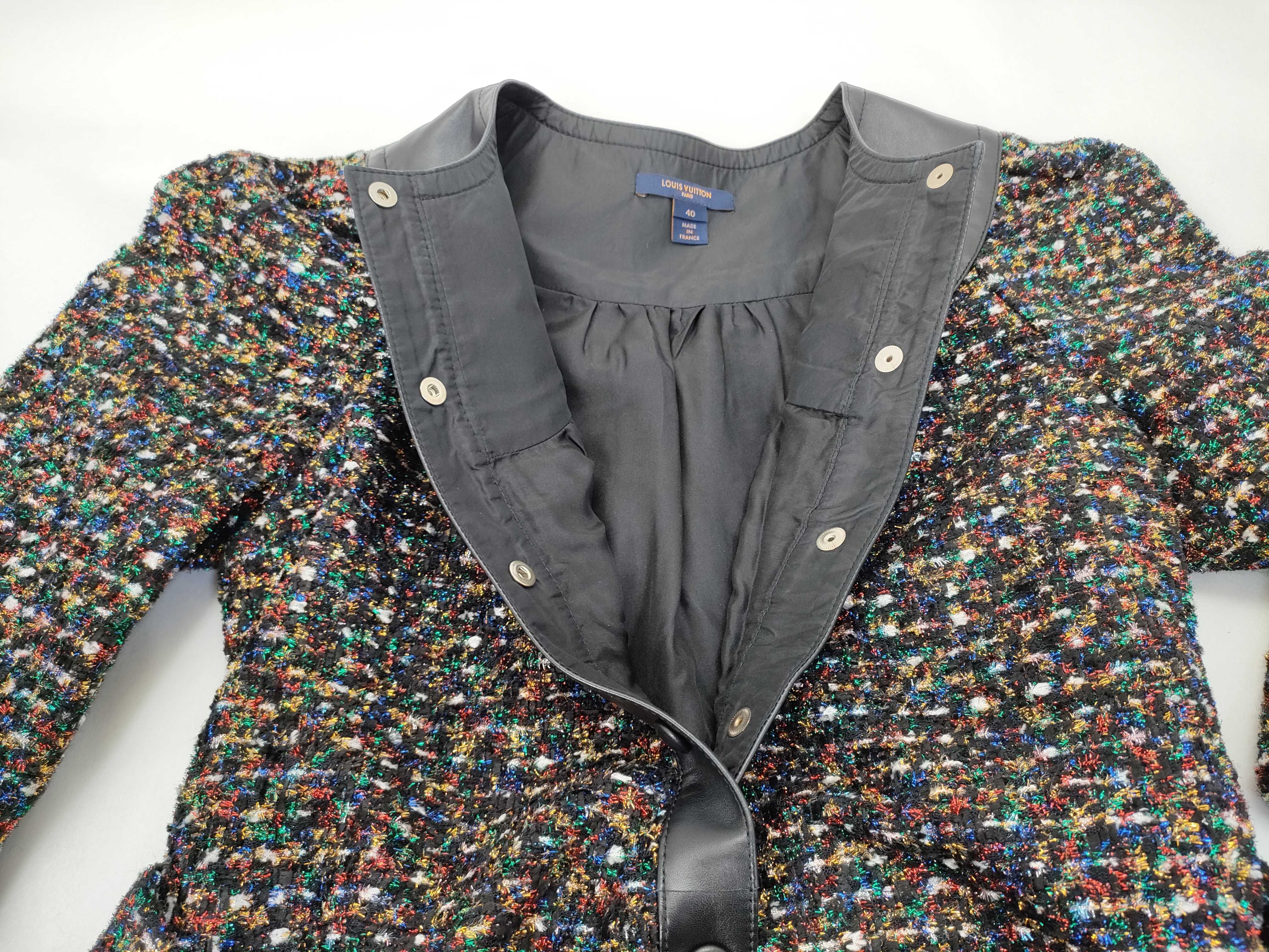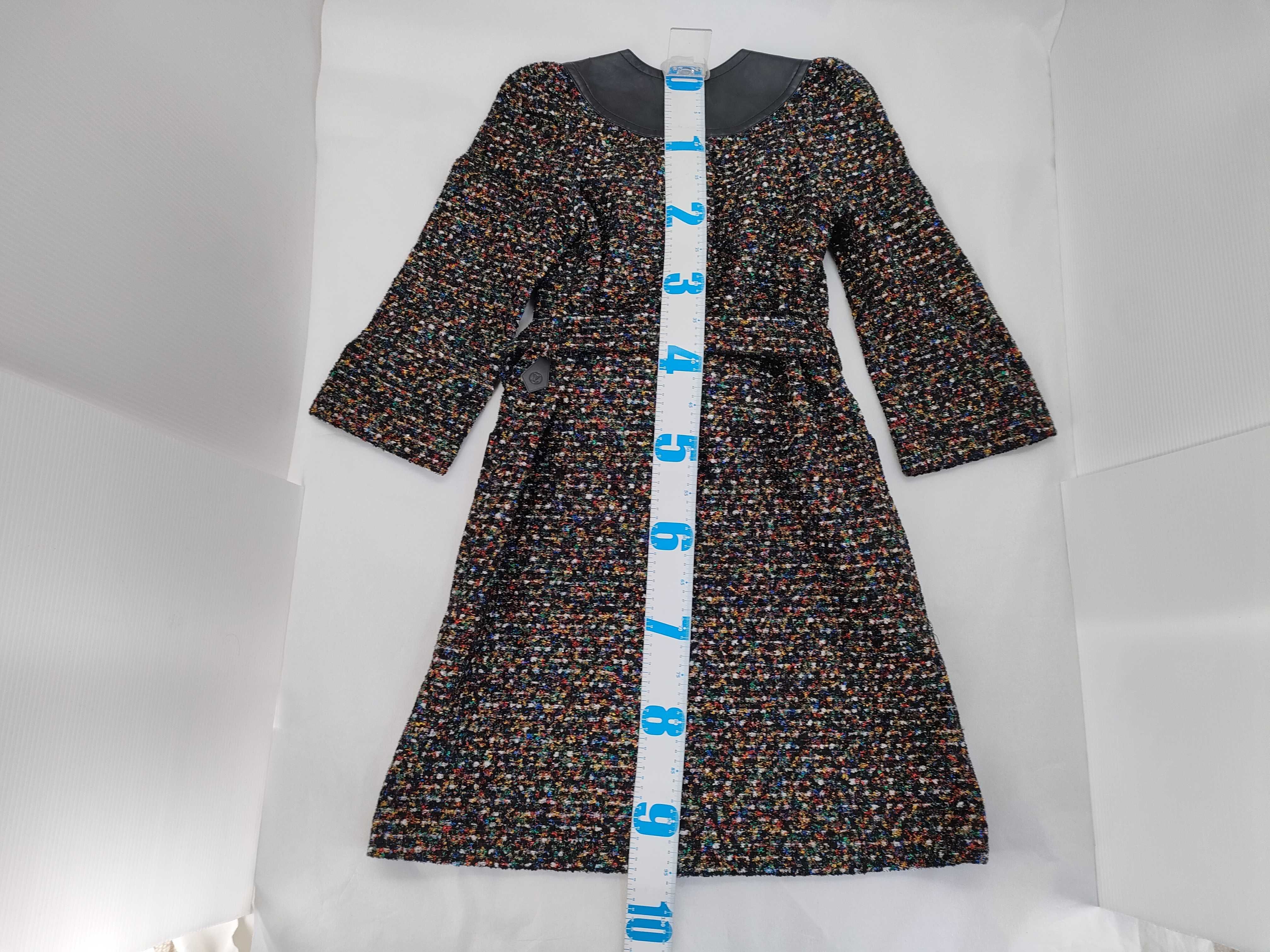 (11937_0348)LOUIS VUITTON ルイヴィトン ベルト付き レザー切替 ツイードドレス RW192B ROT FHRO54 #40 ワンピース