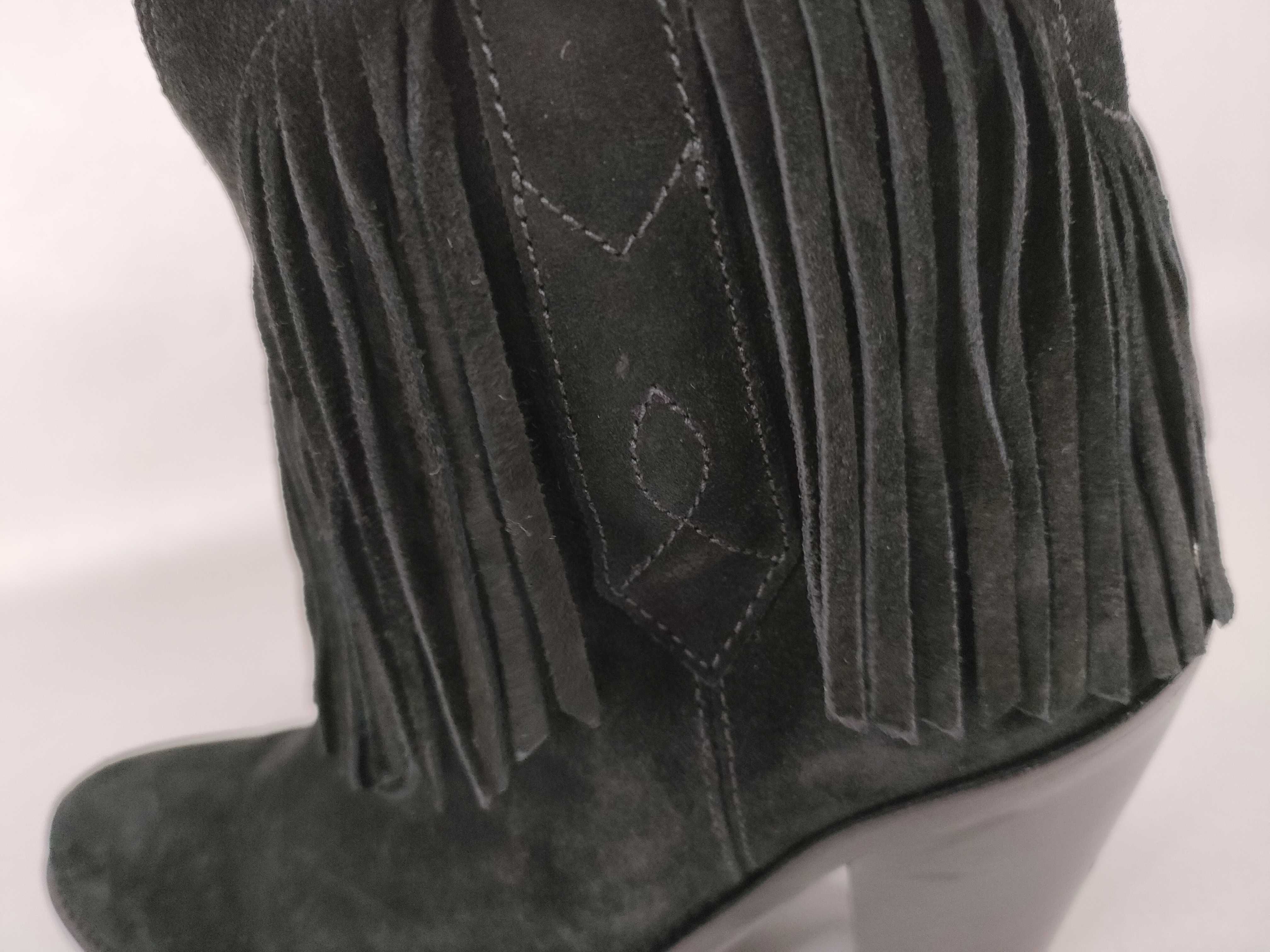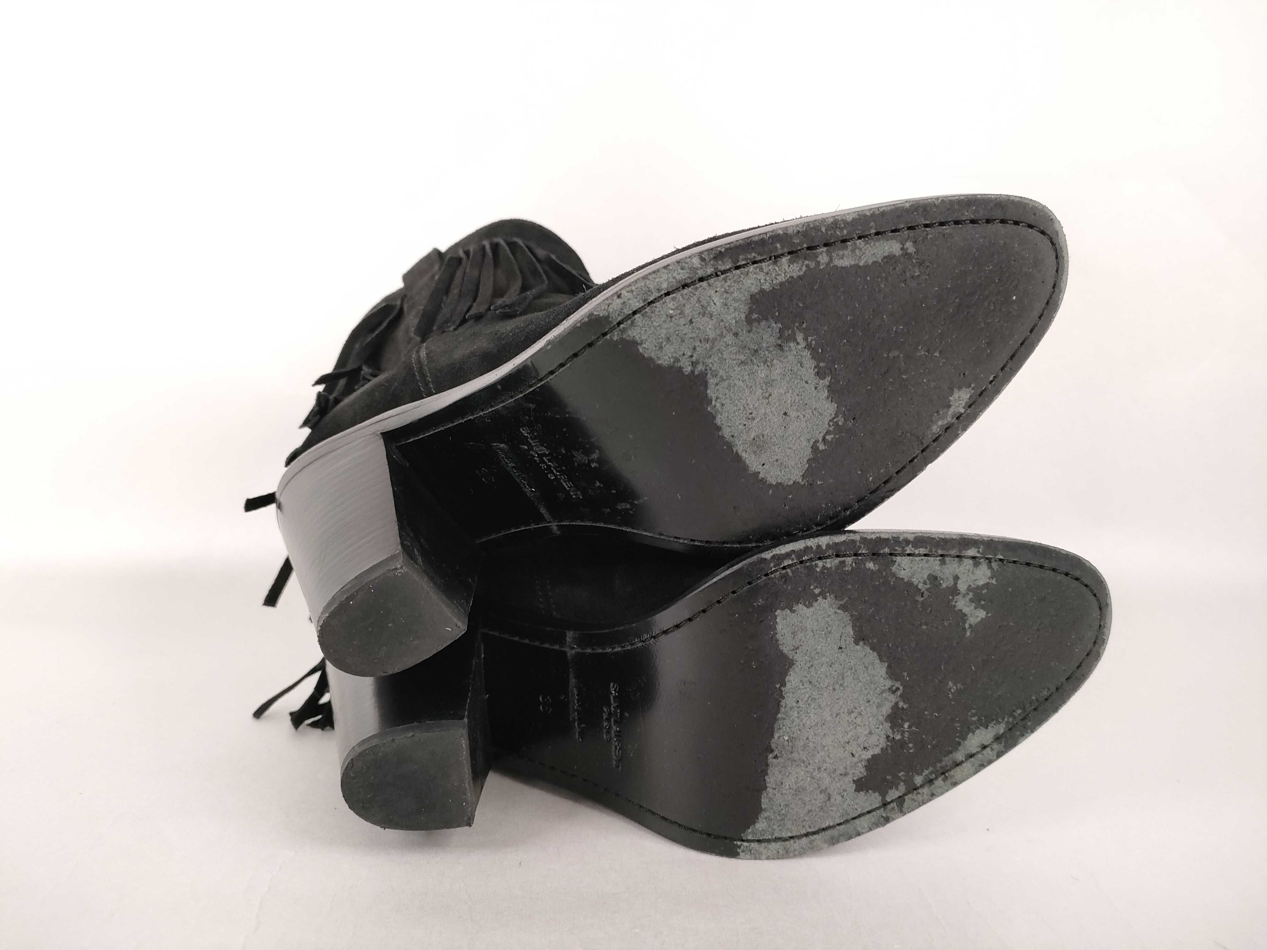 (11937_0489)SAINT LAURENT サンローラン フリンジ スエード ブーツ 441480 ブラック その他靴