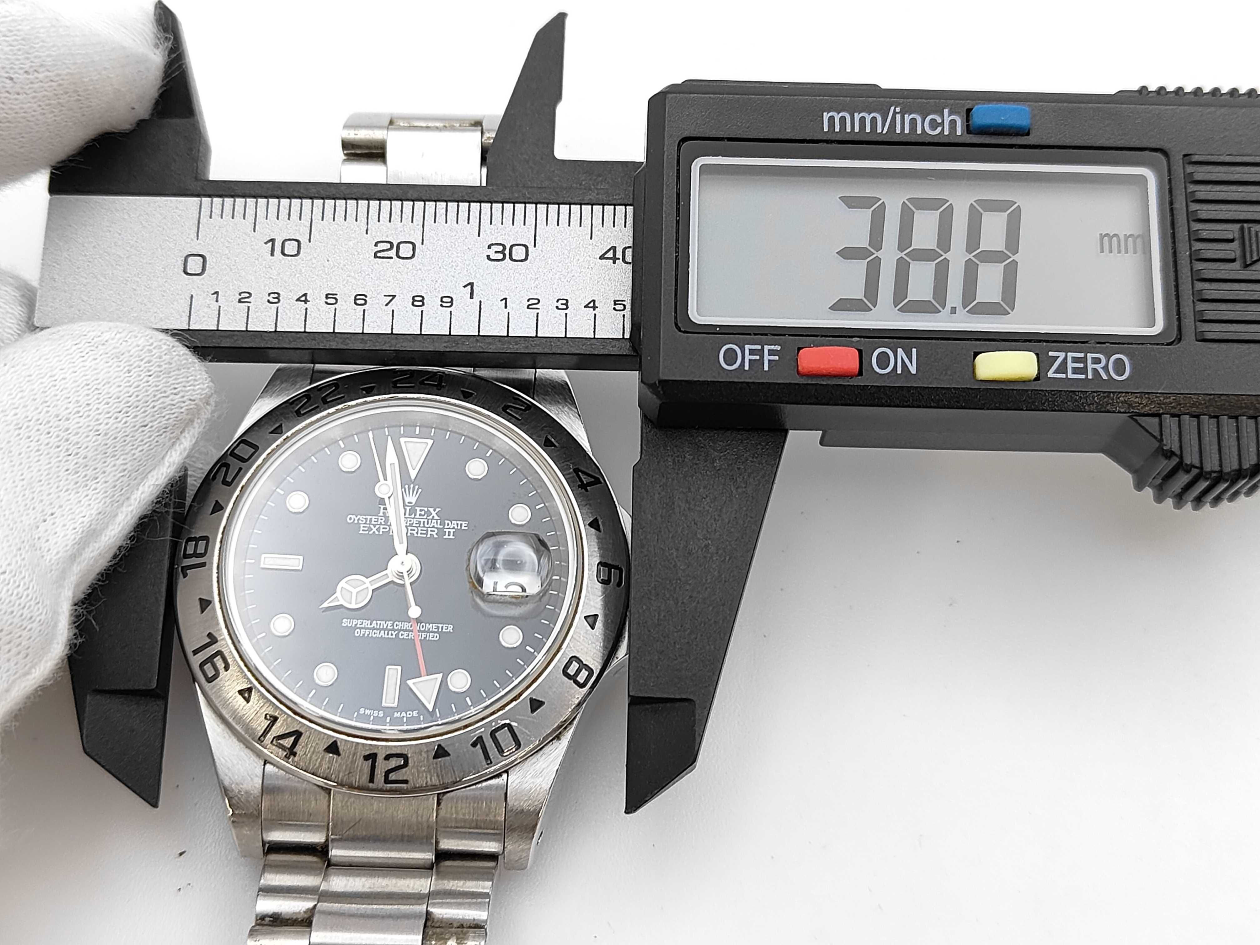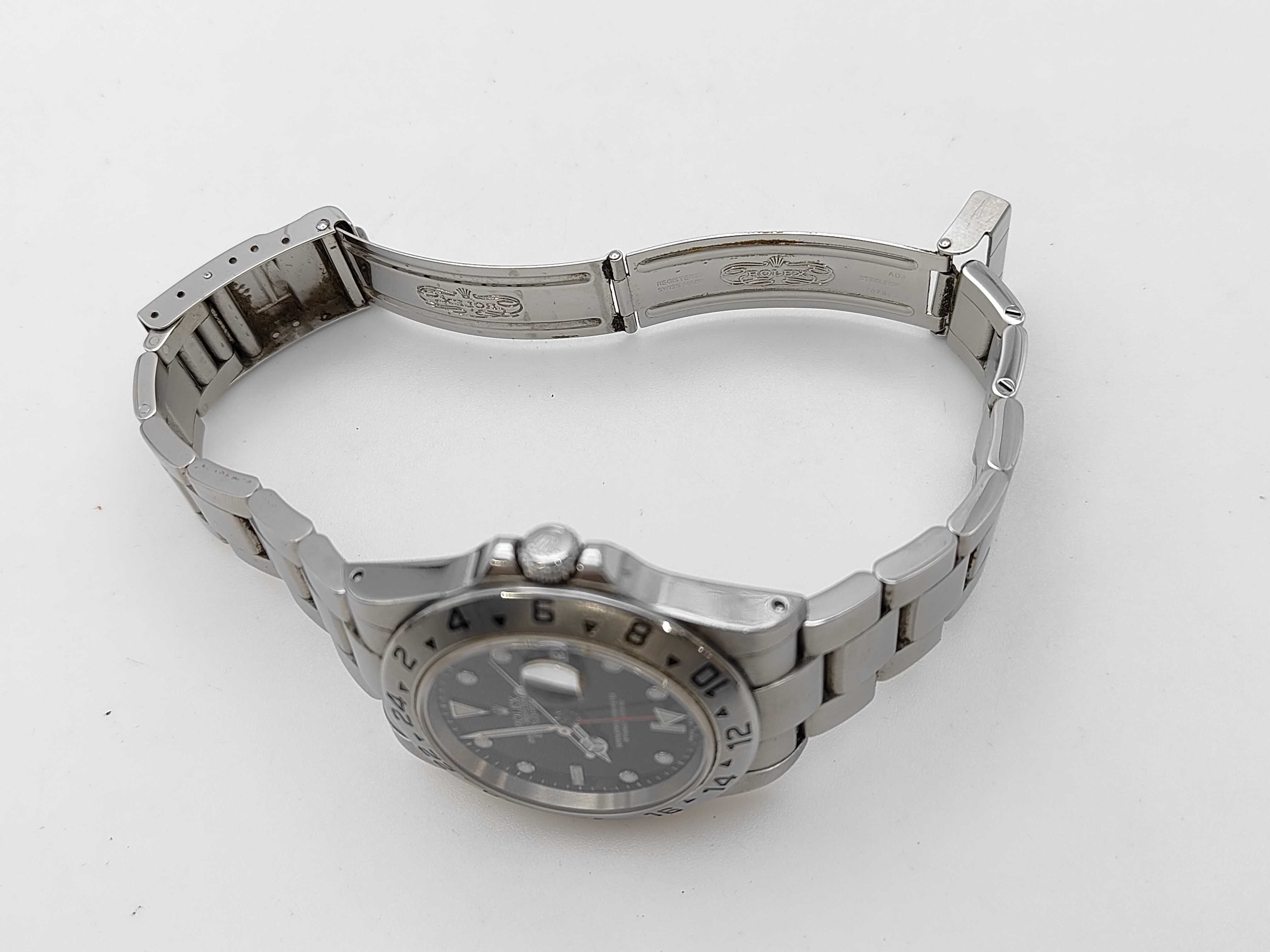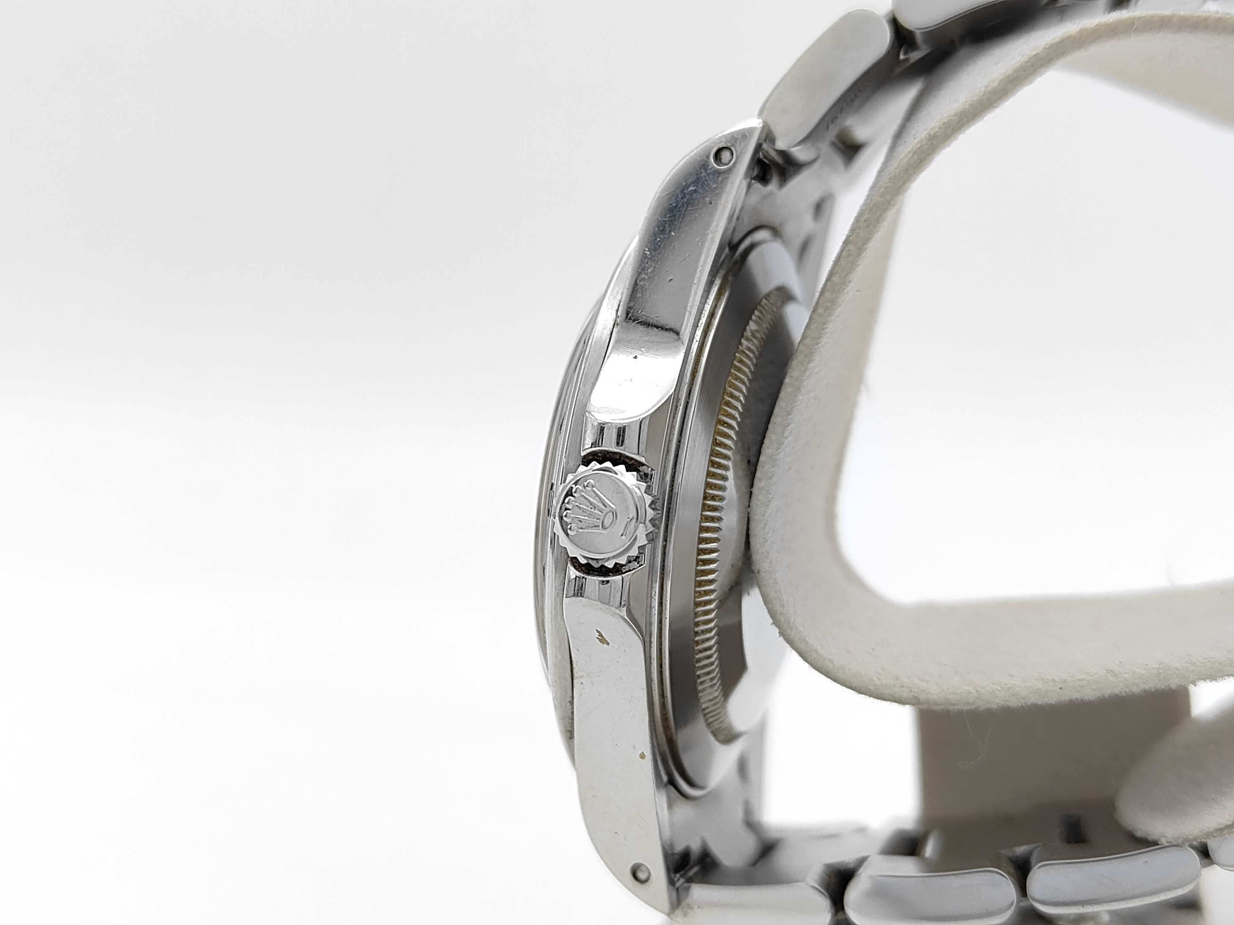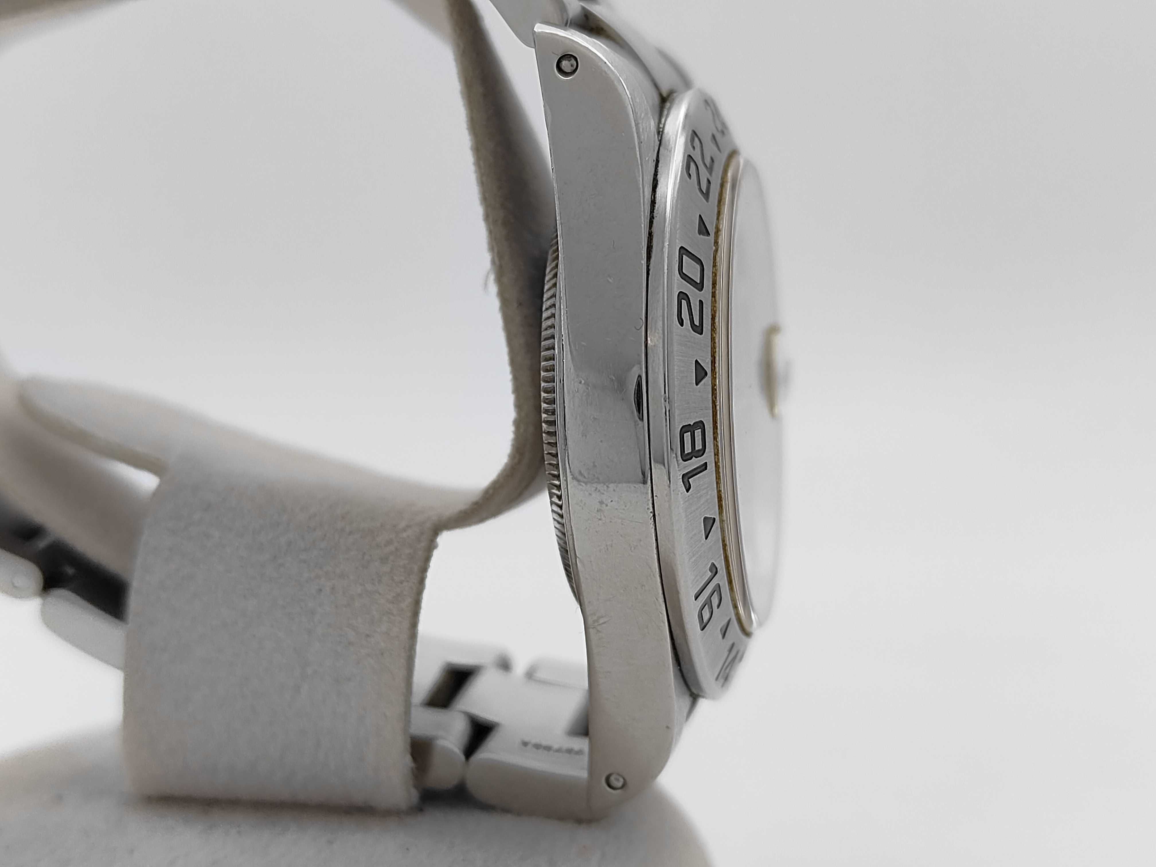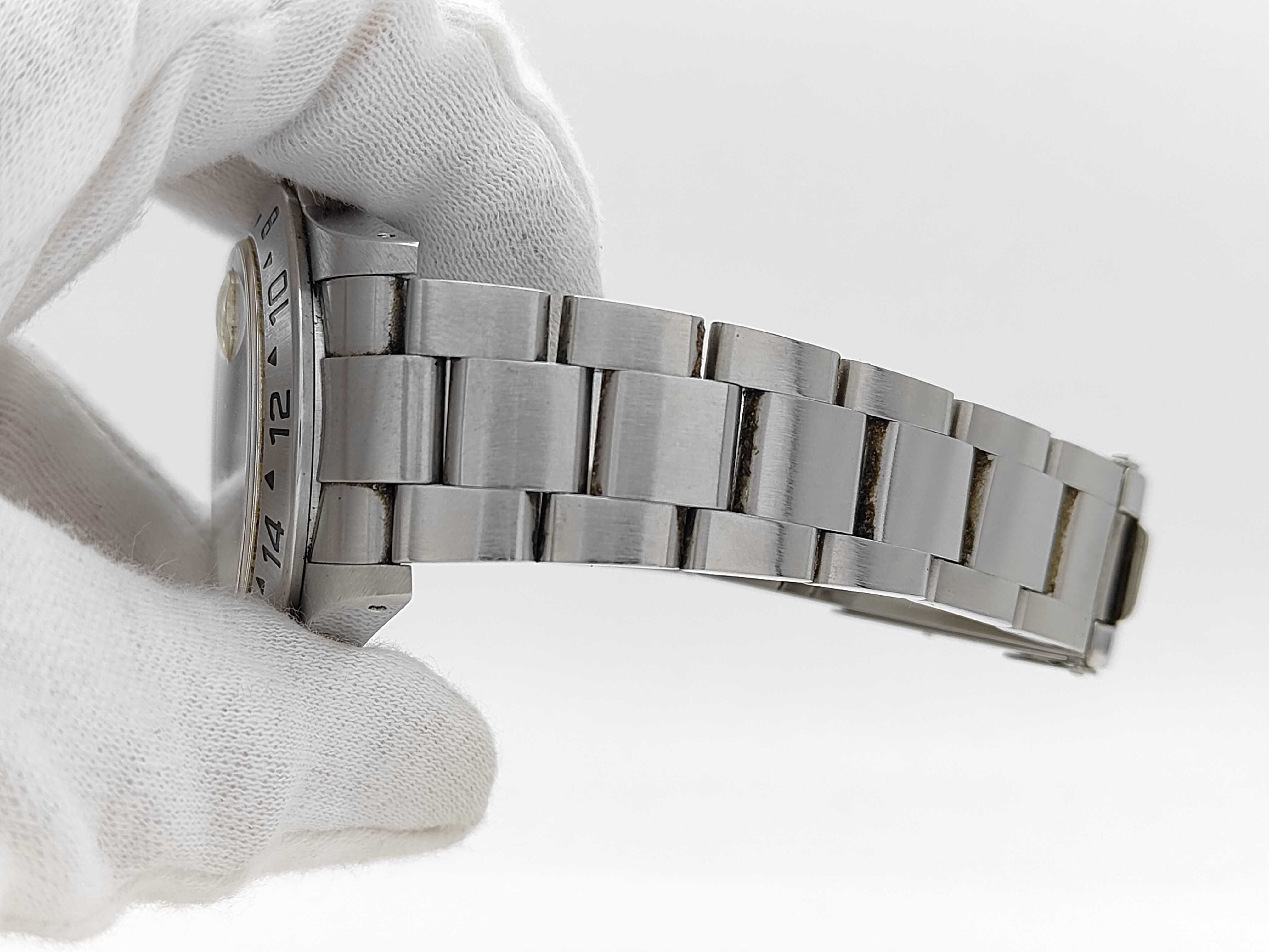 全体傷あり ムーブ異音あり ガラス傷小 針シミ小 文字盤小傷あり ベゼル・ケース打痕傷小 クラスプ緩い 巻き上げ異音あり デイトチェンジ11:57頃 コマ1 並行ギャラあり2003.09.17【付属品