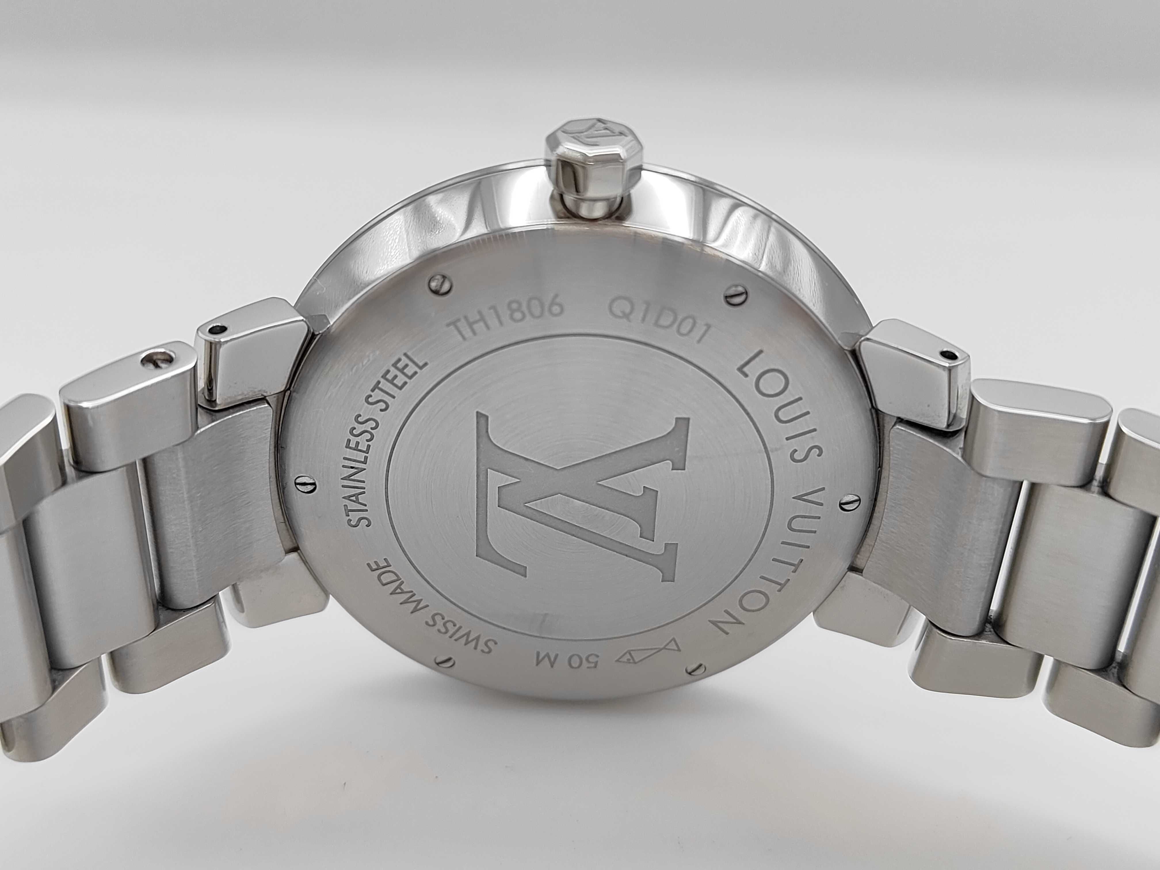 (11940_0403)LOUIS VUITTON タンブール Q1D01 TH1806 クオーツ シルバー文字盤 メンズ腕時計