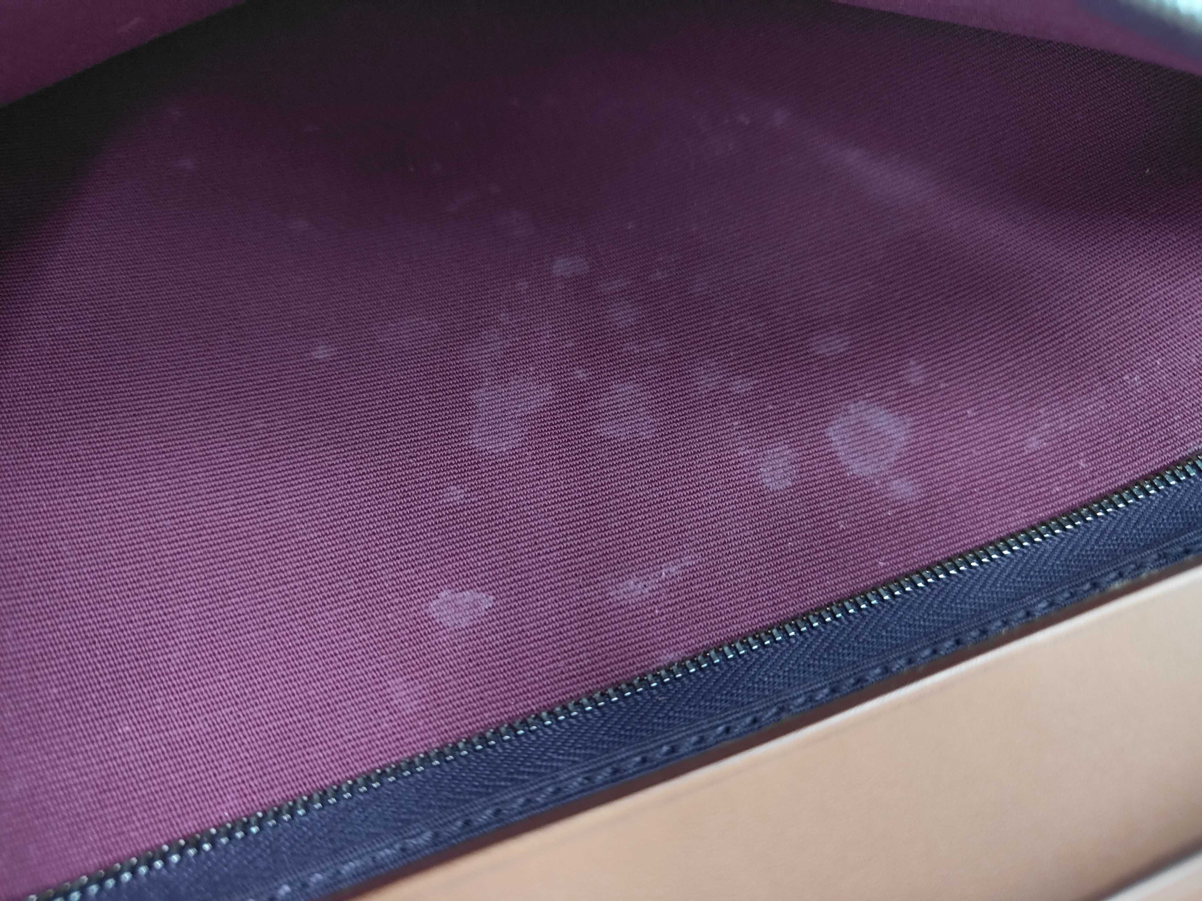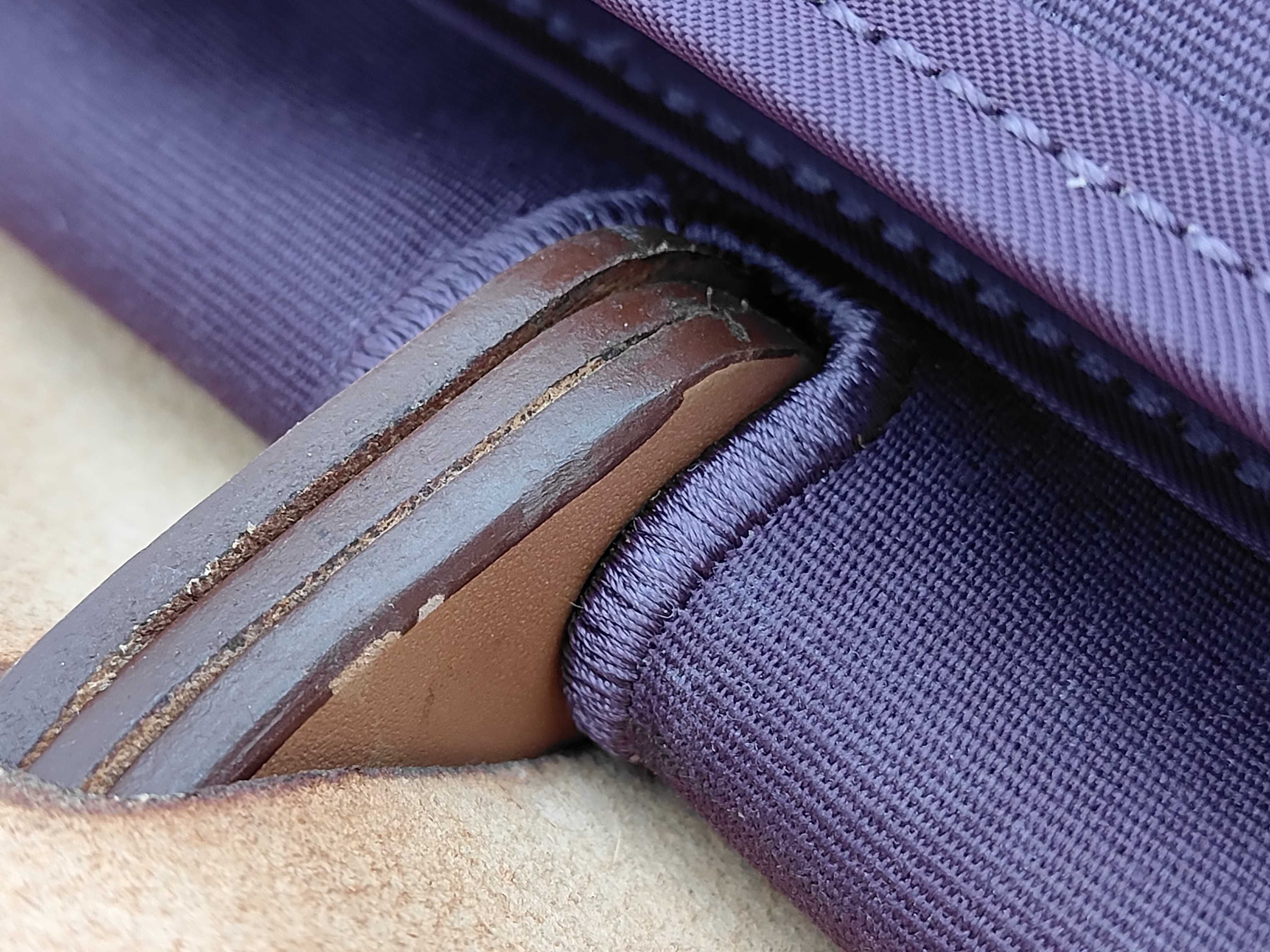 全体擦れ色褪せ(中) レザー擦れ傷汚れ(小) 外ポケットシミ汚れ(中) ポーチ擦れ汚れ(中) 内側擦れシミ汚れ(中) 【刻印