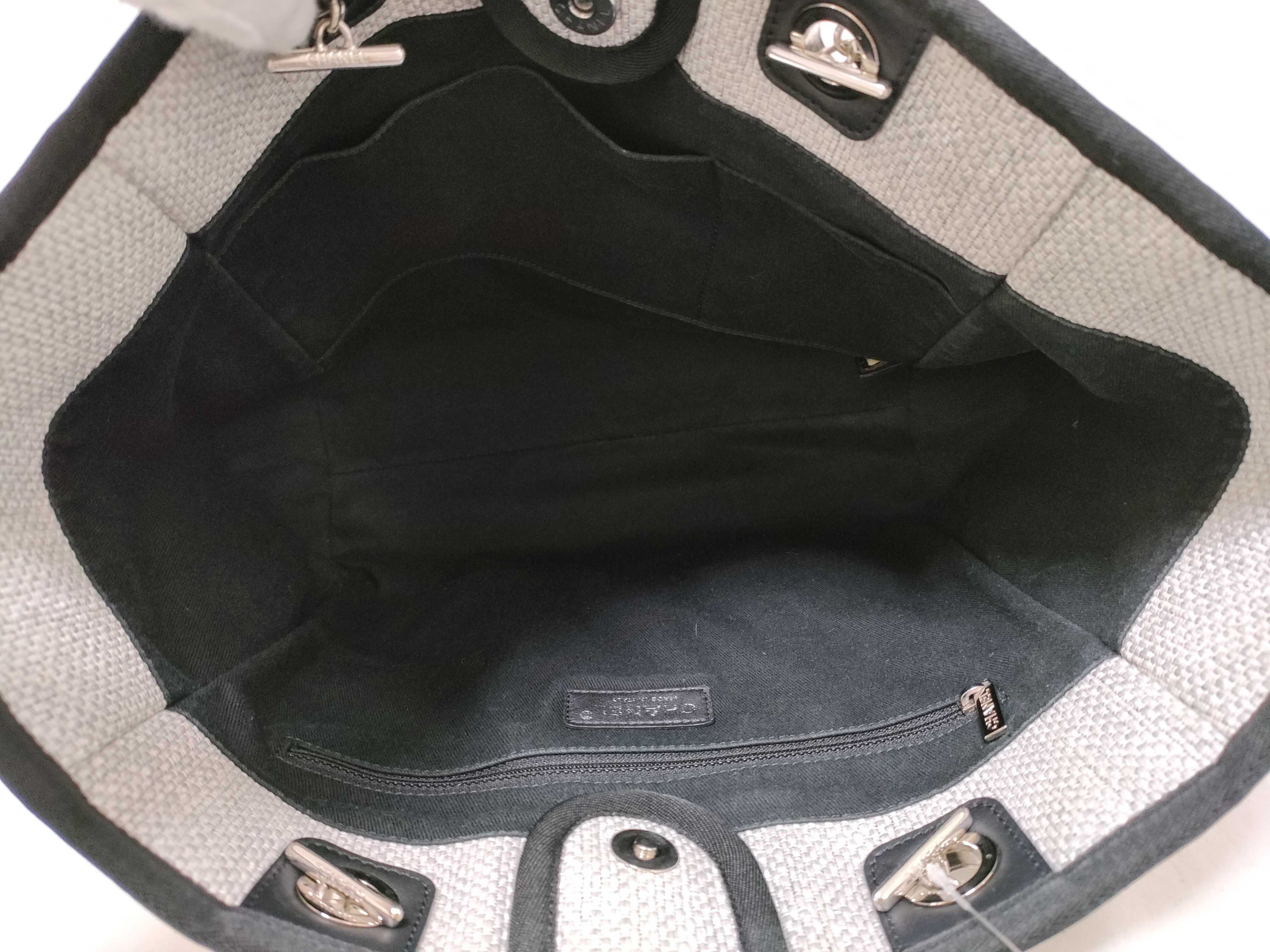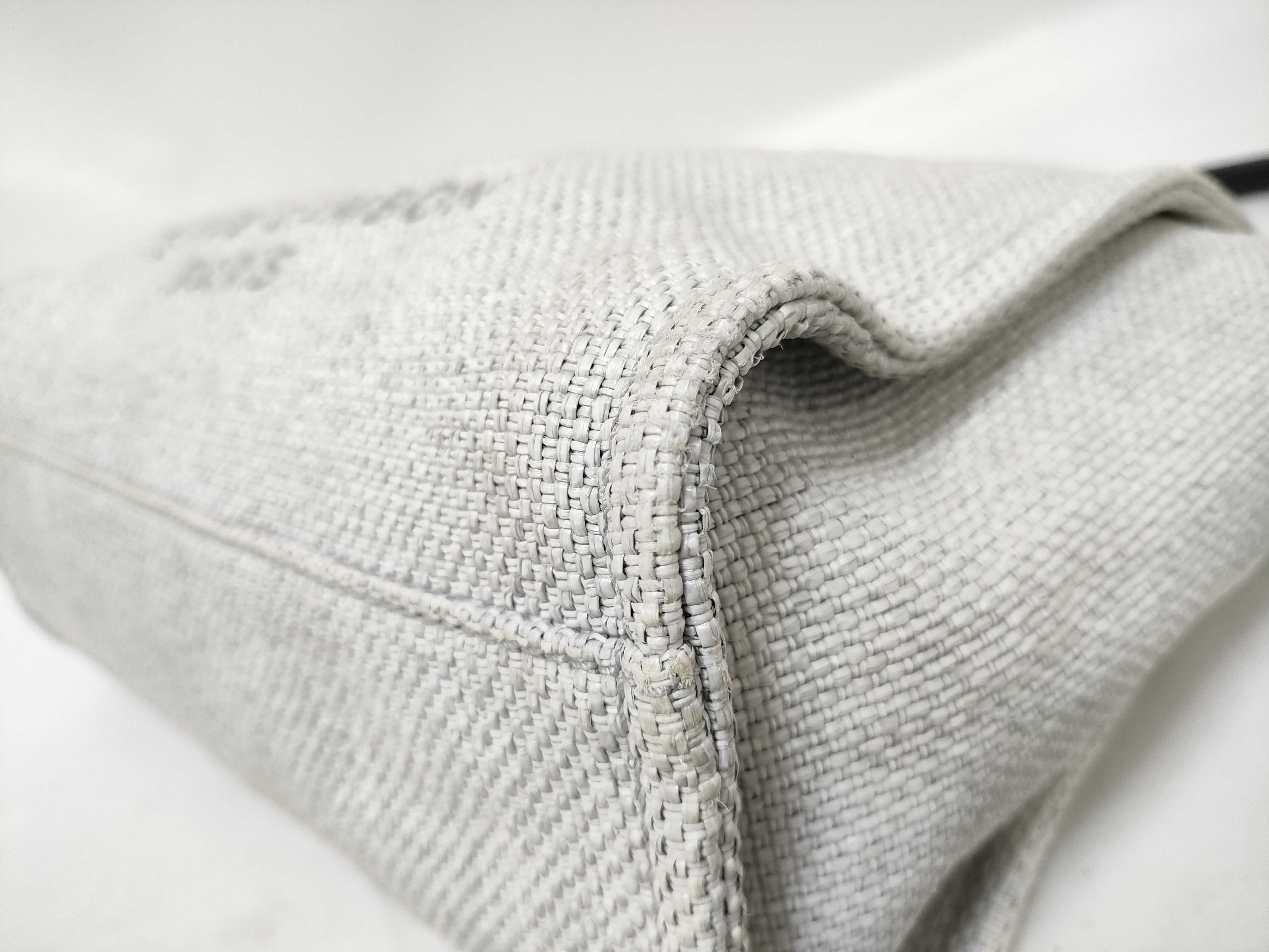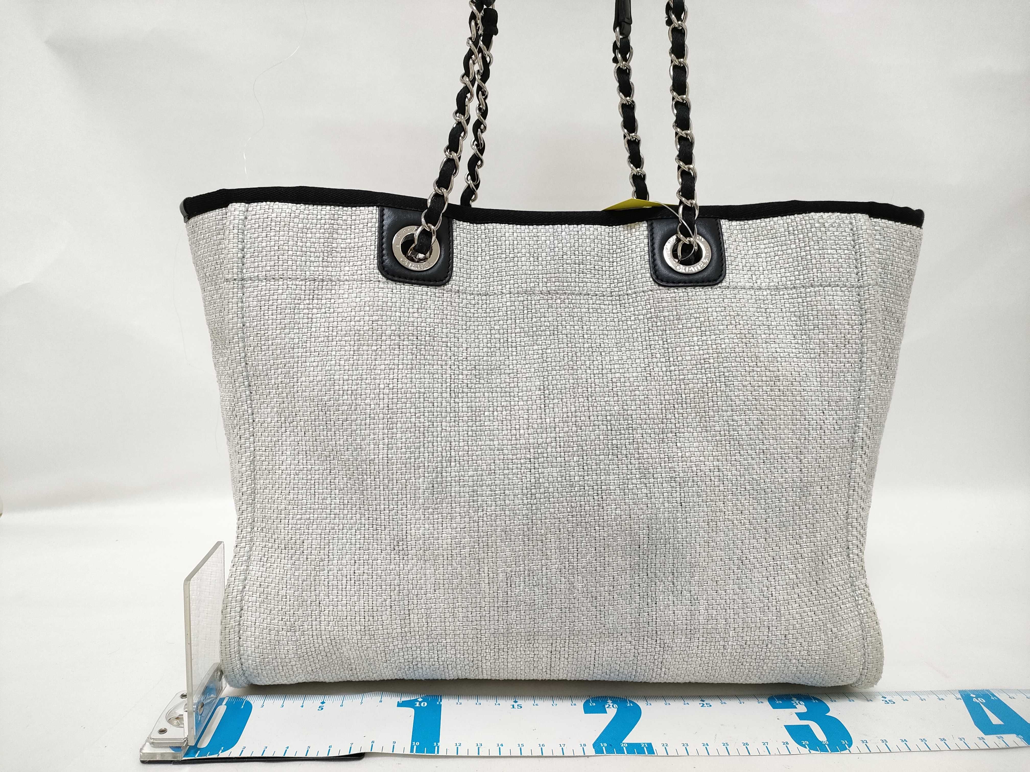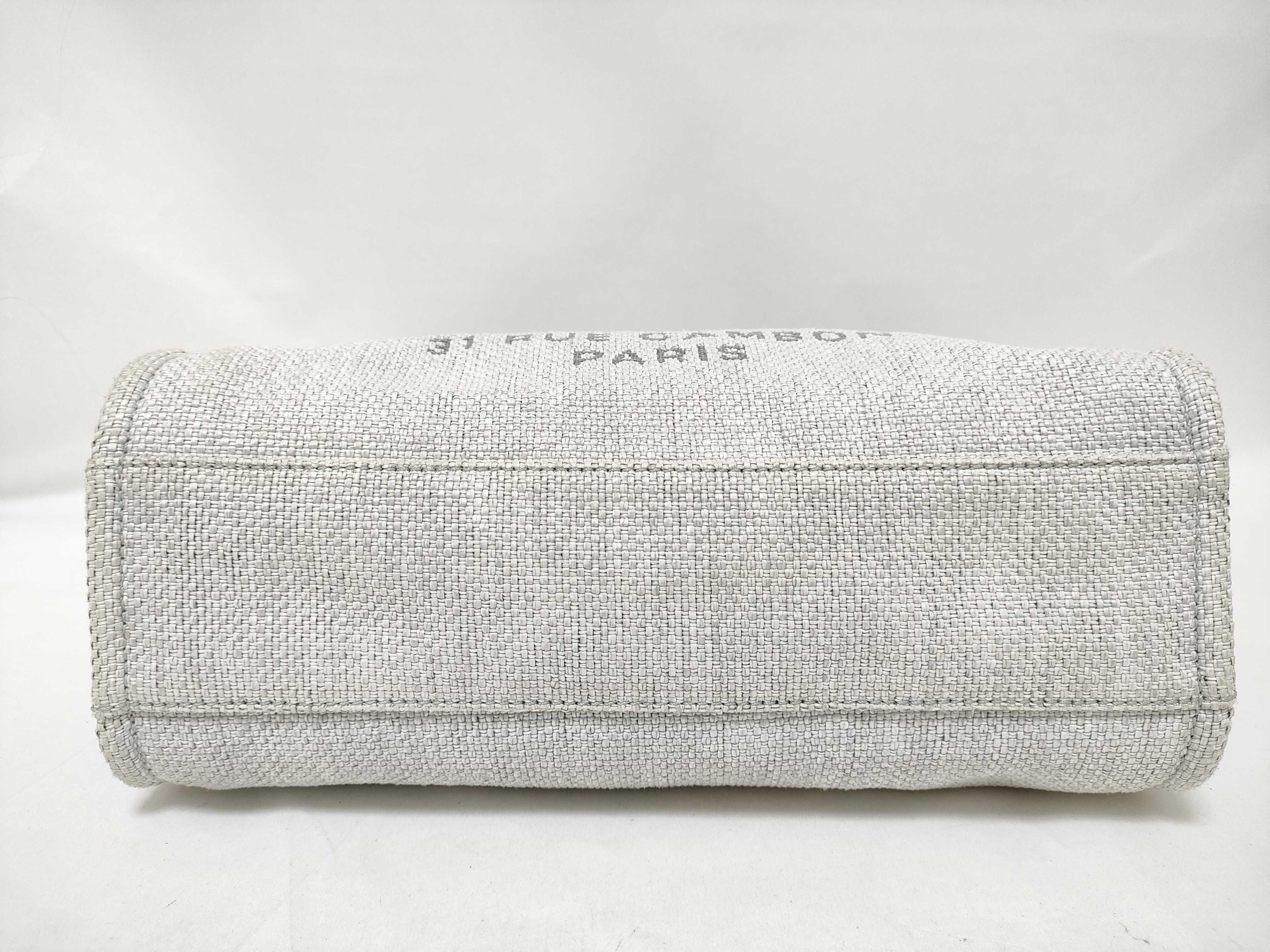 (11932_0179)CHANEL ドーヴィルMM ラフィア グレー トートバッグ
