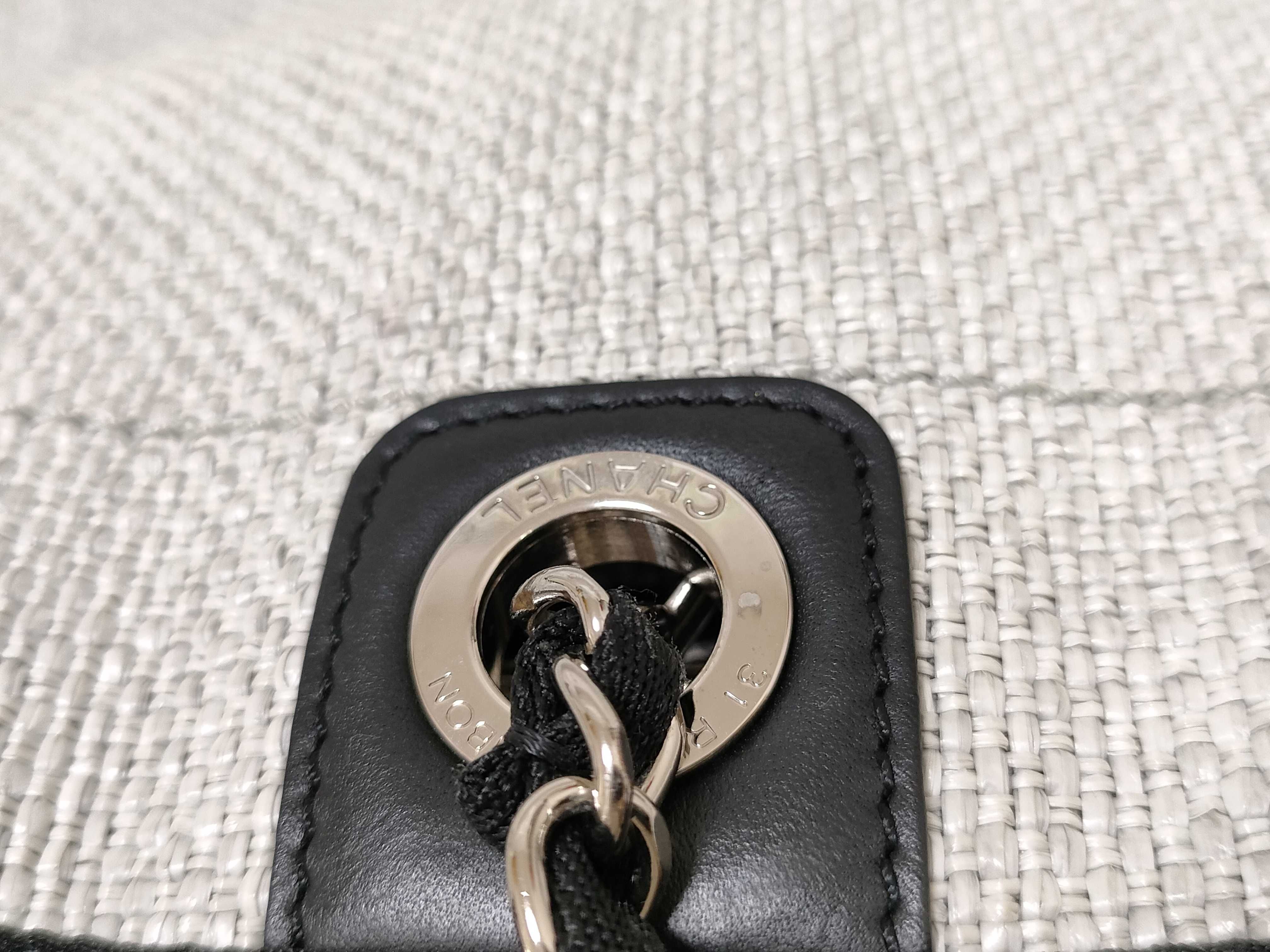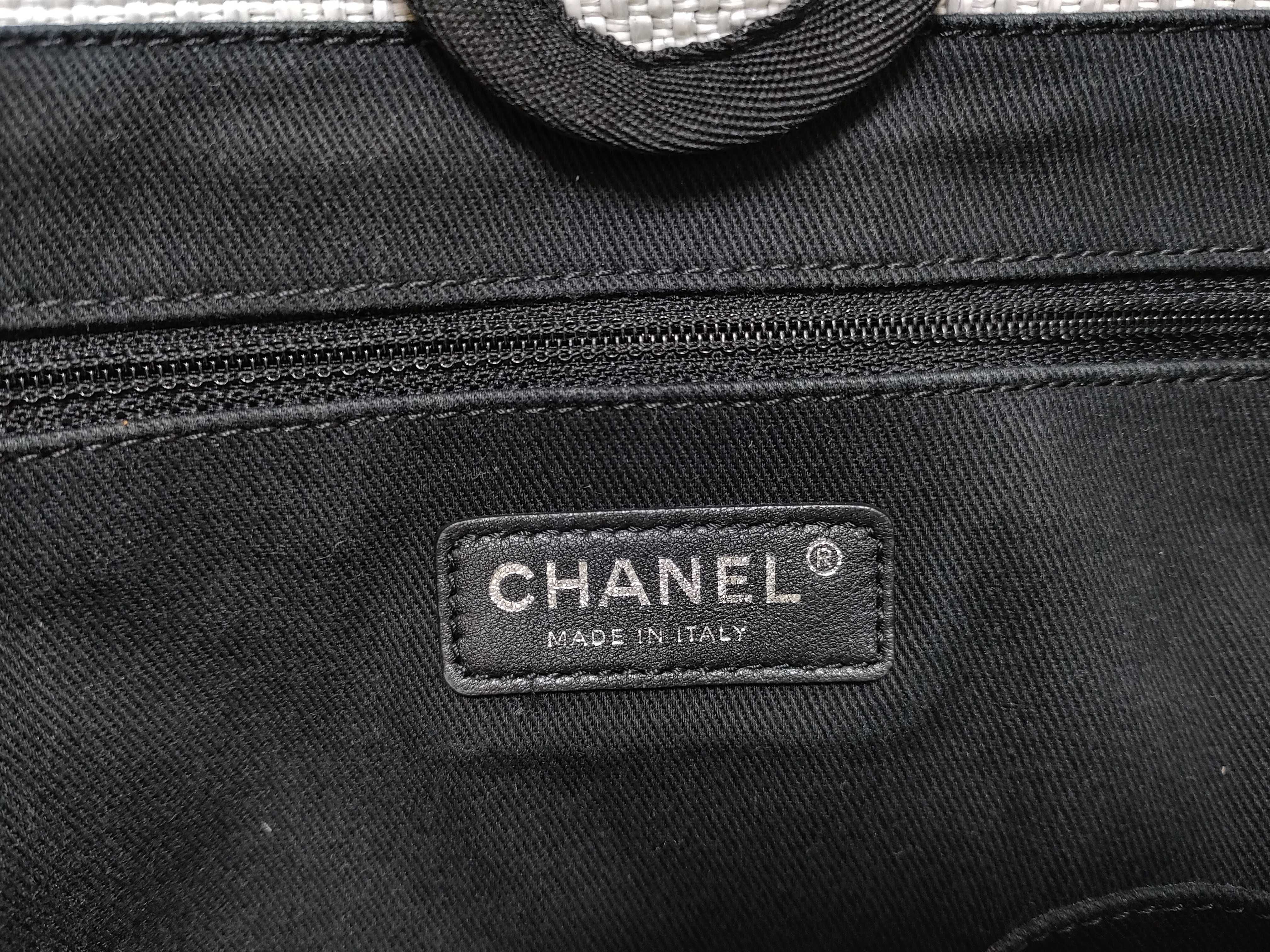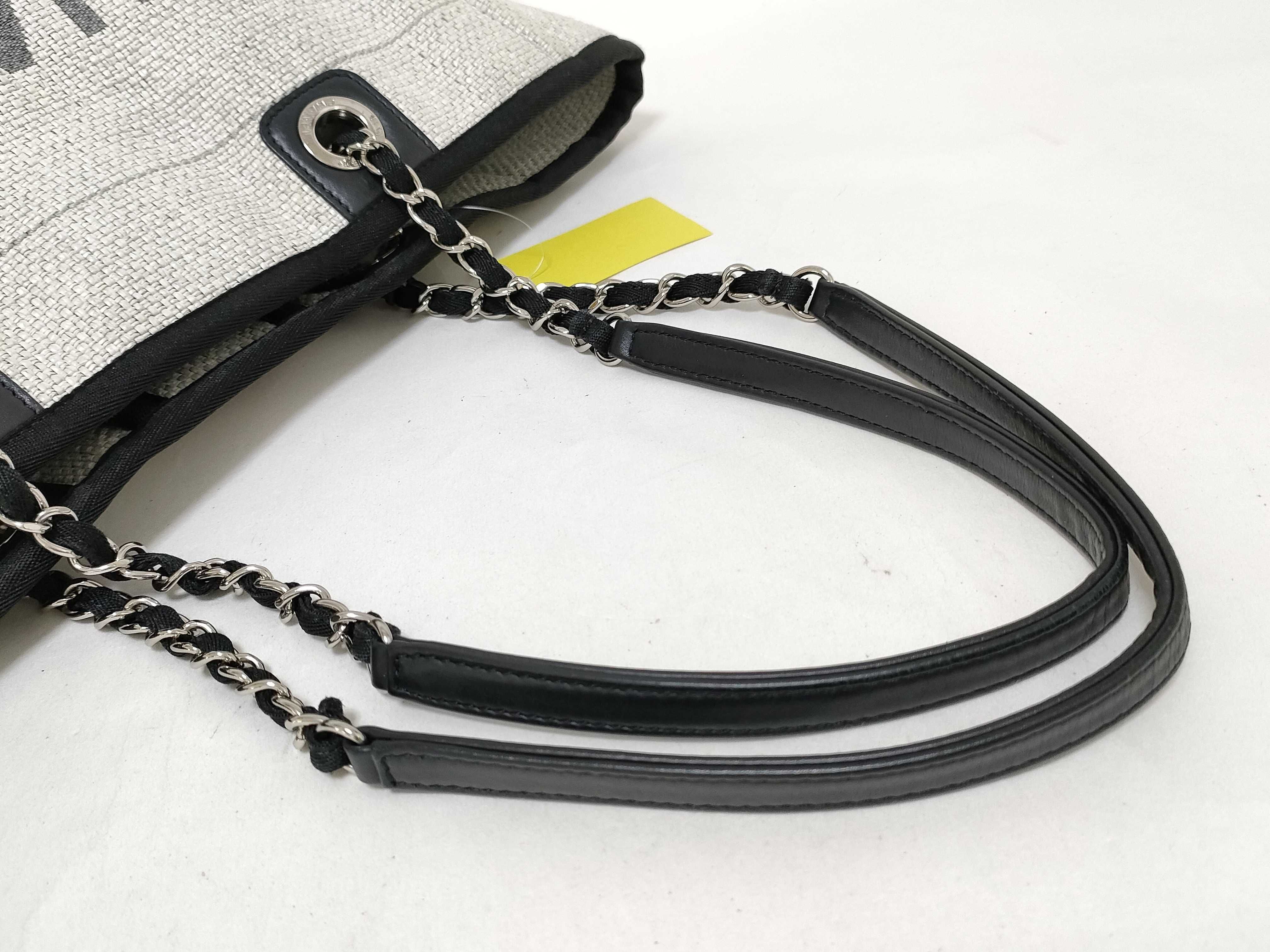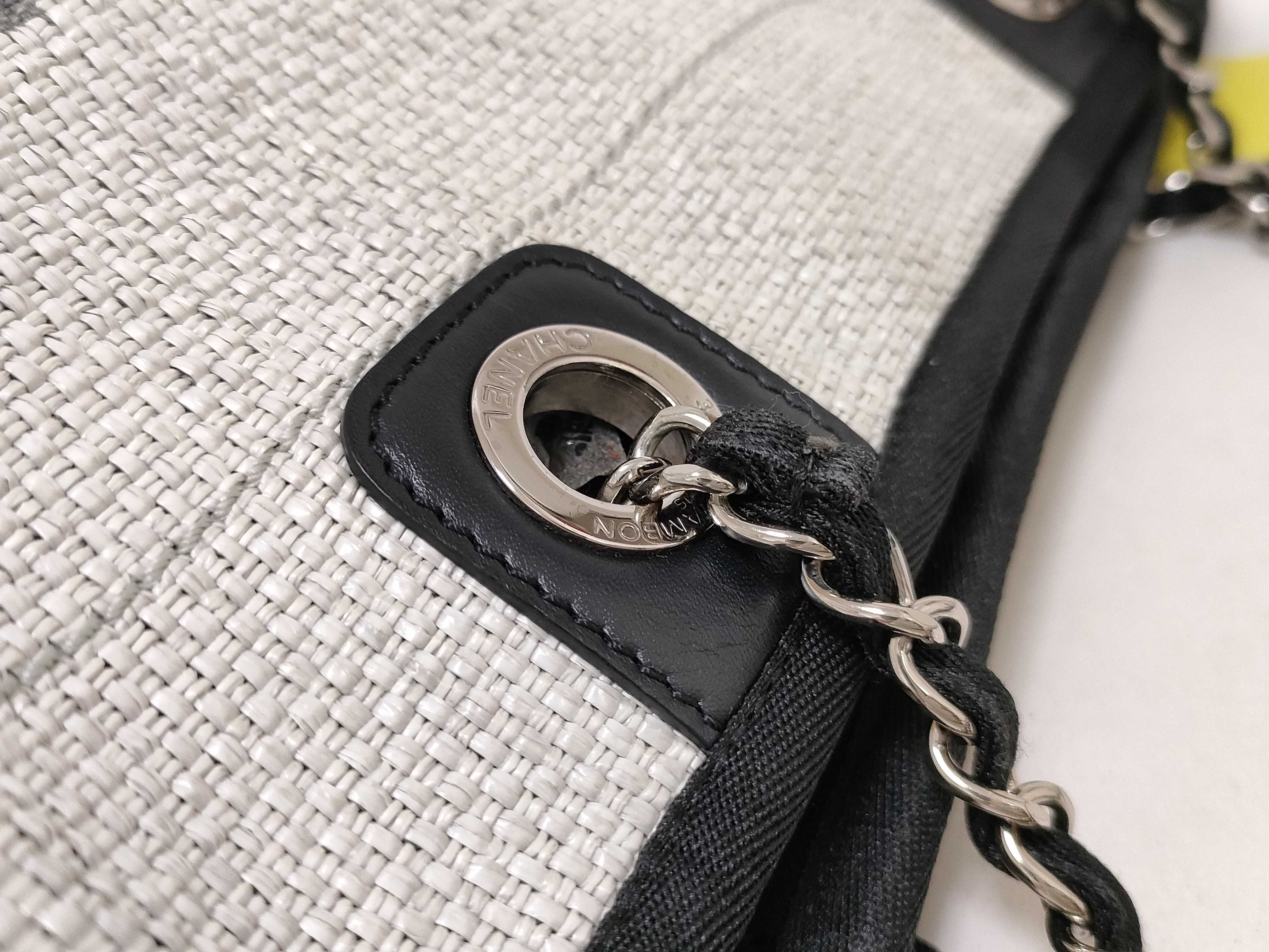 (11932_0179)CHANEL ドーヴィルMM ラフィア グレー トートバッグ