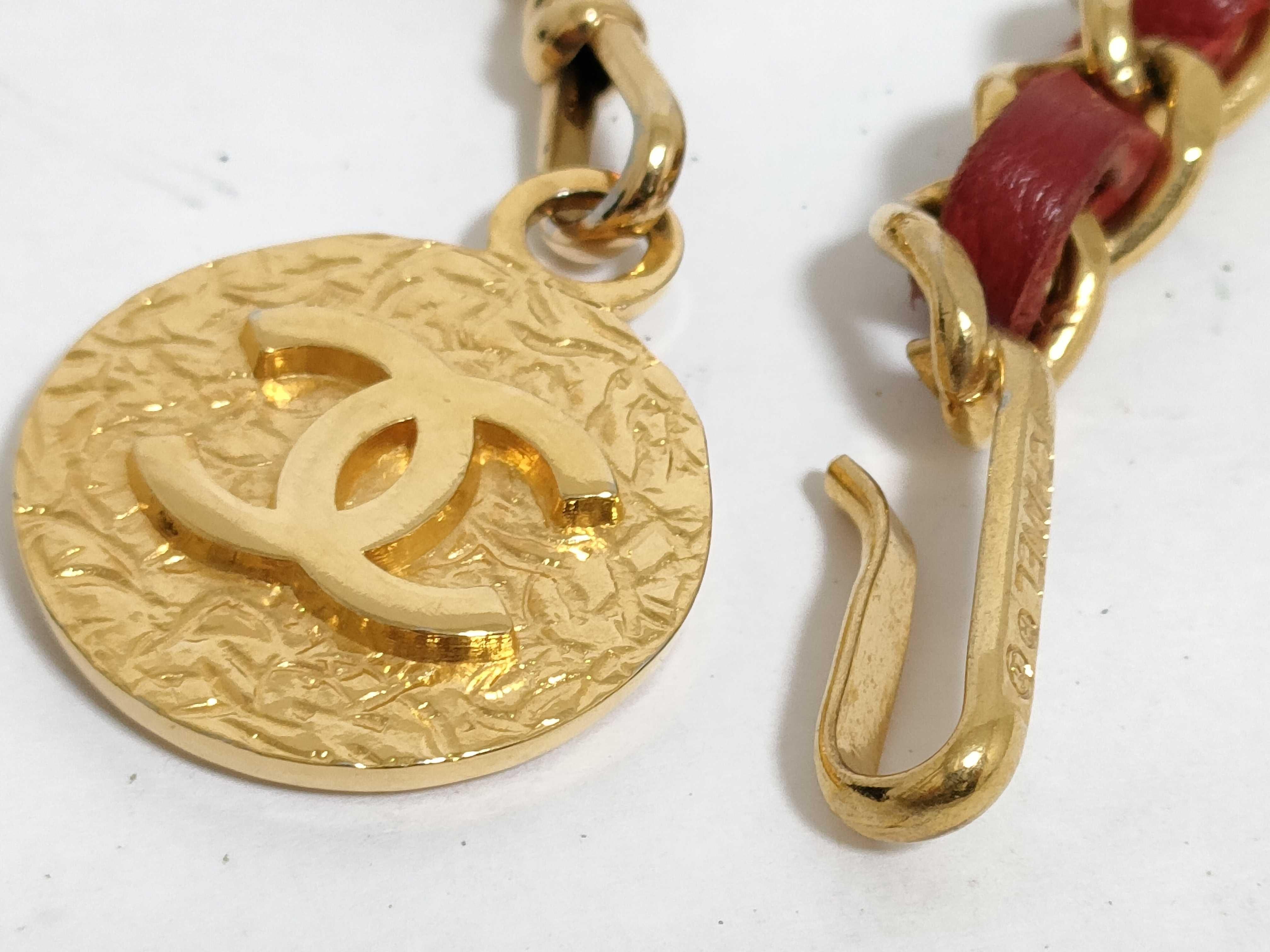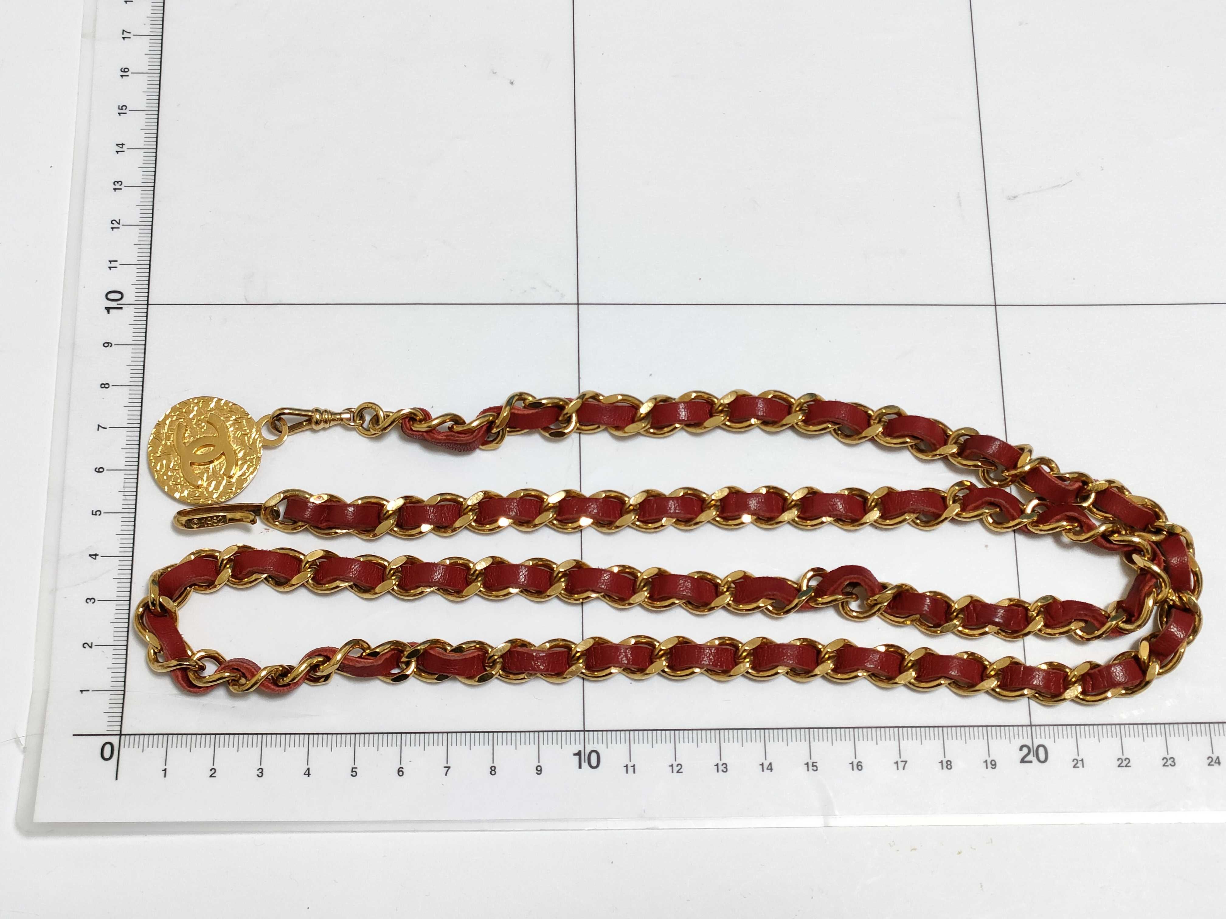 (11932_0194)CHANEL チェーンベルト/レッド 熊井 ベルト