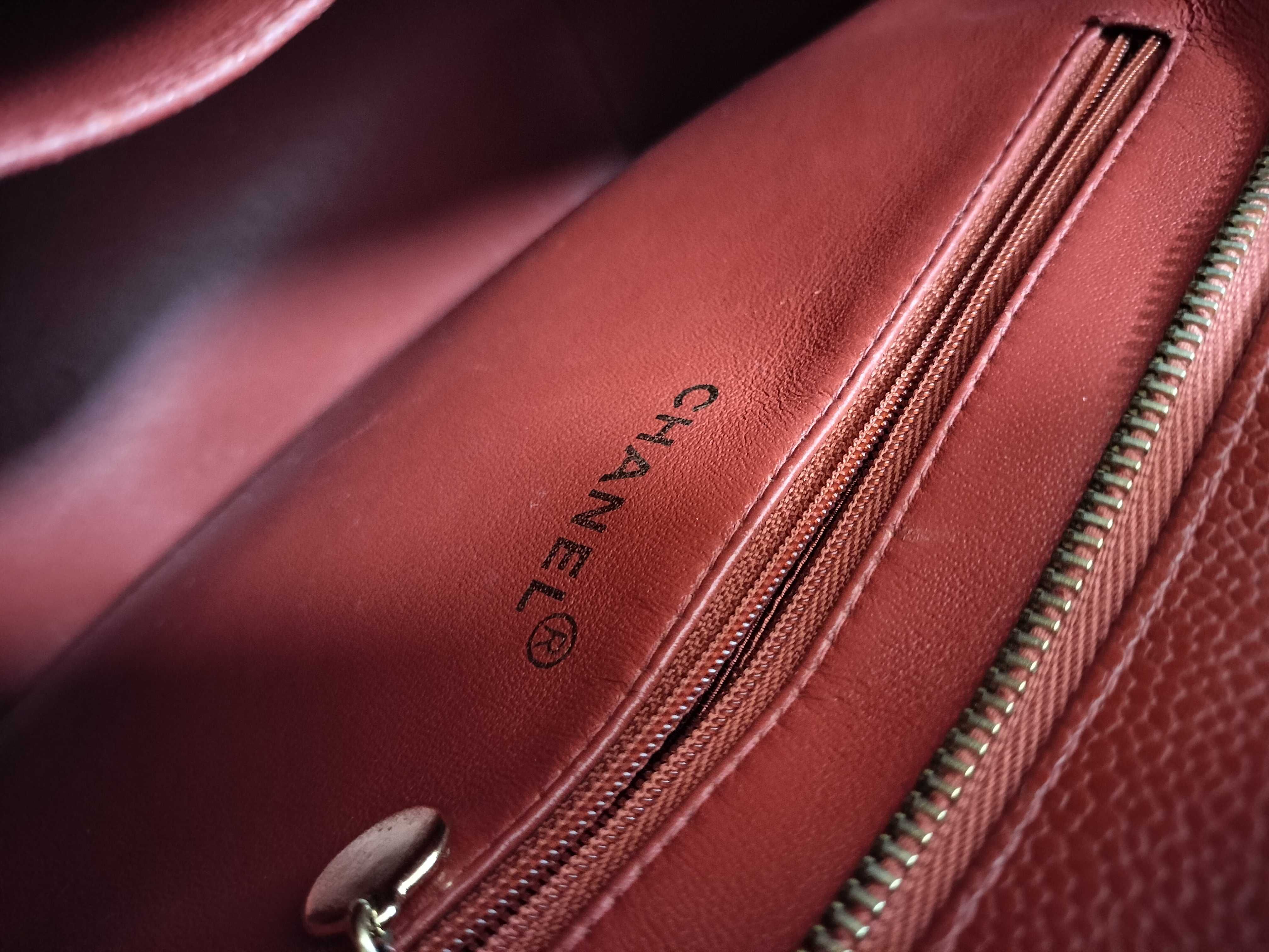 (11932_0205)CHANEL キャビアスキン 復刻トート レッド トートバッグ
