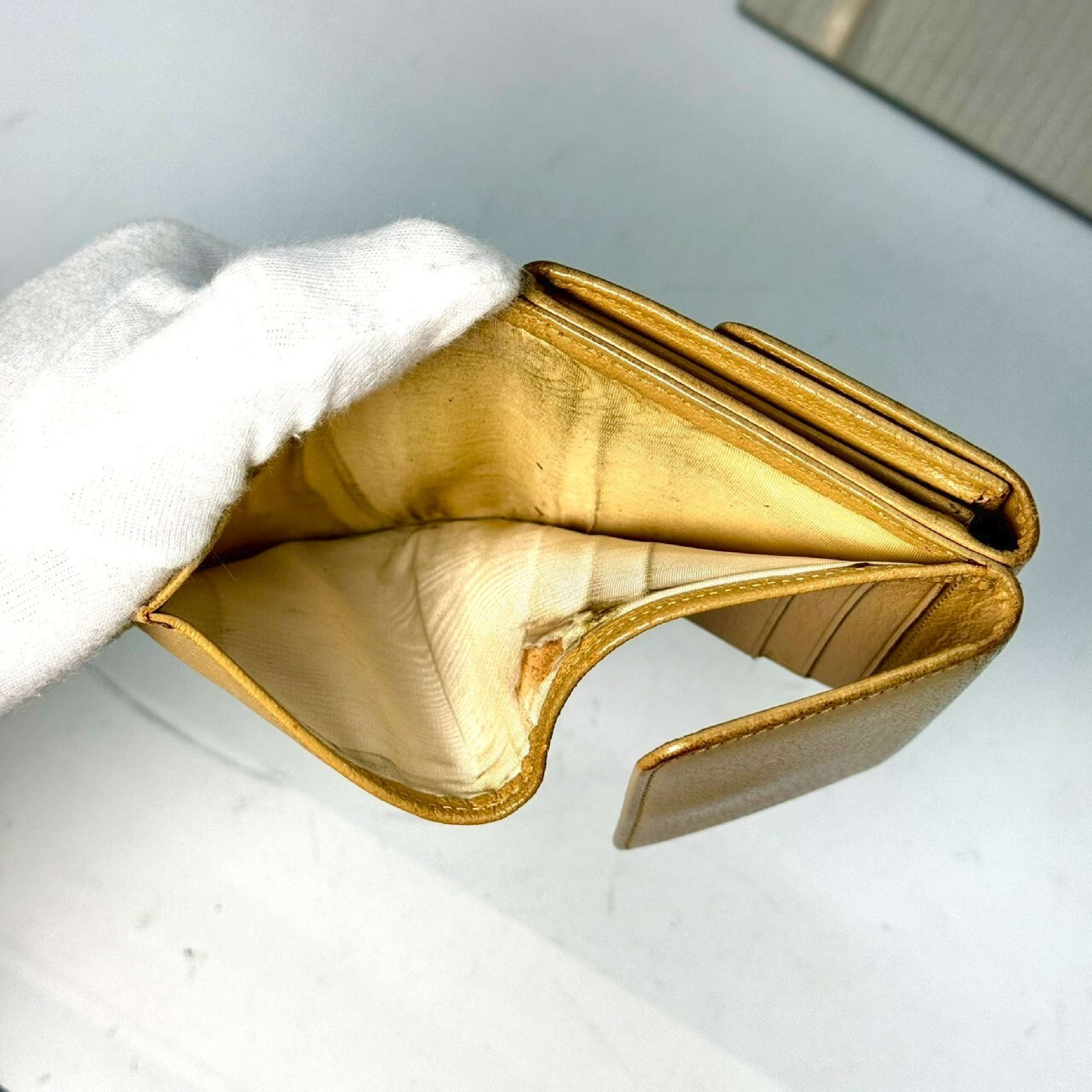 やけ擦れ(中) 黒ずみ汚れ(中) 角・縁擦れ剥げ(中) ホック緩み(大) 小銭入れペン跡(小) 札入れ破れ(大) 【シール
